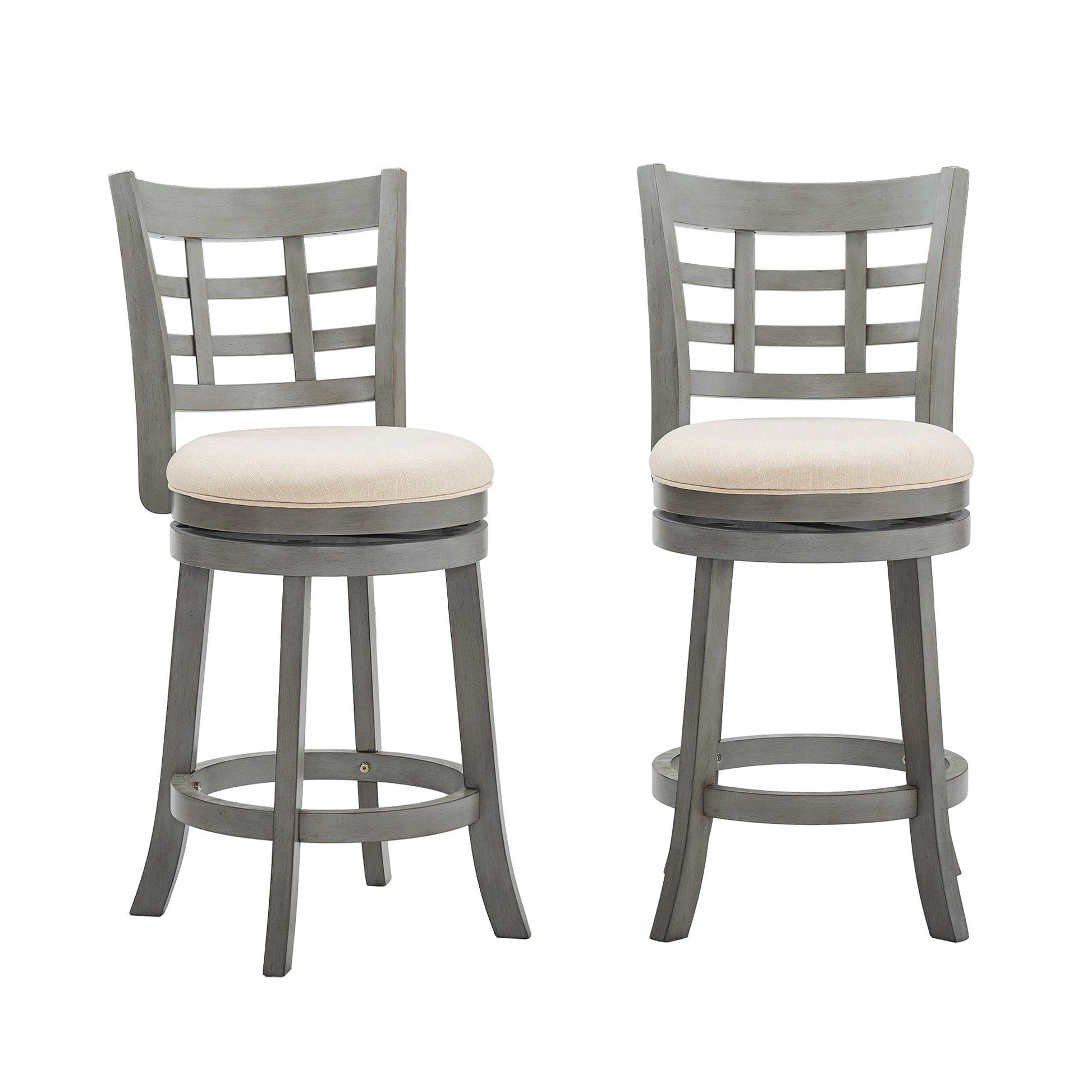 Constructed of durable rubberwood, this Panel Back Swivel Stool displays a beautiful, classic style and offers comfortable support for everyday dining. A rich wood finish completes the chair's frame, while a footrest and upholstered seat provide improved comfort for daily use. The swivel function of this stool provides advanced mobility and makes it easy to have a casual conversation with friends and family during mealtime. The curved back design adds additional support, so you can look forward to sitting in this seat.