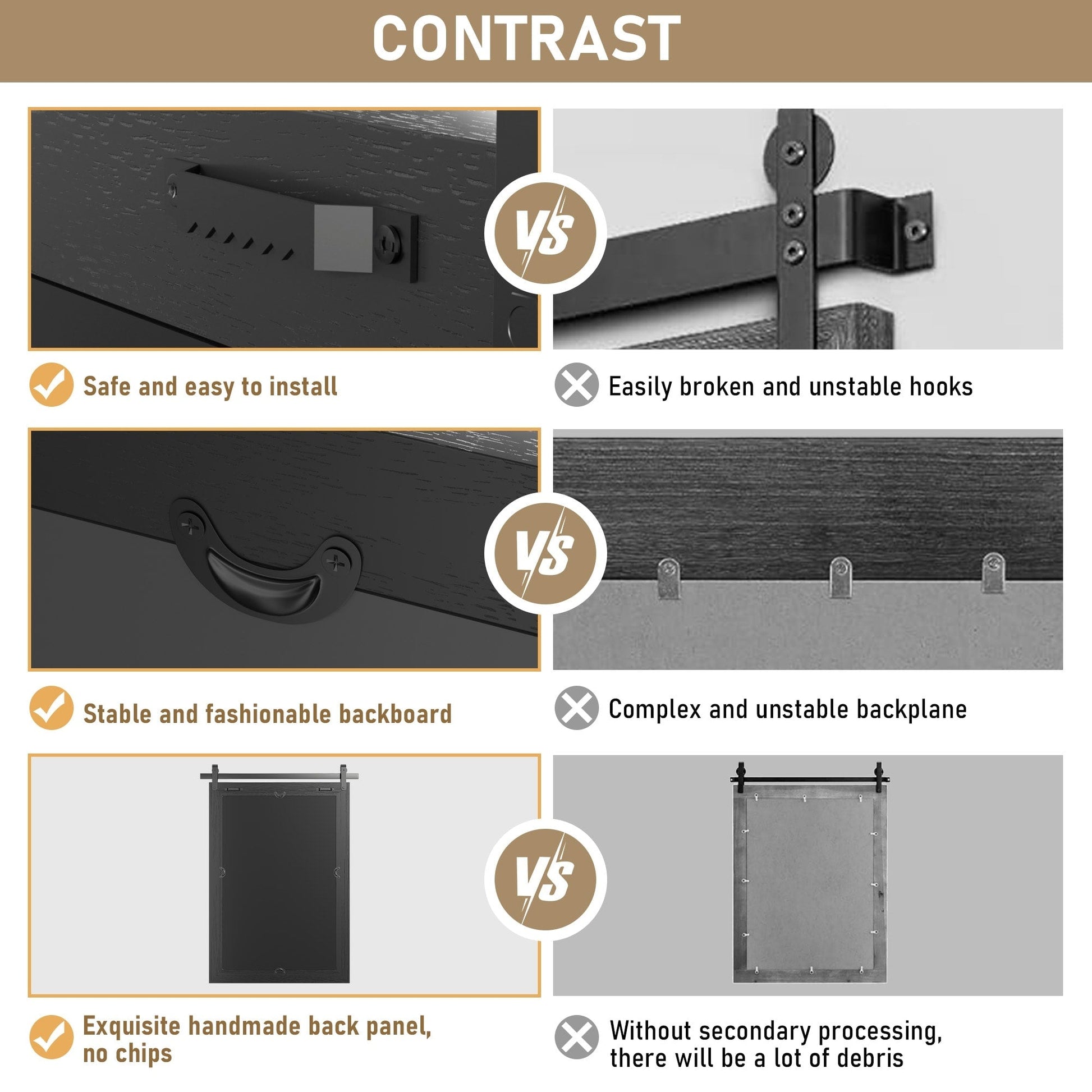 - Moisture proof MDF backboard: The MDF backboard of the decorative mirror is covered with a waterproof coating, which can adapt to damp places such as bathrooms for a long time without mold.