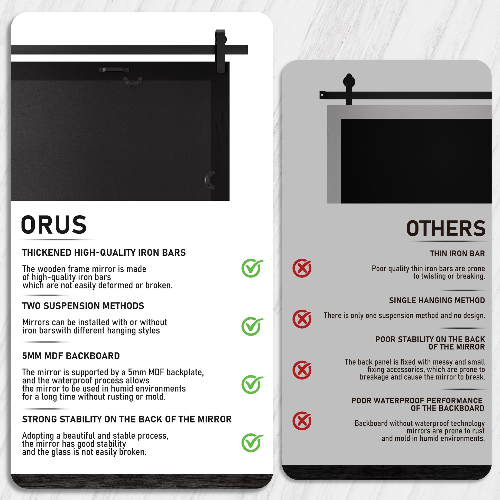 - Rustic Style: The farmhouse mirror is designed with solid wood and metal brackets to match the rustic style and can be used to decorate the rustic walls, bedrooms, living rooms and various places.
