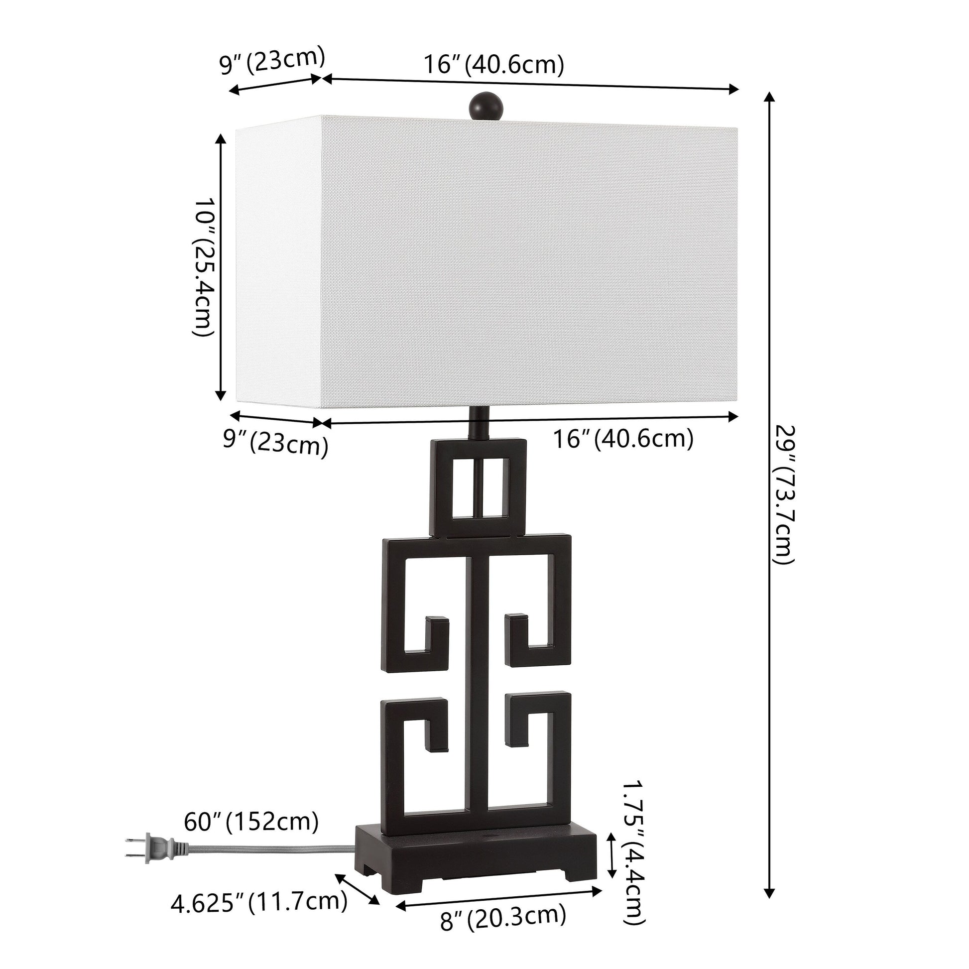 Infinitely versatile and adaptable to myriad decorating styles, the set of two Key table lamps stars the iconic Greek symbol for infinity. This design is crafted of antique gold finished metal with a rectangular box shade in white textured cotton.