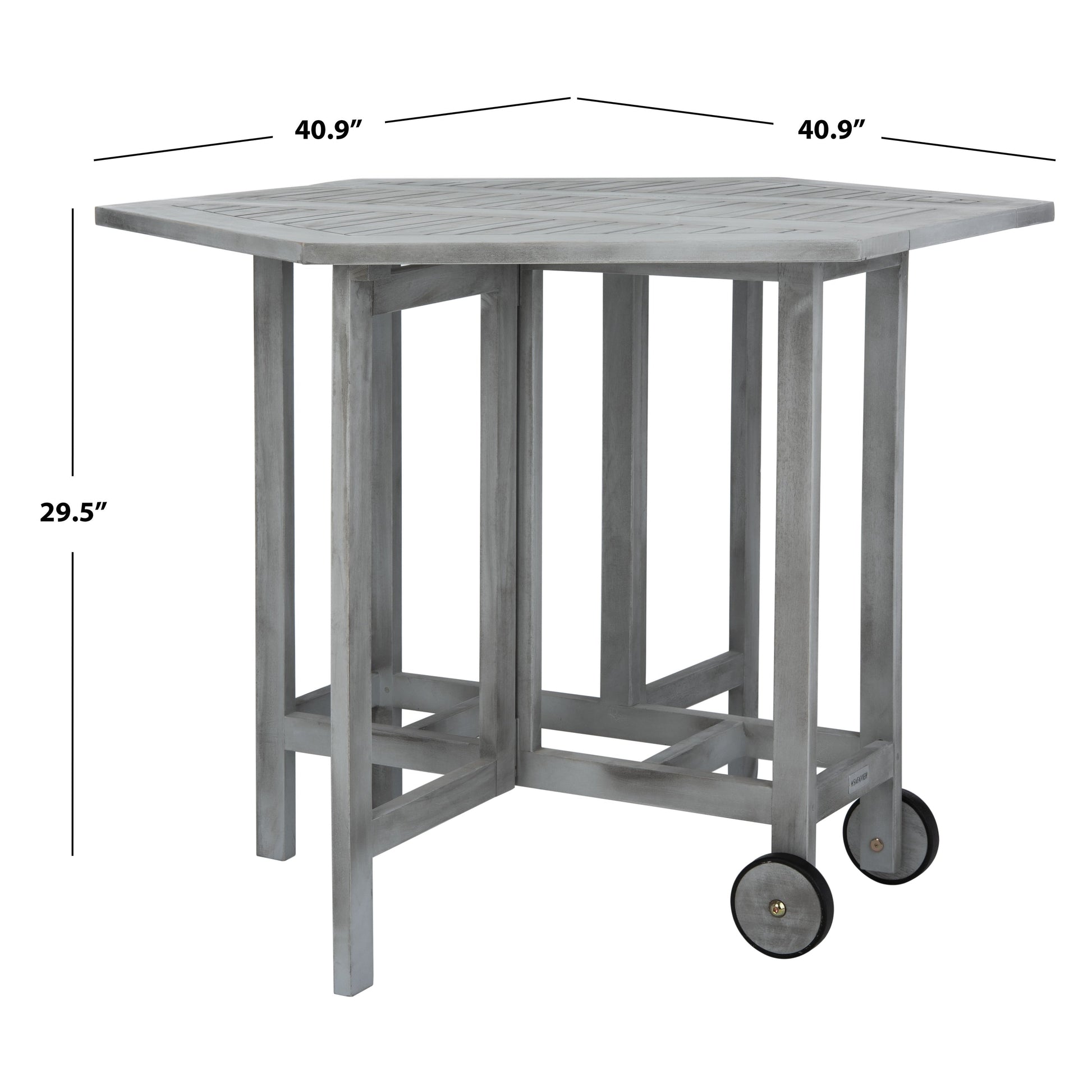- Table: 29.5 inches high x 40.9 inches wide x 40.9 inches deep