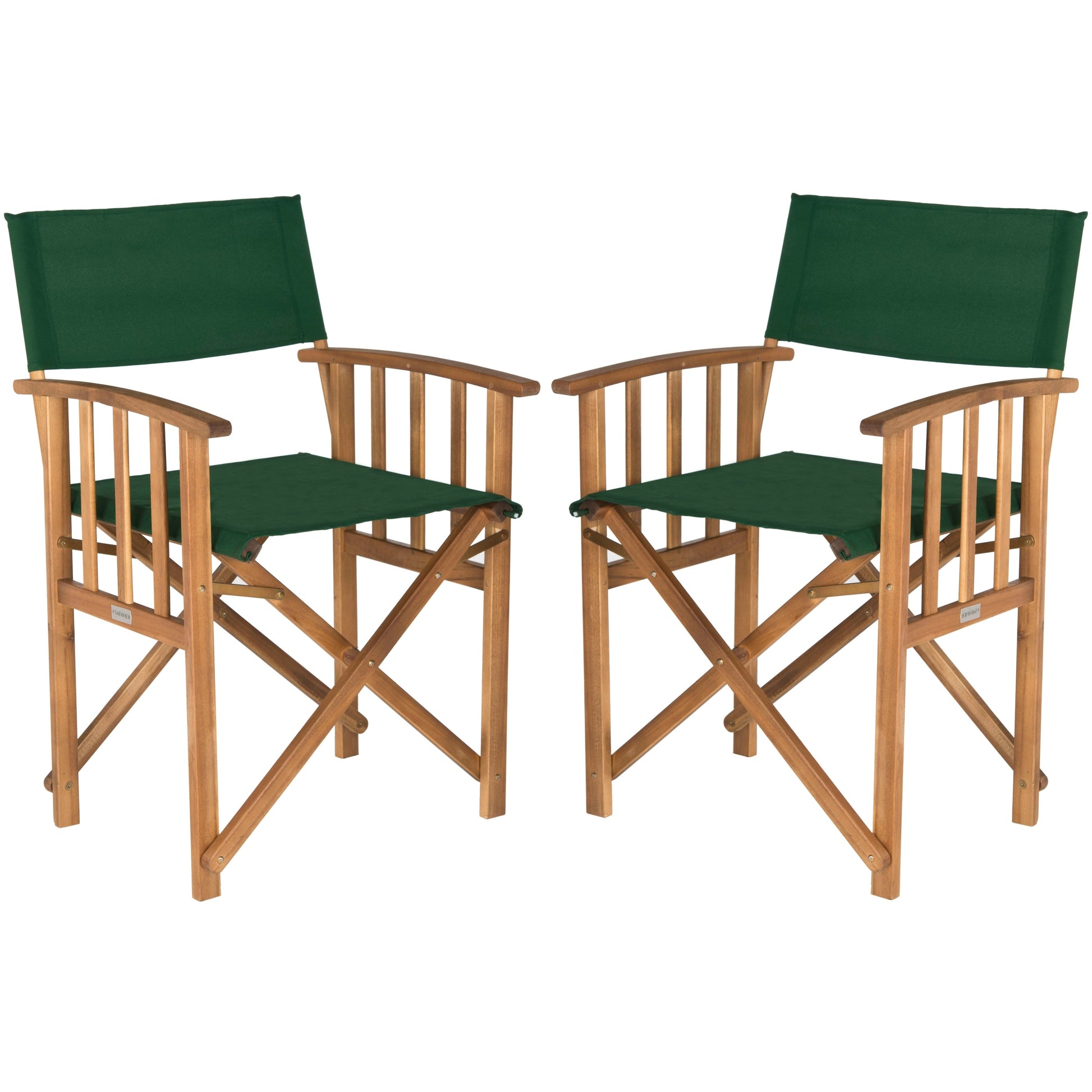 SAFAVIEH Outdoor Vaira Acacia Wood Director Chair (Set of 2) - 22W x 34D x 21H