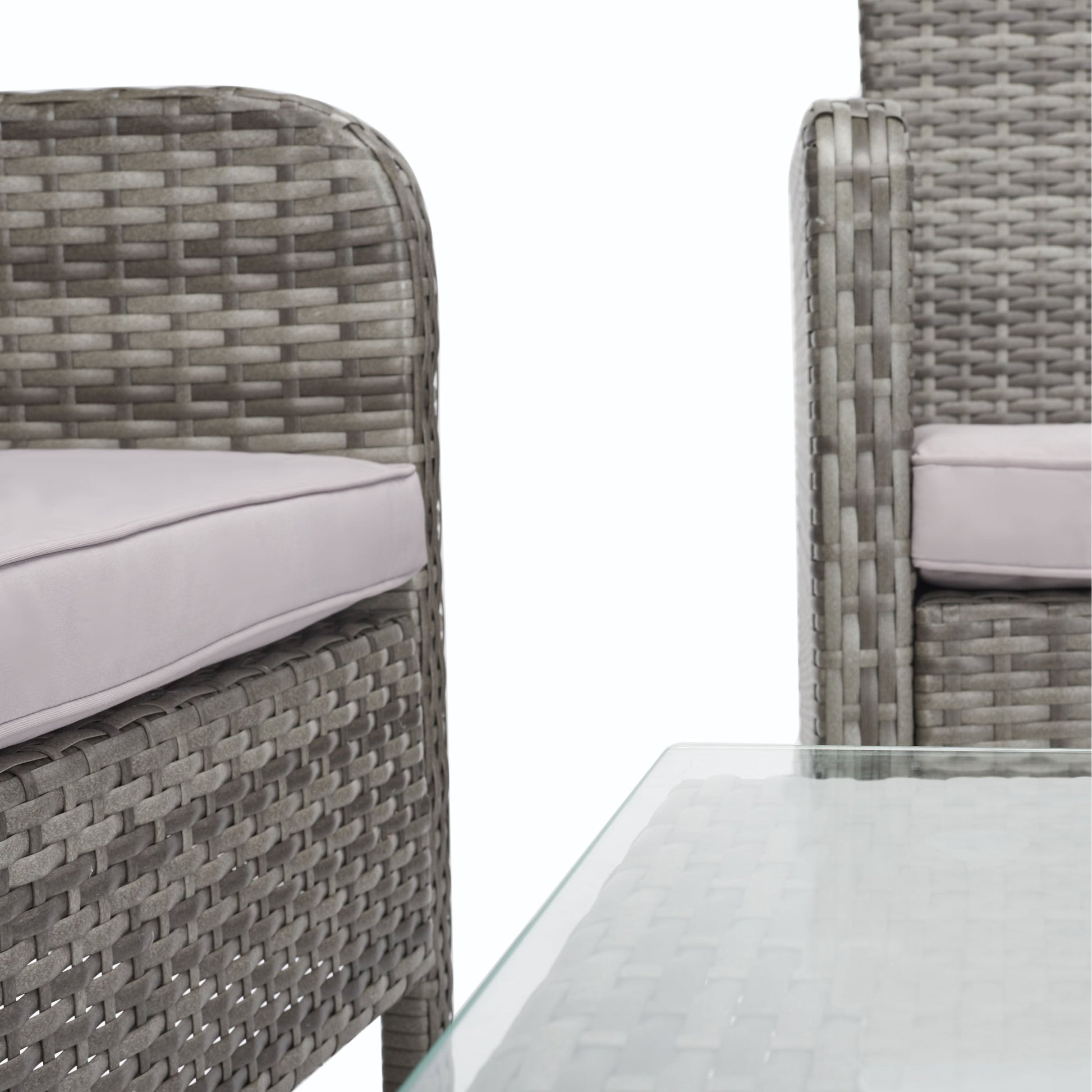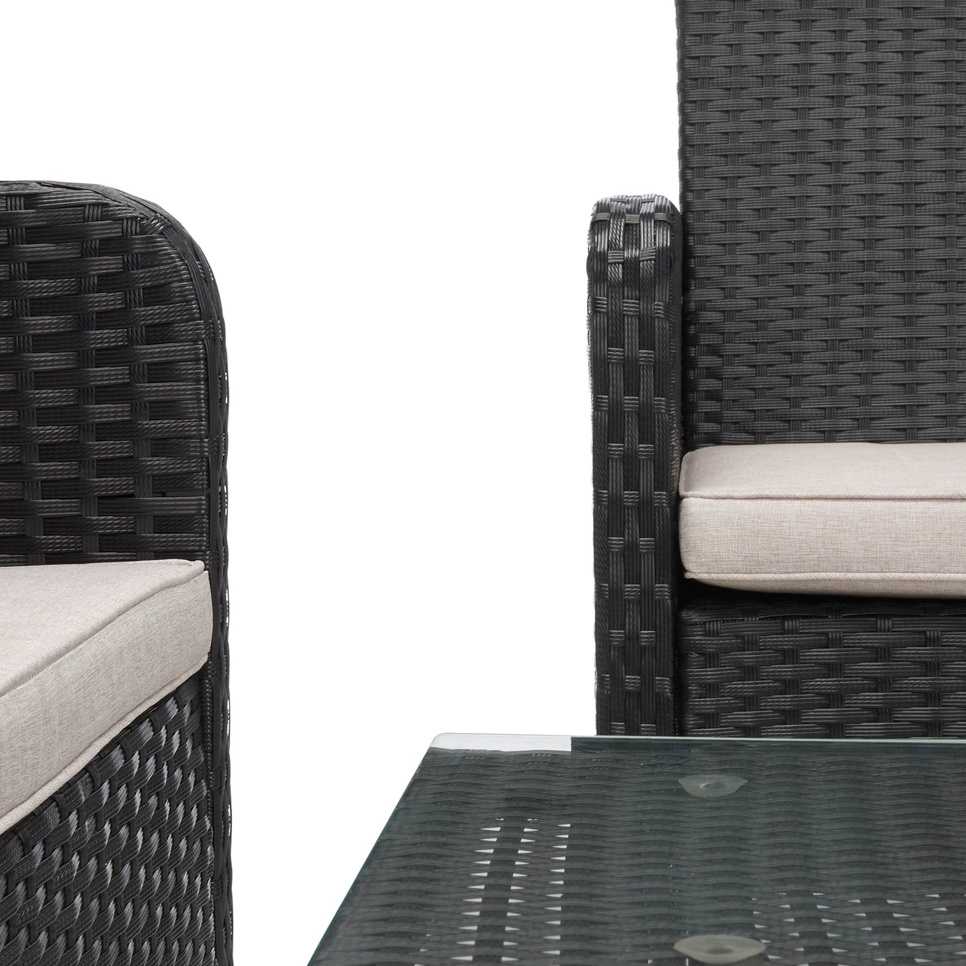 At once casual and elegant, the Living Set is ideal for clinking glasses with guests in the starlight or enjoying coffee at sunrise. Aboka is designer smart in neutral and beige and includes two armchairs, a settee, and a glass topped coffee table with a bottom shelf.