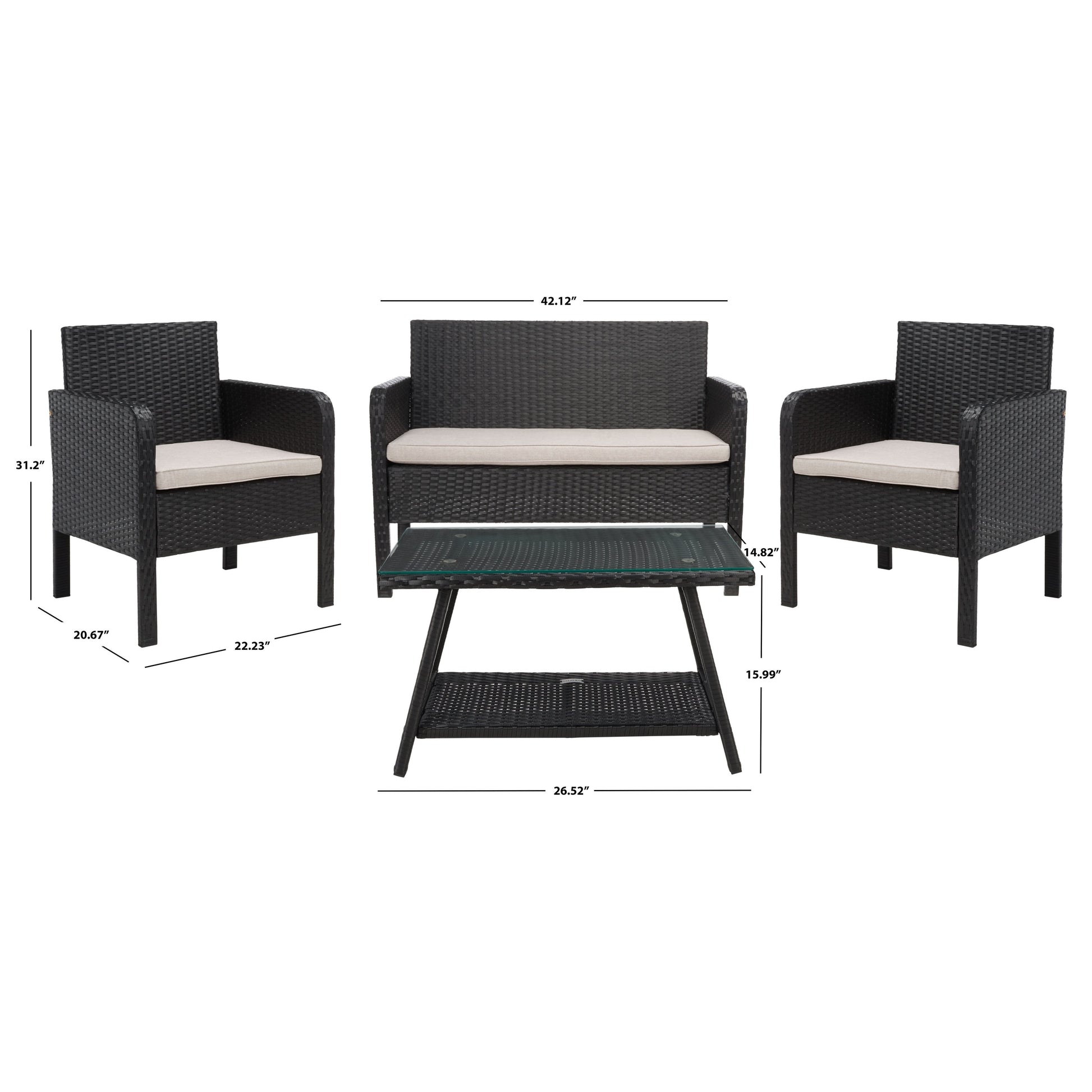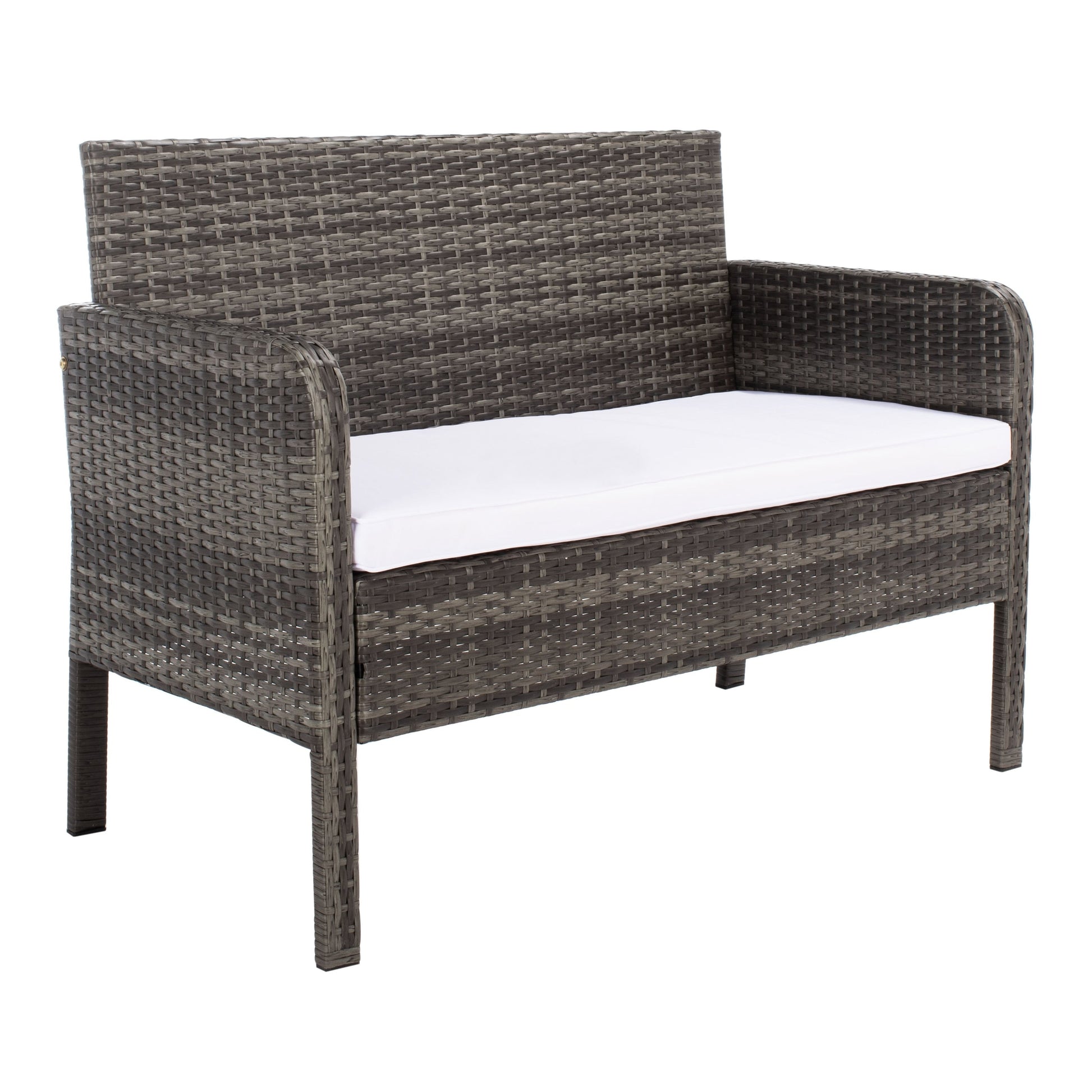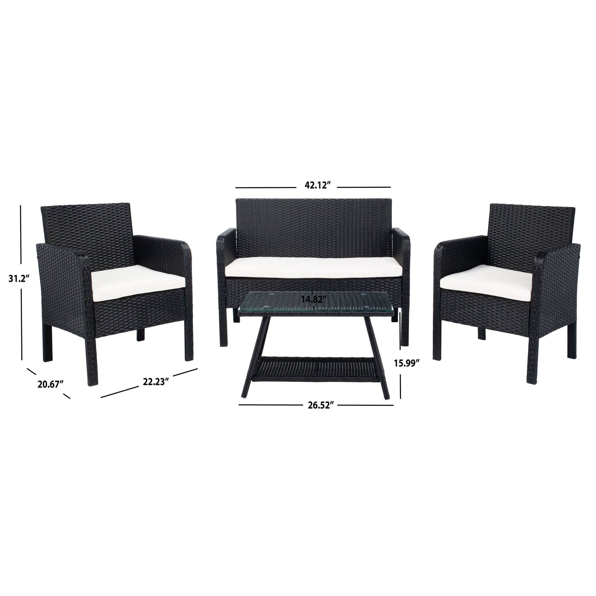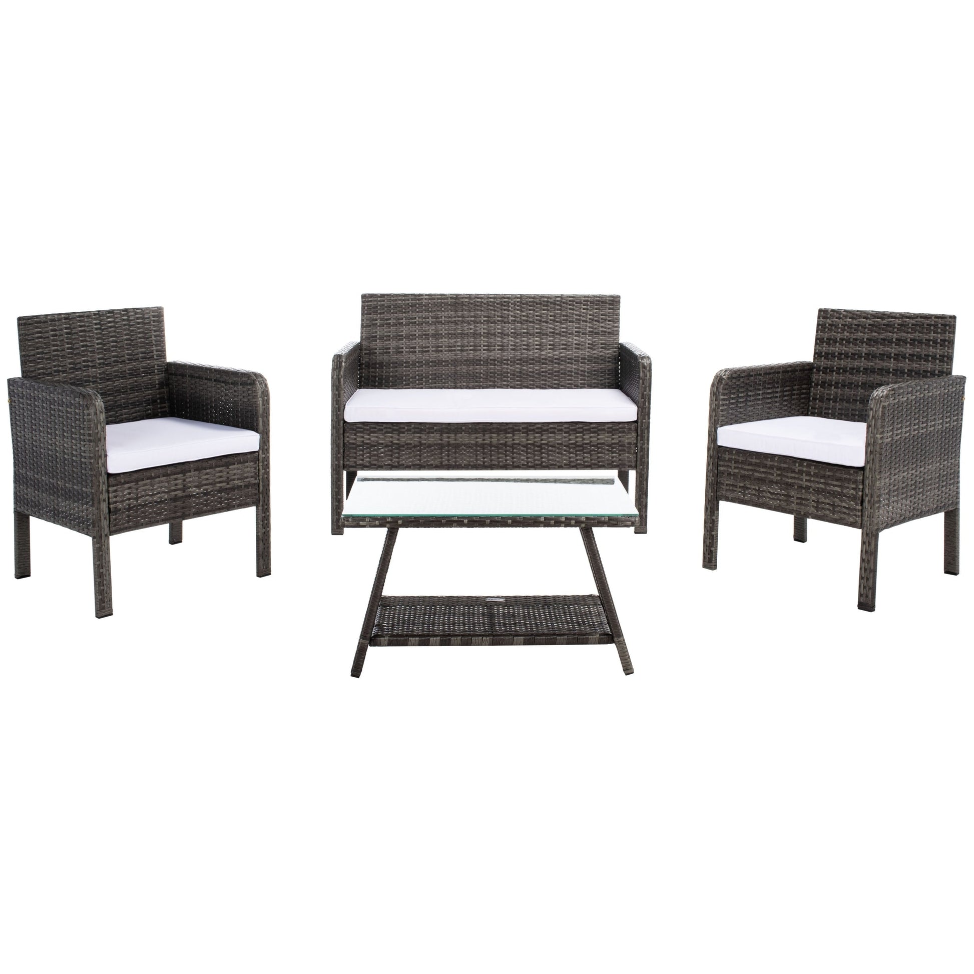 SAFAVIEH Outdoor Zsolt Wicker/ Steel 4-Piece Patio Conversation Set - 42W x 31D x 21H