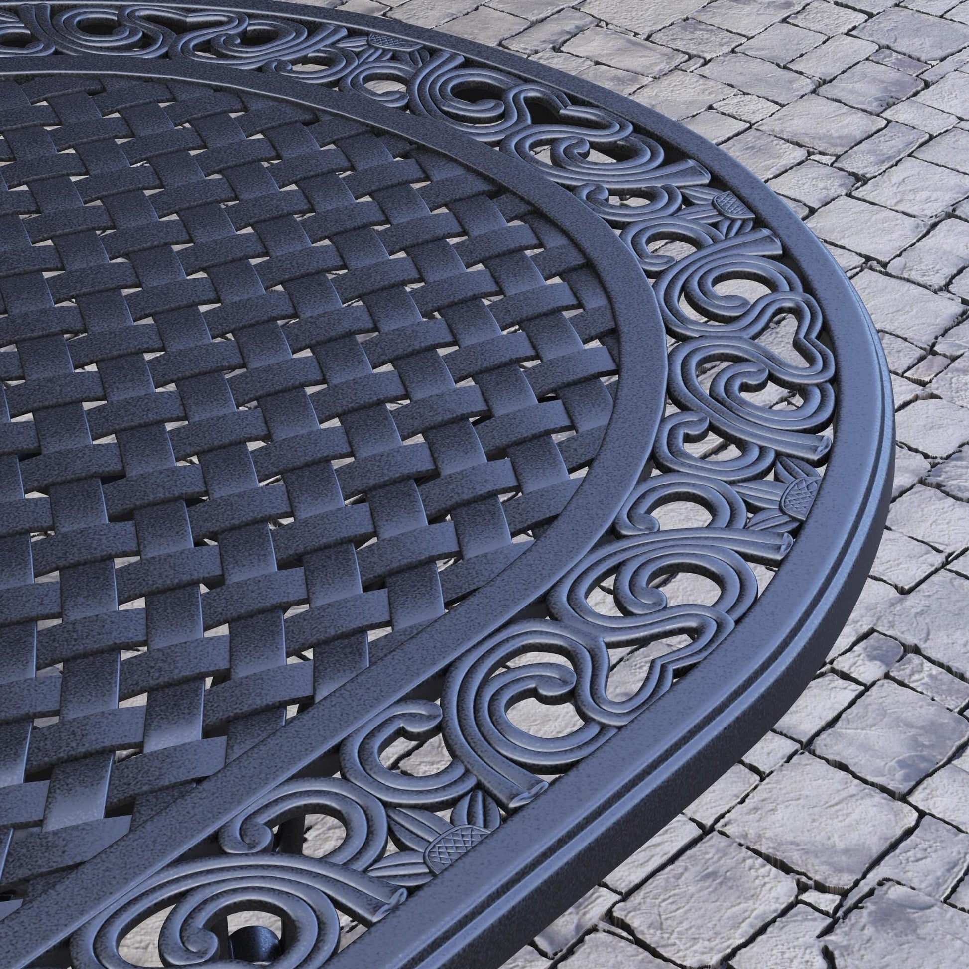 - Black powder-coated cast aluminum frame with durable clear coat is designed to withstand the elements