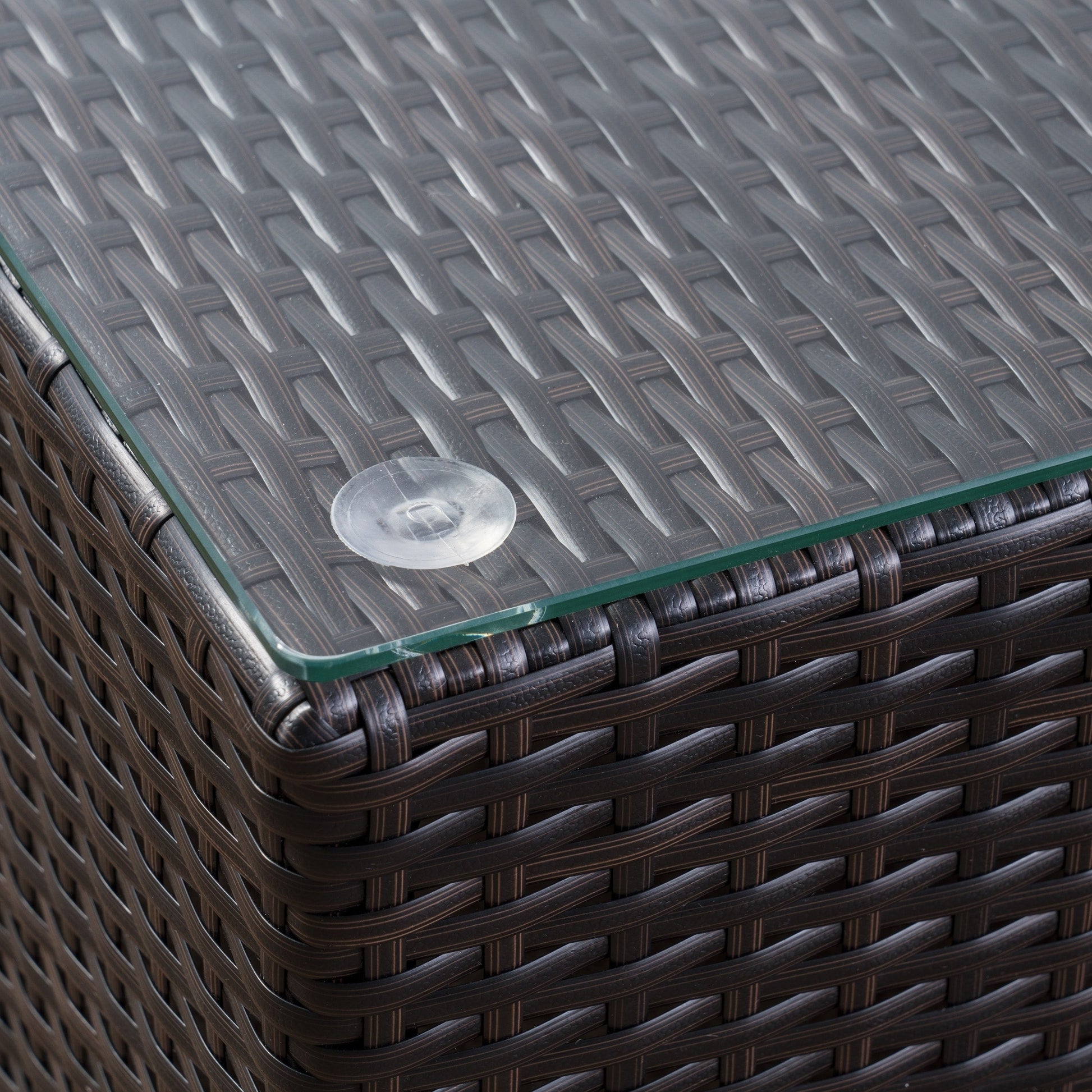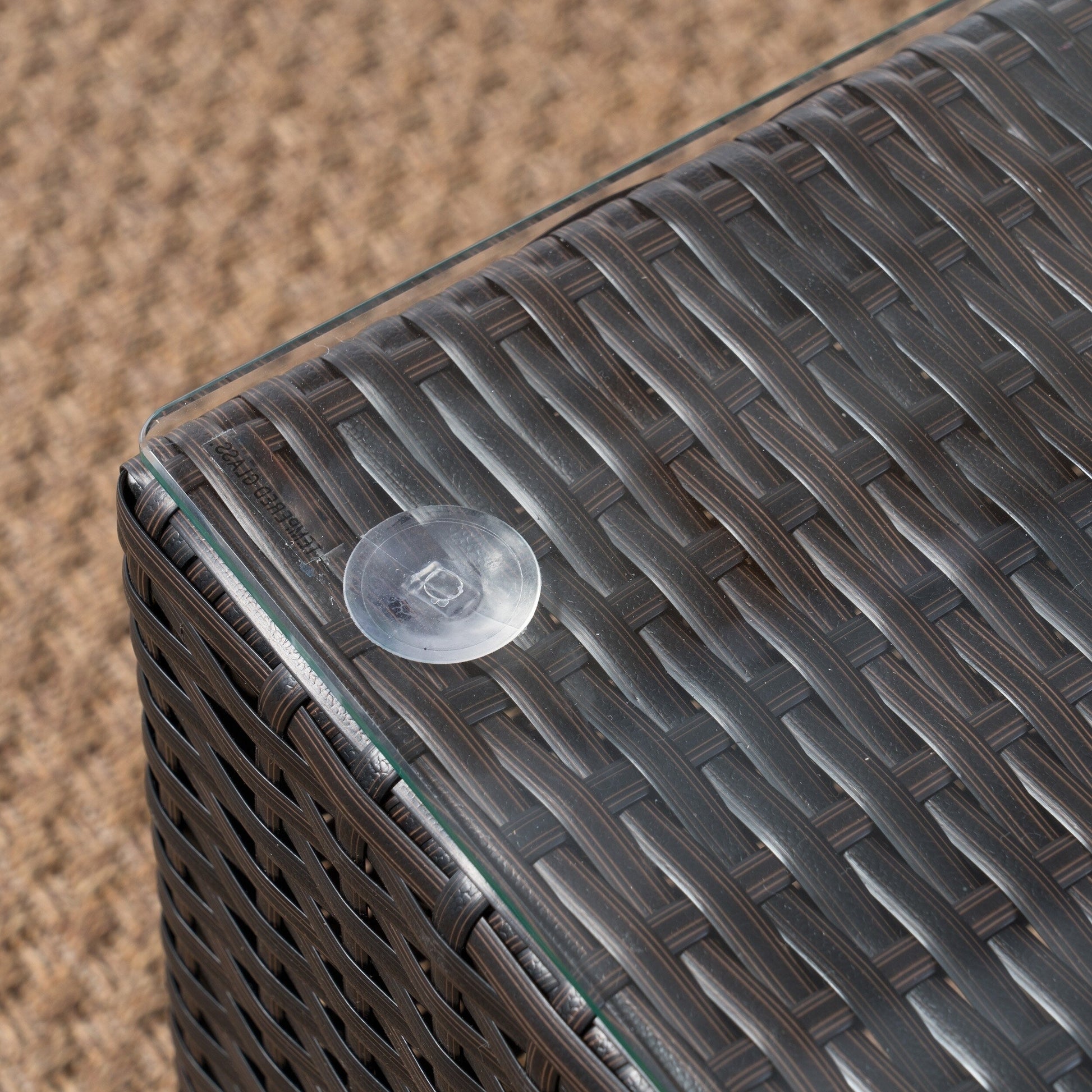 Build a cozy sitting area next to your pool or up on your deck with the Santa Rosa five-seat wicker sectional. With dual ottomans and a glass-topped coffee table, this lounge set lets you kick back and relax with your drinks close at hand. Rustproof aluminum framing provides quality support for this attractive set, while the thick water-resistant cushions up your comfort.