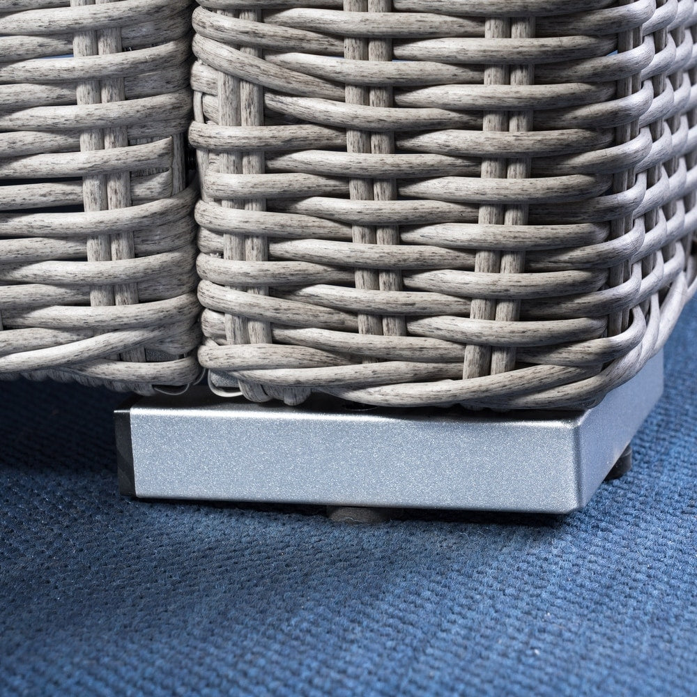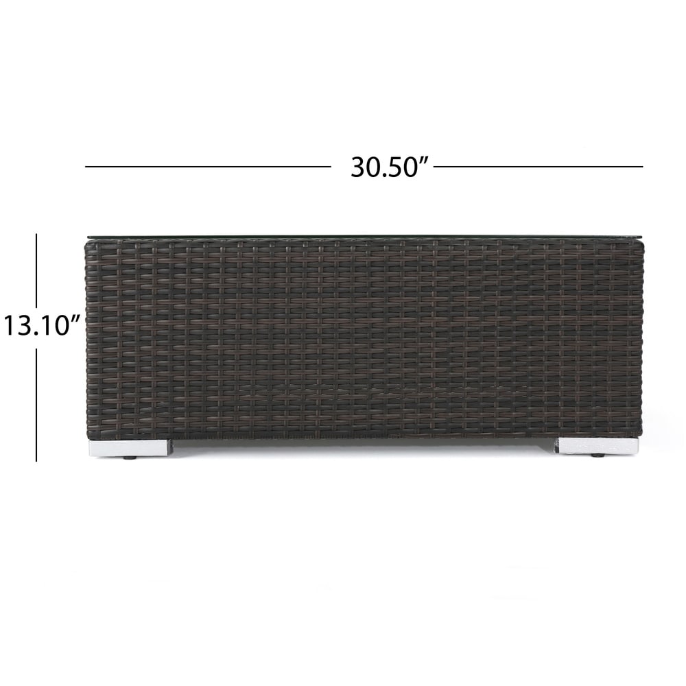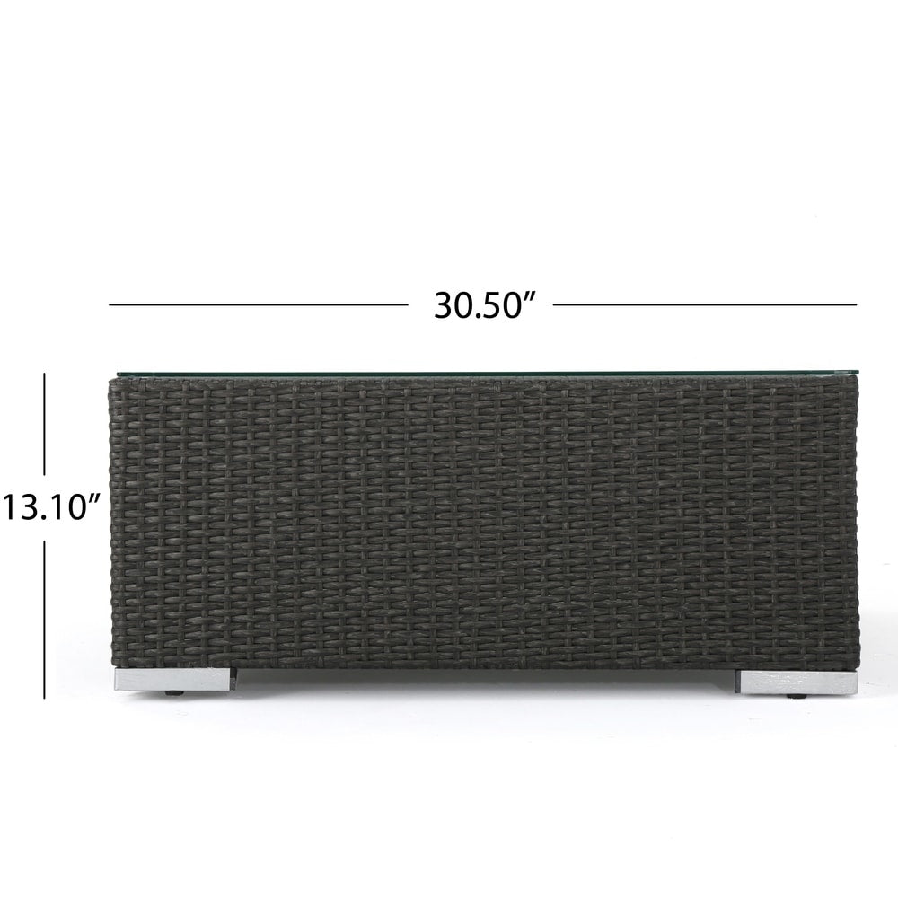 - Material: Wicker, aluminum, tempered glass