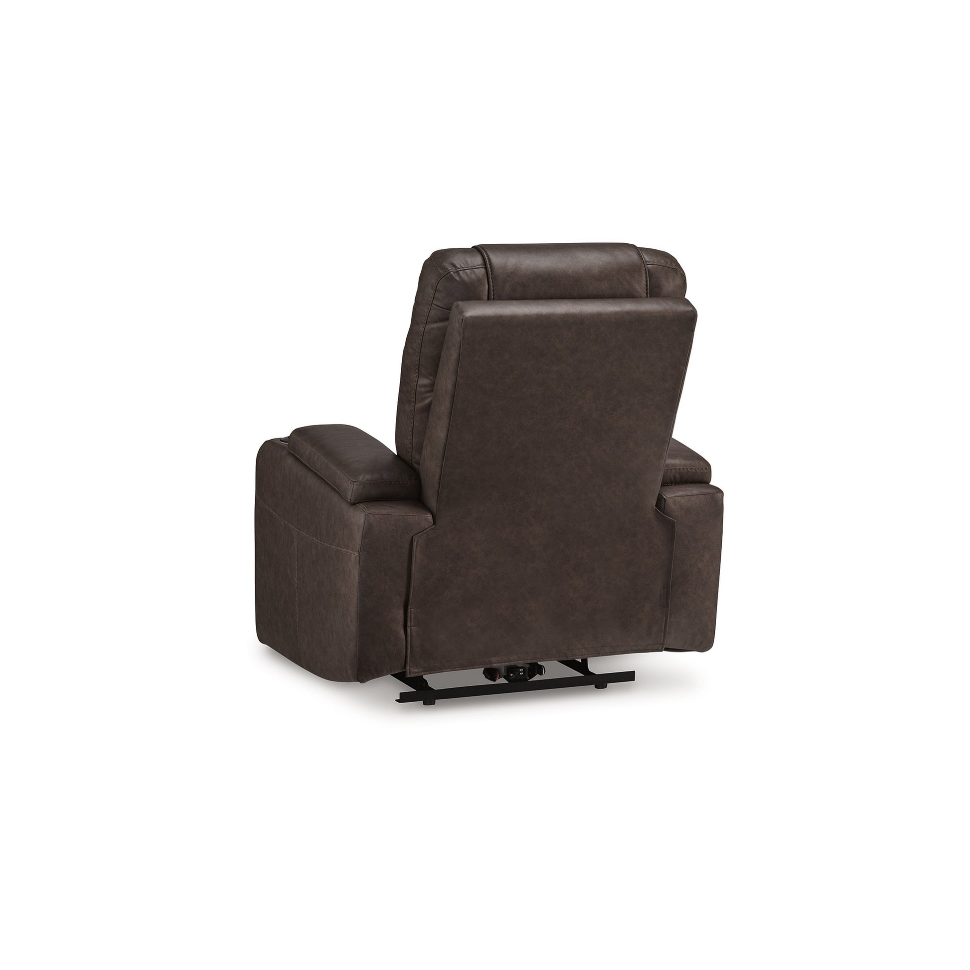 Enhance your movie nights with this power recliner chair, combining modern style with advanced functionality. Upholstered in brown faux leather, it offers a plush feel and long-lasting durability. The adjustable headrest ensures an ideal view, while the extended ottoman maximizes comfort. Ambient LED lighting and sleek stitching add to its theater design. Check out our Scon collection for more.