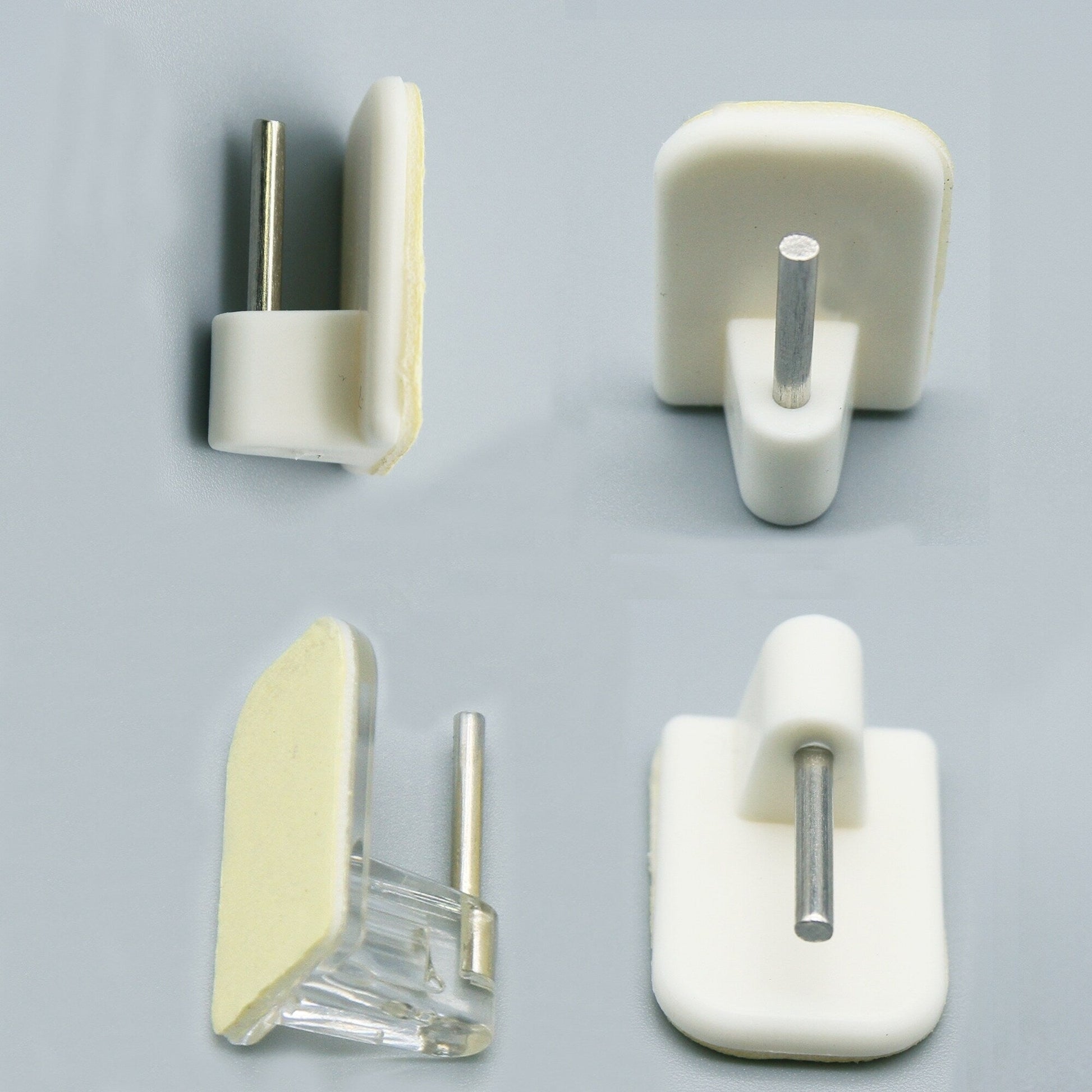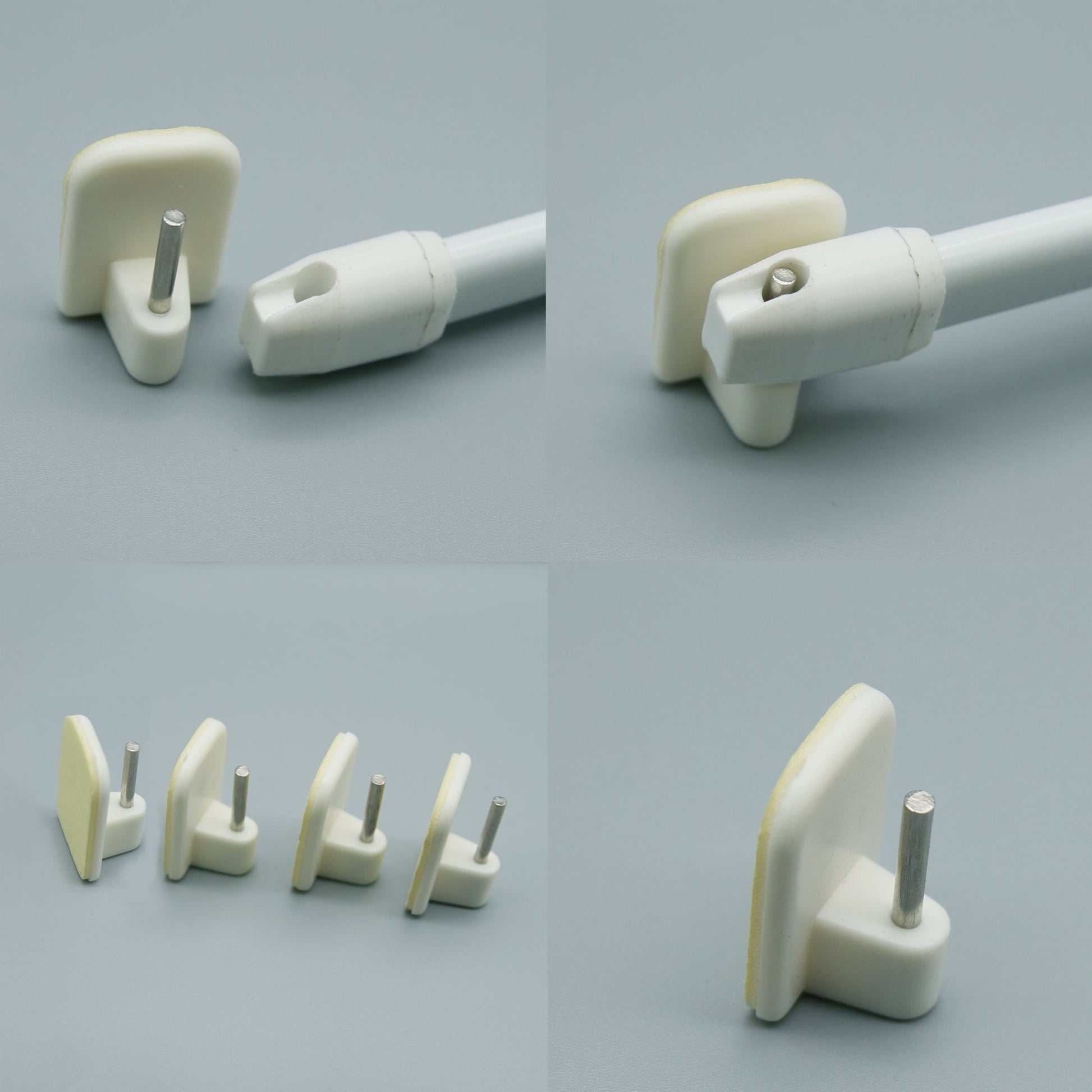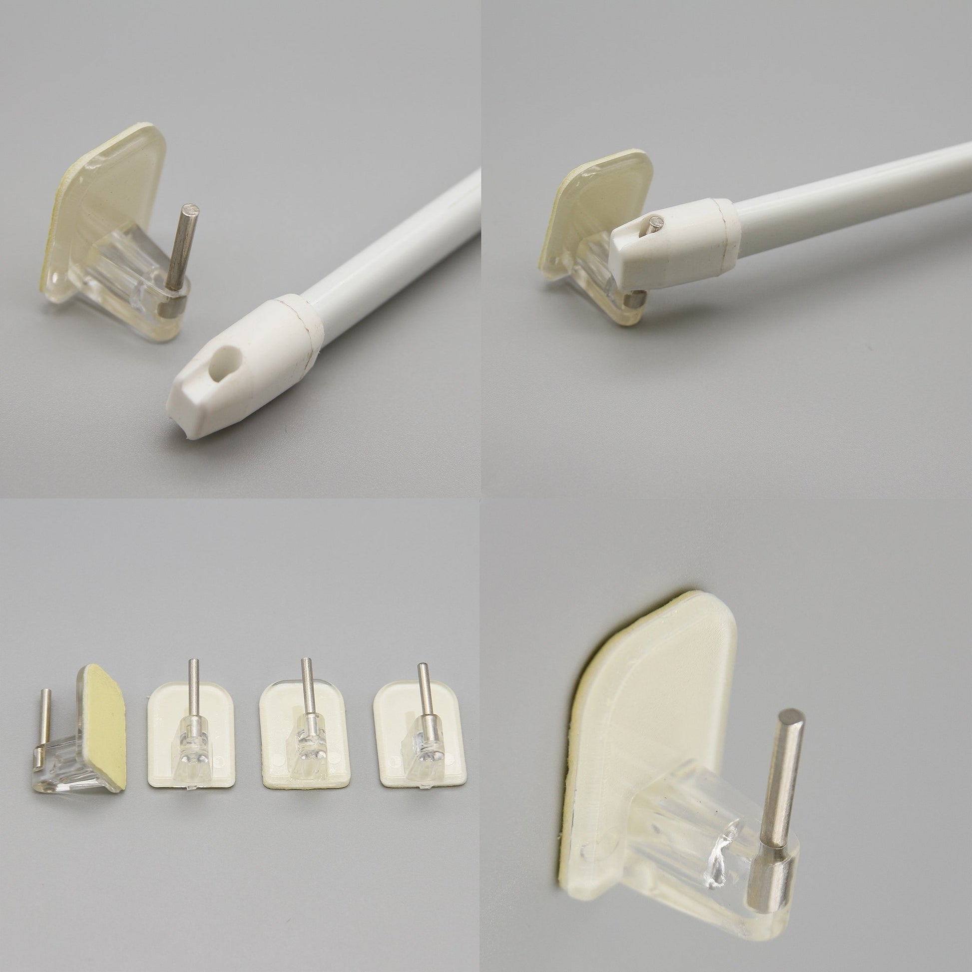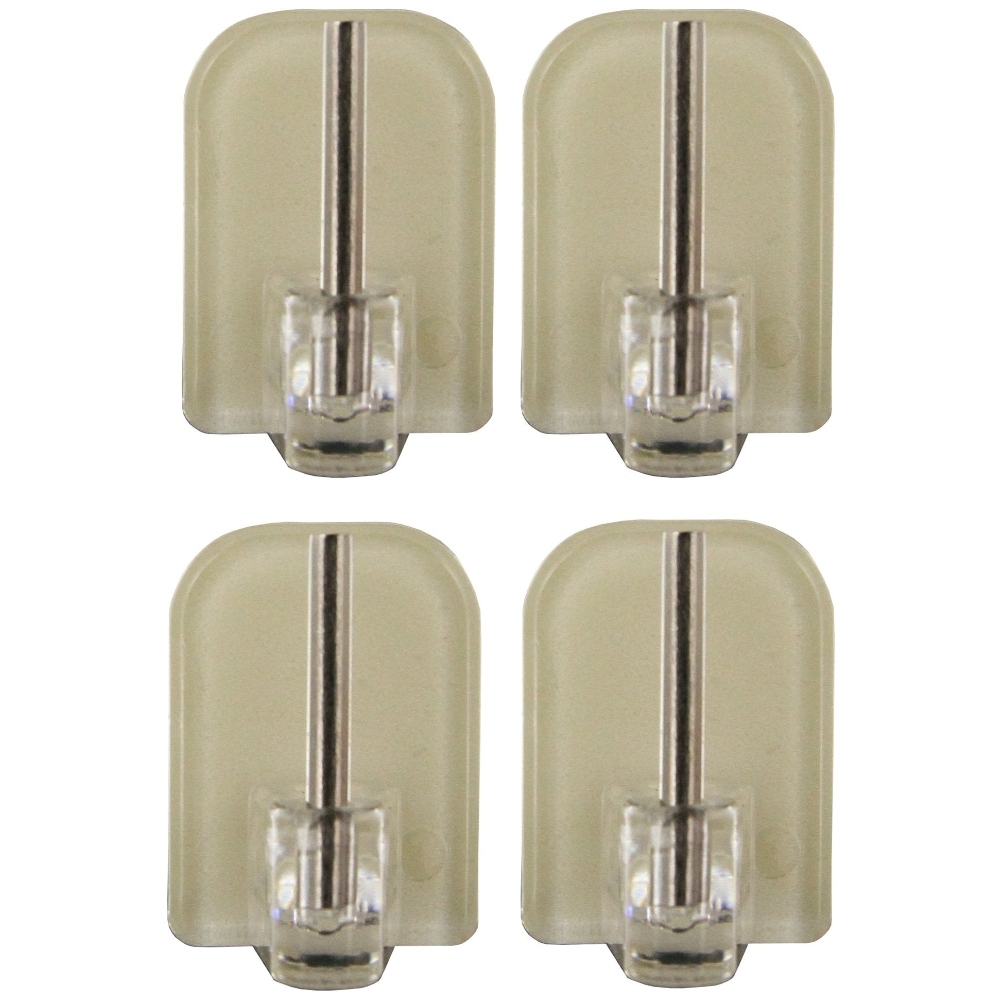 Hang curtains and valances without damaging walls with these Self Adhesive Hooks for Sash Rods. Made of durable plastic with a strong self-stick back, these hooks have an ultra-strong viscosity and can hold up to 3 pounds. With no tools needed for installation, simply peel off the protective backing and stick them to the window frame. This set of four hooks is compatible with all flat sash rods (sold separately) and is available in four colors. Please note that they should not be used on painted walls.