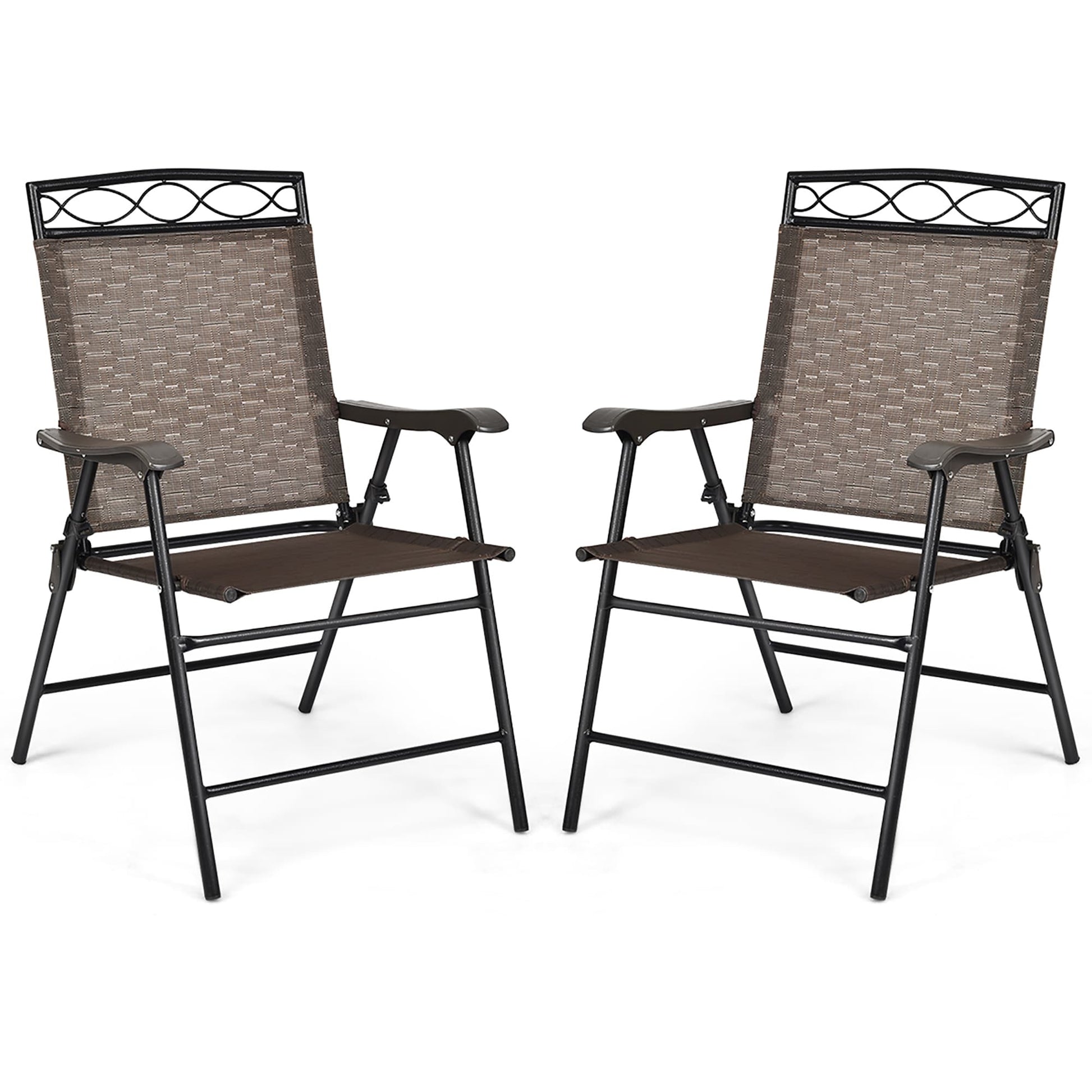 Set of 2 Patio Chairs Outdoor Folding Lawn Chairs with Steel Frame