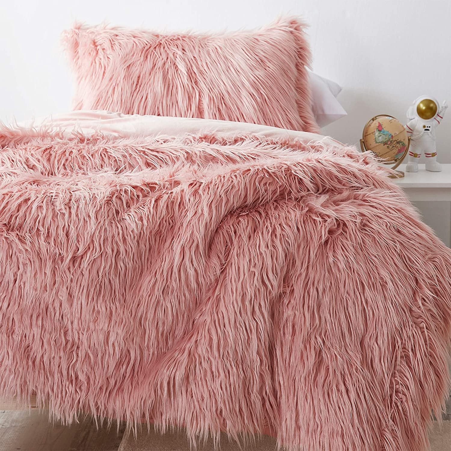 You may not live on the Shetland Islands, but that doesn't mean that you don't have harsh weather in your area. When the temperatures drop and the days get dark earlier, you probably feel the need to make your bed a little more warm and cozy, right? We've found that the best way to increase the comfort of your Twin XL, Queen, or King sized bed is with an extra large plush comforter like our Shetland Pony - Coma Inducer! The reverse side of this machine washable comforter is made with a shorter fake mink material that will add a soft touch to your cozy bedding essentials. And while this reverse side is nice and cozy, it is the front of this plush Twin XL, Queen XL, or King XL comforter that you will be obsessed with. The long and thick faux fur that makes up the front of this pink comforter set is reminiscent of a ponies mane and will add a layer of softness to your cozy bedding essentials that you've only dreamed about. To make your entire bed feel warm and cozy, this plush pink bedding set also comes with one furry pillow sham with the Twin XL comforter and two furry pillow shams with the extra large Queen and oversized King comforters.