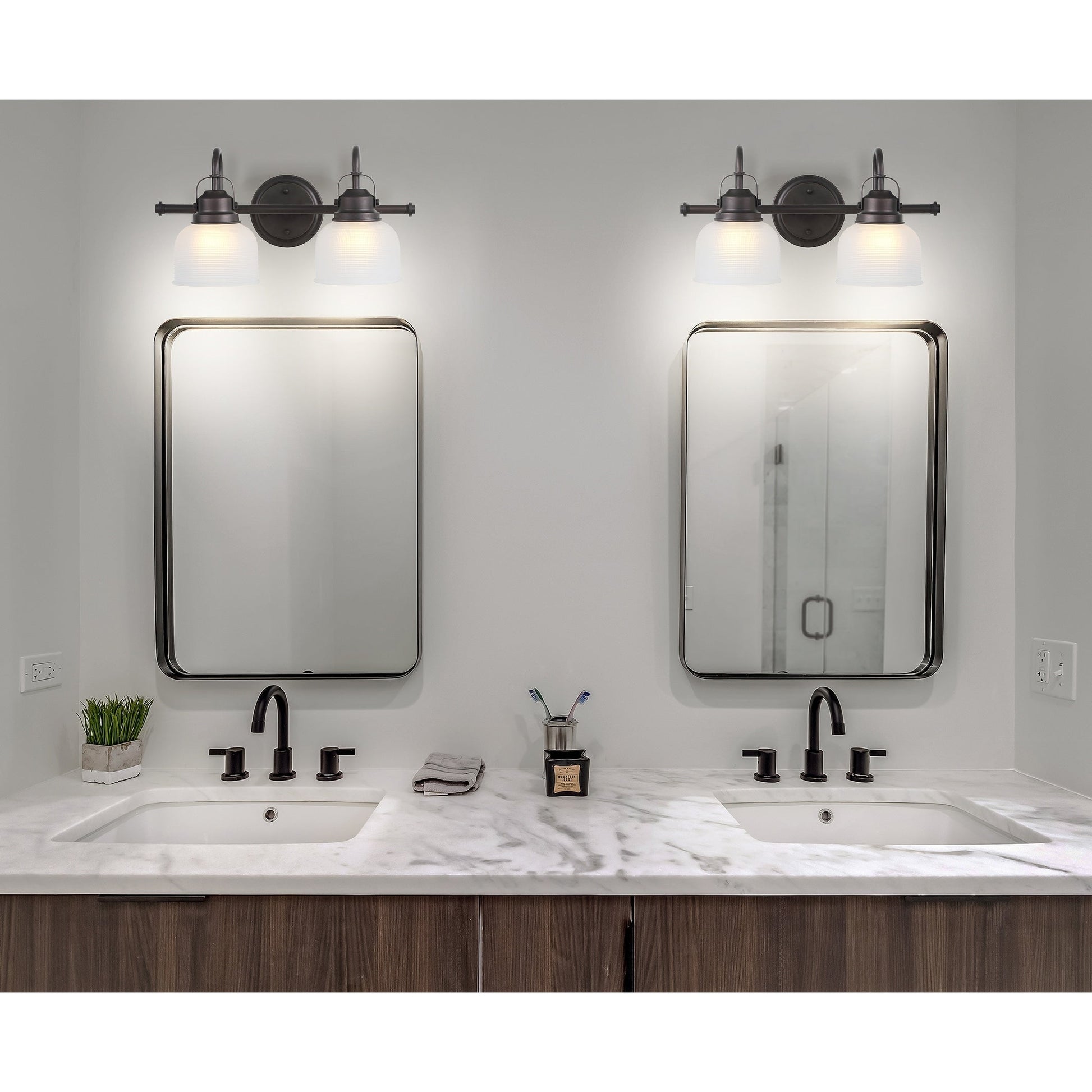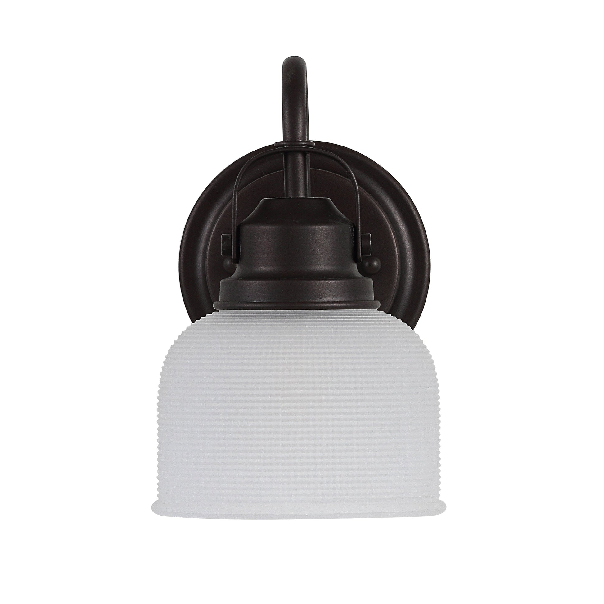 With a hint of texture on the glass shade to blur the glare of the bulb, this elegant sconce is perfect for a bathroom or vanity setting that calls for bright, but not harsh, light. On either side of a mirror, you'll find this stylish piece the perfect addition to your morning makeup routine, as it is compatible with a variety of bulbs. Also versatile within any style of decor, we particularly love seeing these in bathrooms and kitchens, where the arch of the light's arm is reminiscent of the curve of a beautiful faucet.