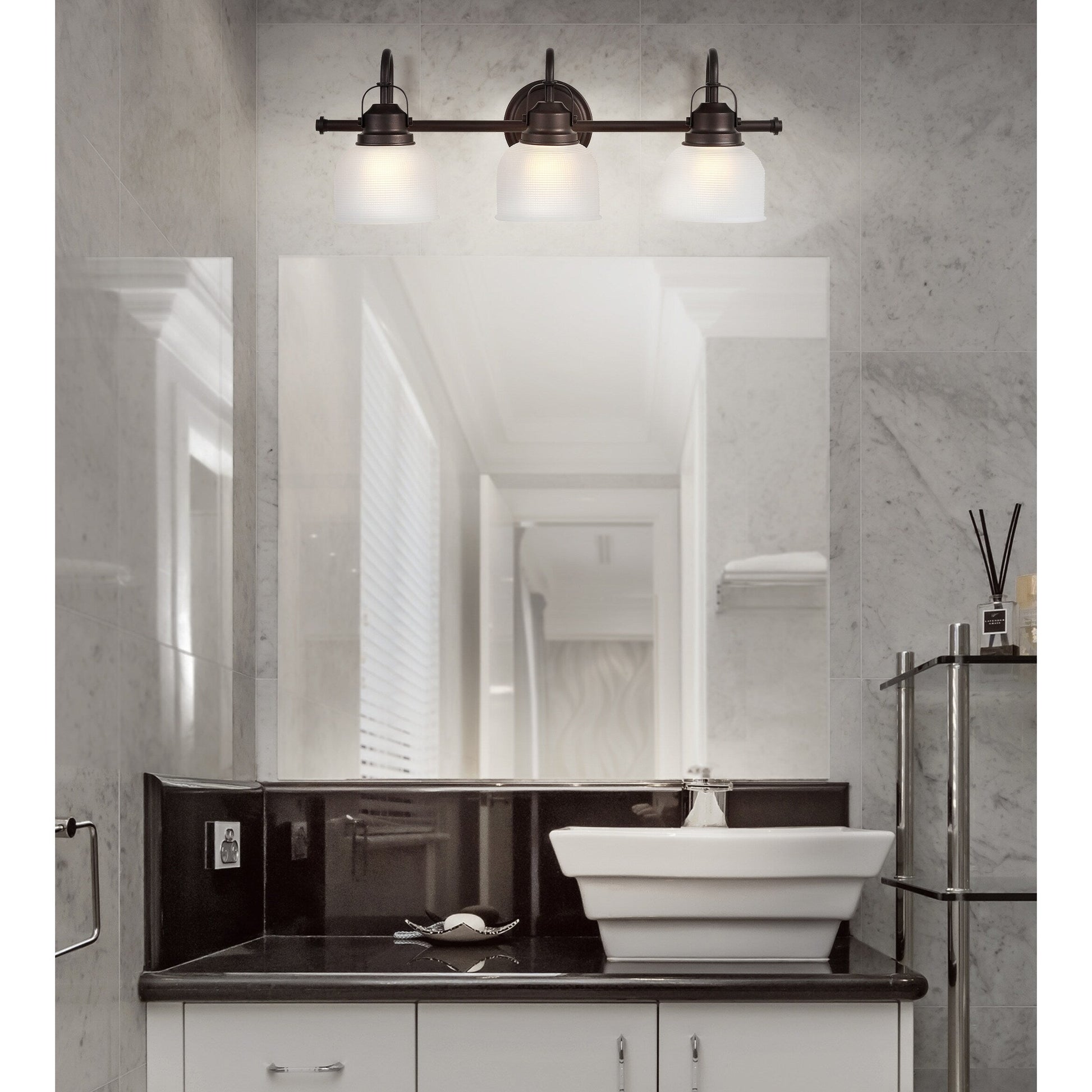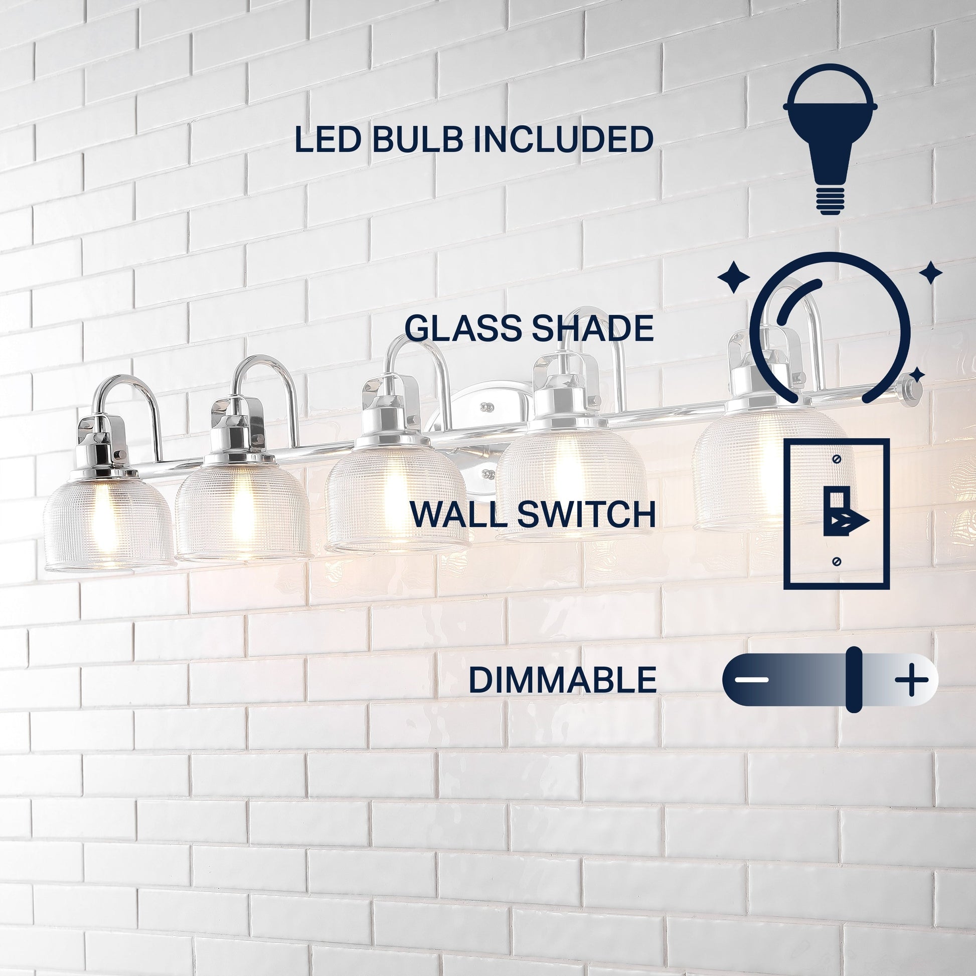 - Textured glass and polished chrome come together to create a chic, classic combination for this sconce