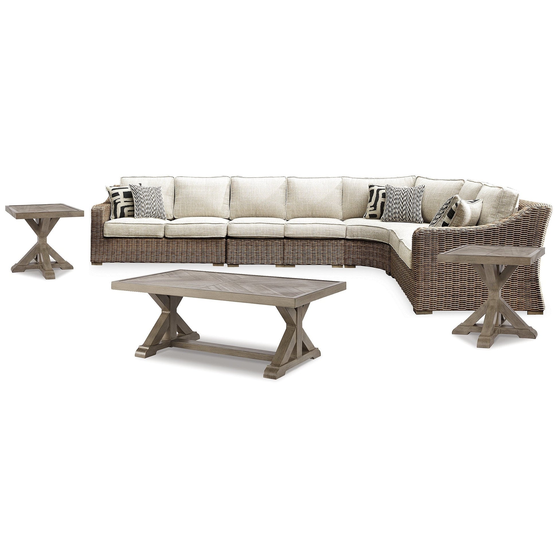 Signature Design by Ashley Beachcroft Brown/Beige 8-Piece Outdoor Seating Package - 107 W x 37.75 D x 34.63 H
