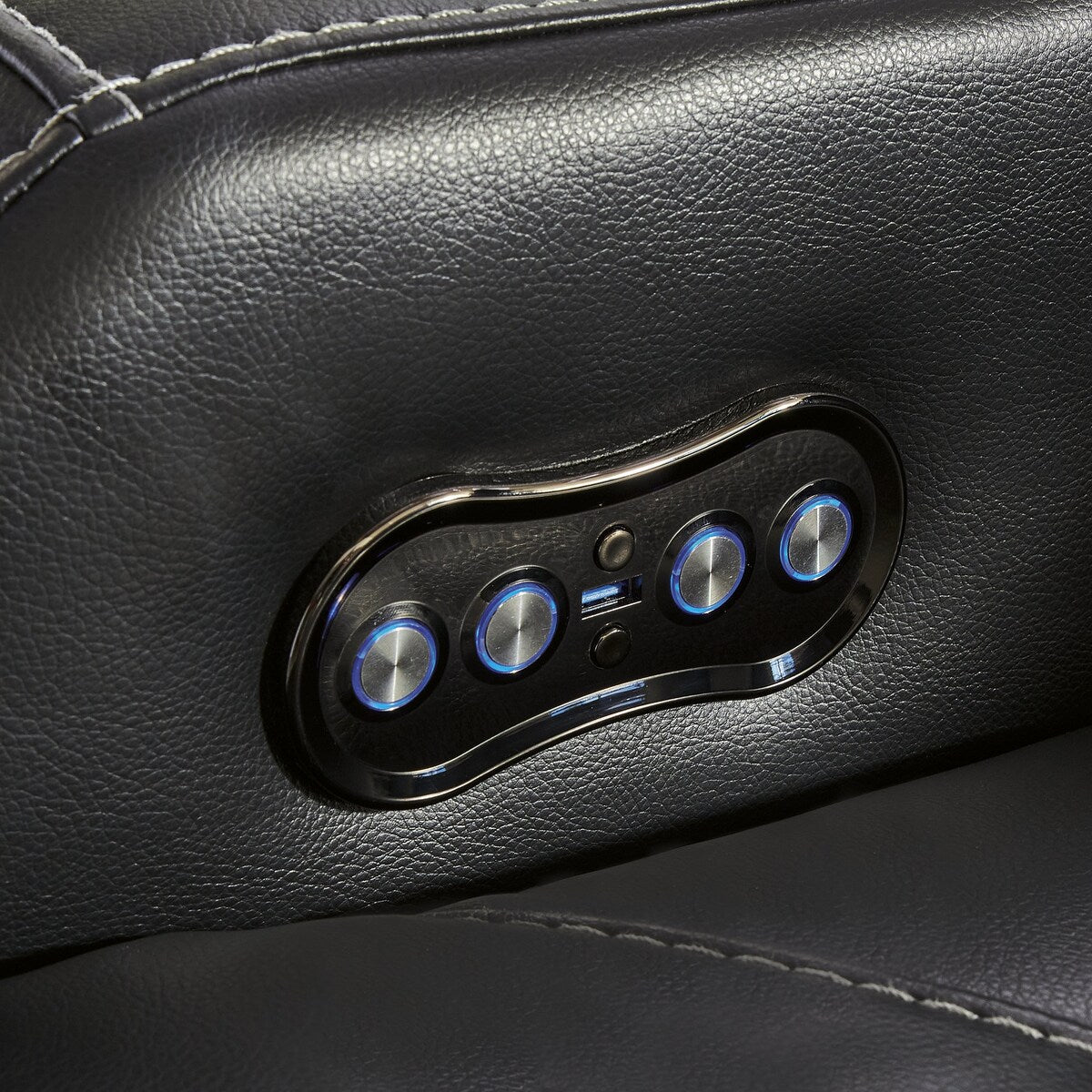 Comfort. Power. Luxury. Some people like having all the bells and whistles. So you can see why they find this power reclining sofa so inviting. It must be the power adjustable headrests, reading lights, storage and USB chargingâthe essentials for binge-watching, gaming or chilling out in total comfort. Or maybe it's because one touch gives them the power to recline an infinite number of ways. Let's not overlook the plump cushions and stitched detailing that complete this slice of heaven.