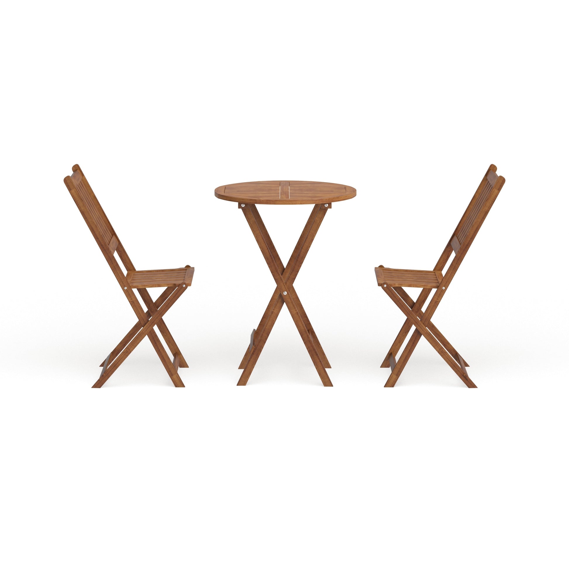Experience elegance and durability with the Silverton Acacia Hardwood Outdoor Bistro Set by Havenside Home. Crafted from sturdy acacia hardwood, this bistro set features an oil-based stain natural finish that gives it a stylish edge while ensuring long-lasting performance. This set includes two slatted chairs and a round table, perfect for outdoor dining or enjoying your favorite beverages. With a weight of 32.5 pounds, this bistro set is both portable and easy to store as it folds flat. The set comes fully assembled, so you can start enjoying your outdoor space right away.