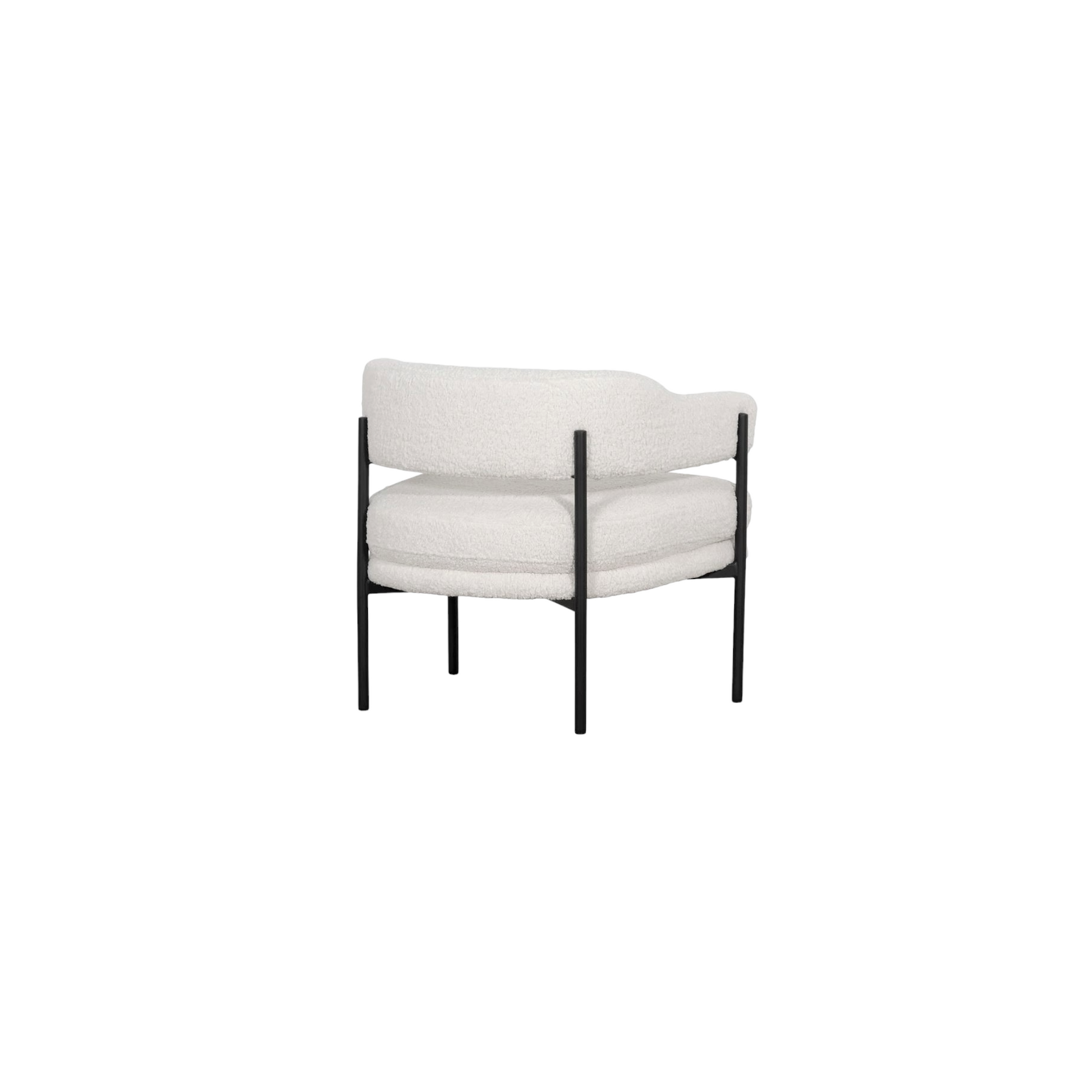[description] Le fauteuil lounge blanc Silves présente un design industriel unique qui se démarque dans tout salon contemporain. Il est doté d'un dossier incurvé flottant et d'une assise recouverte de tissu, soutenue par une structure en métal noir. Élégant et polyvalent, ce fauteuil d'appoint s'intègre parfaitement dans tout salon ou espace détente. Associez-le à une table basse pour créer un espace de vie exceptionnel.