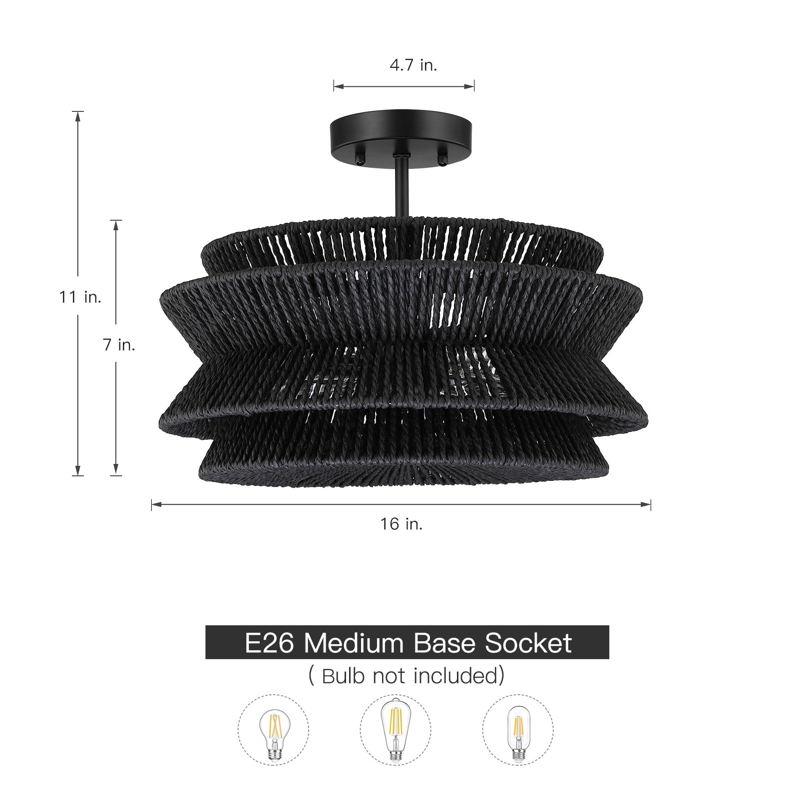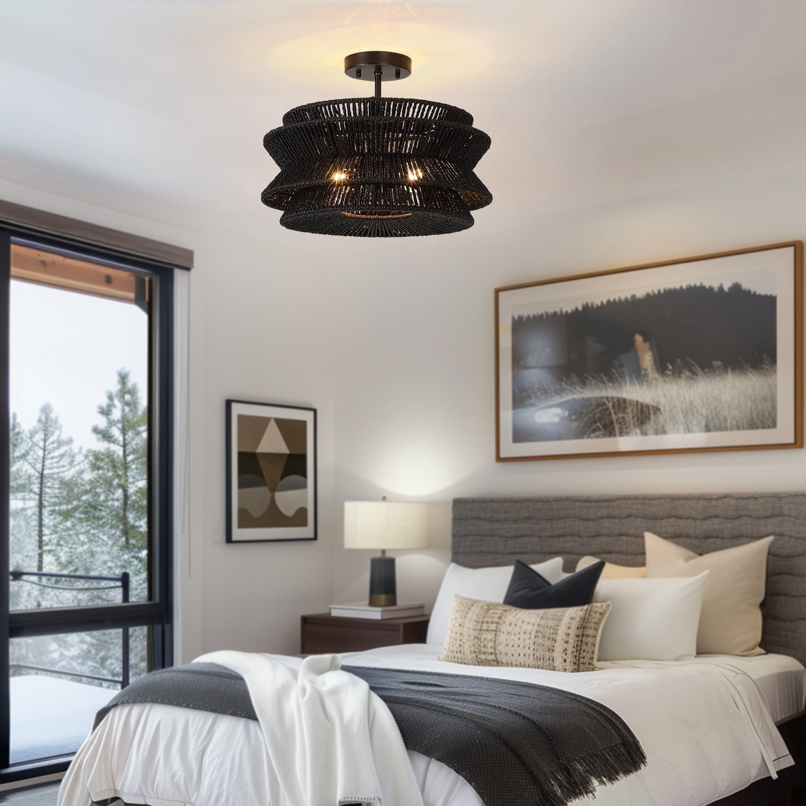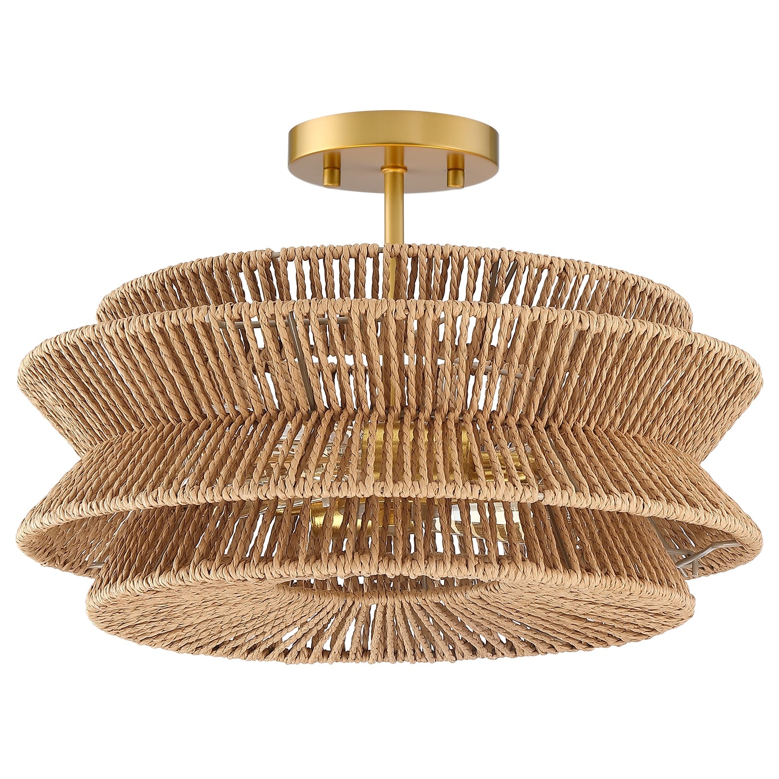 Silvia 2-Light Bohemian Woven Rope Semi-Flush Mount Ceiling Light - 16 in. W