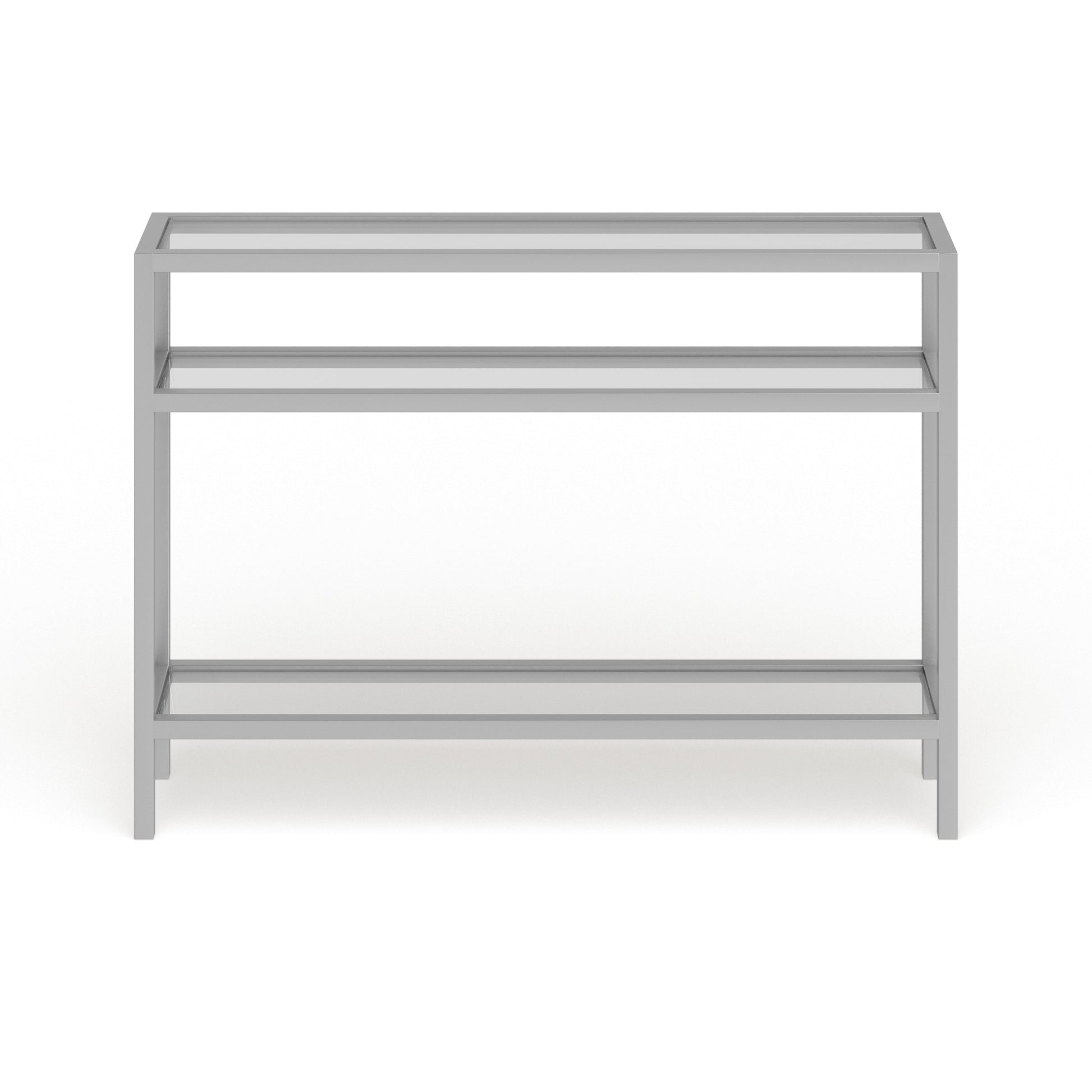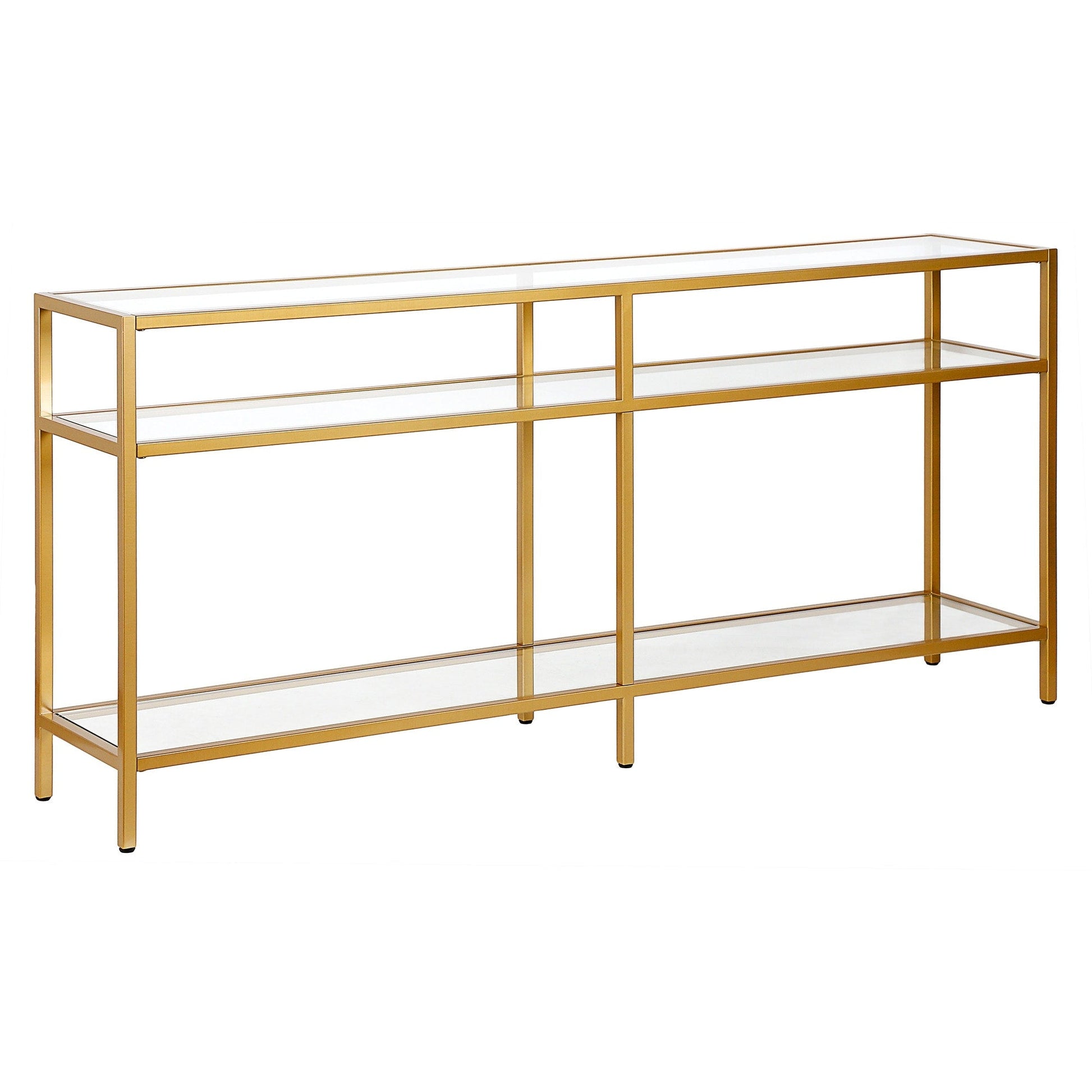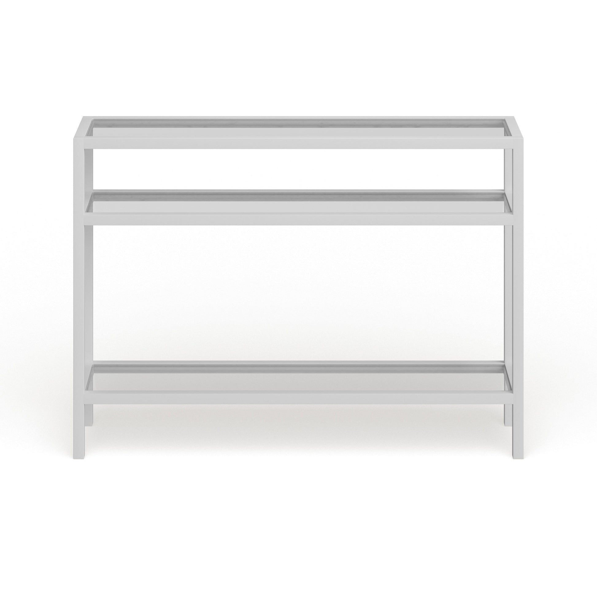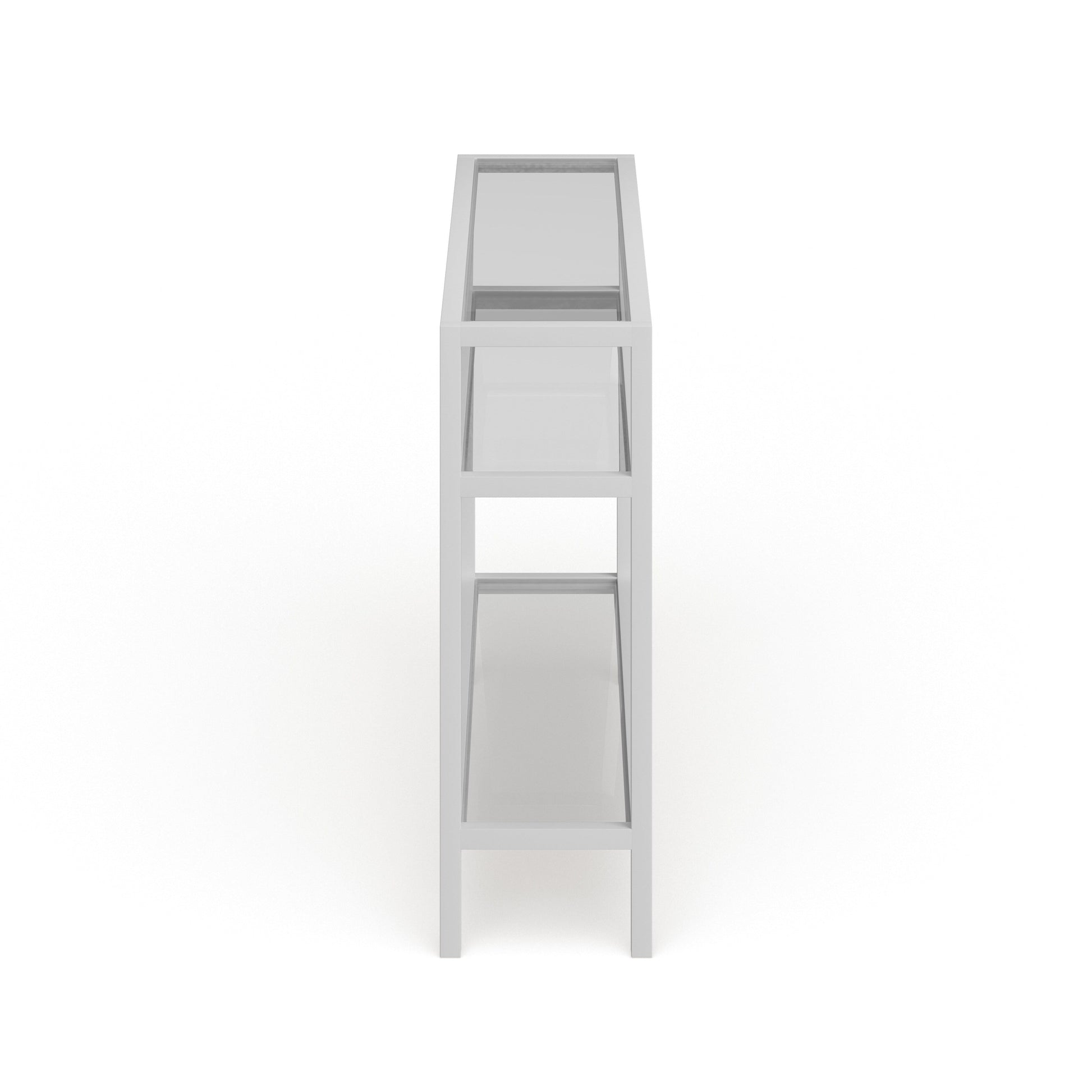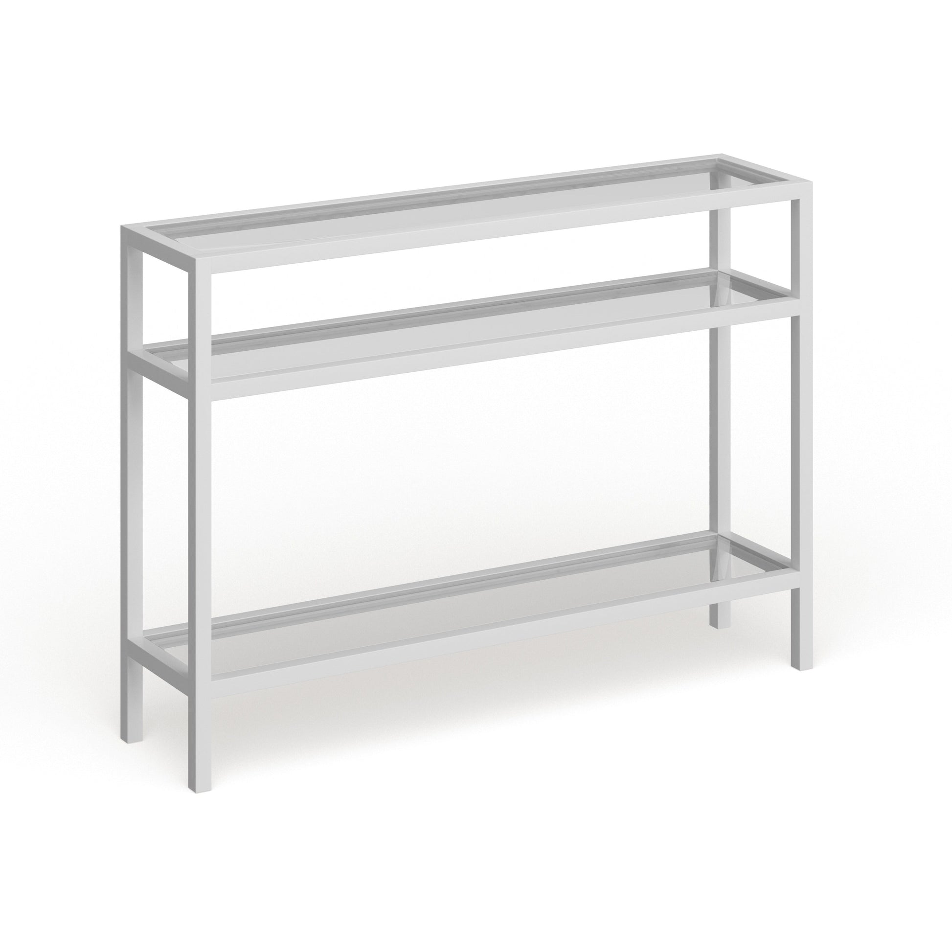Add a touch of elegance to your home with the Sivil Console Table. Its robust steel frame is available in blackened bronze, golden brass, satin nickel, or white finish, making it a perfect fit for any decor. The clear glass tops and shelves add a contemporary touch to your home decor.