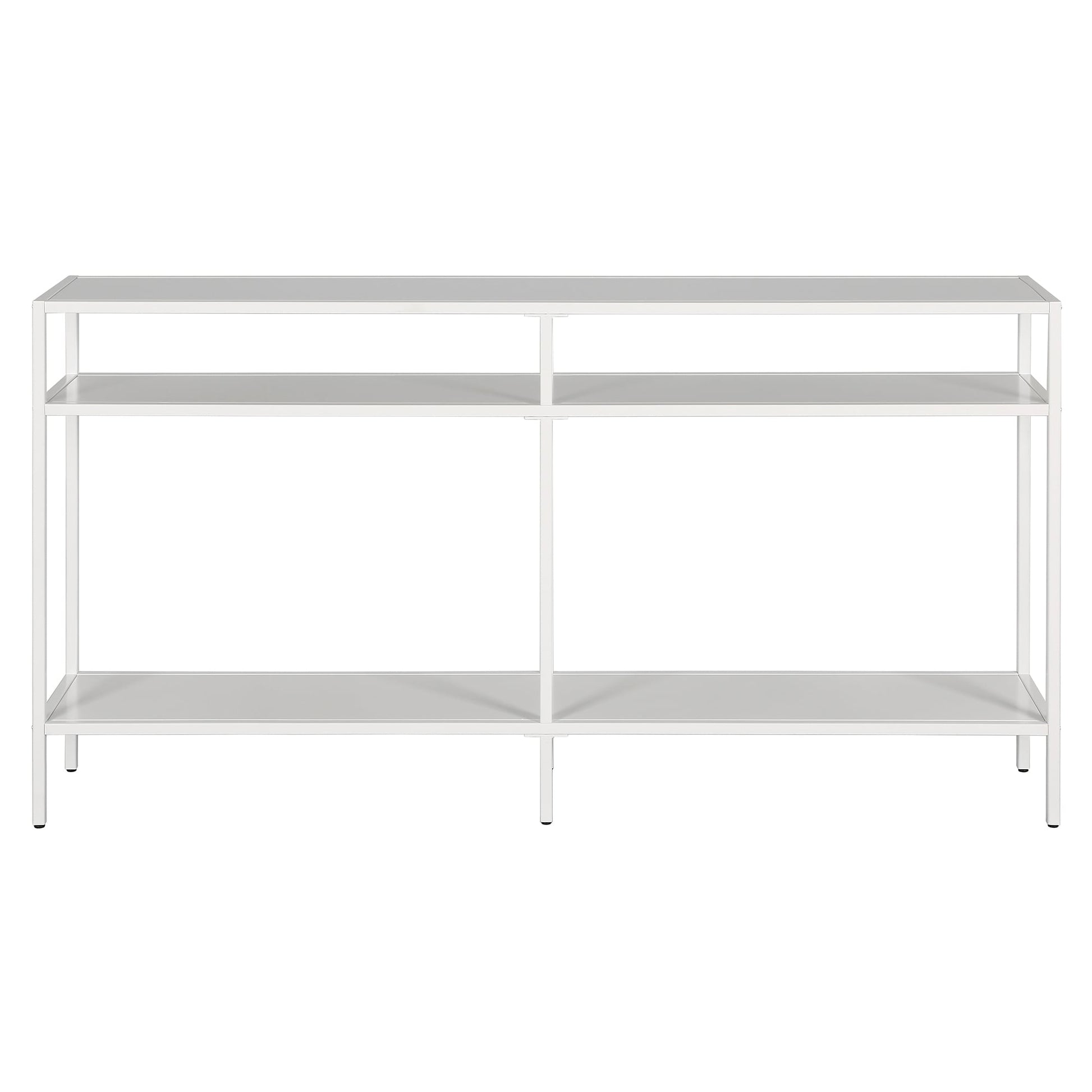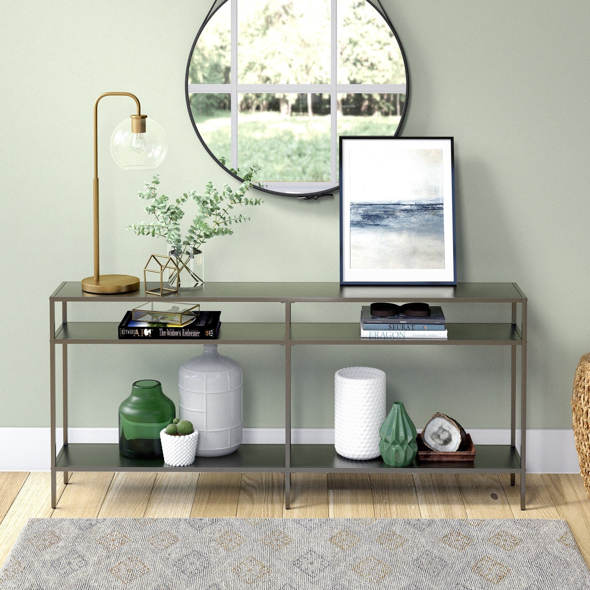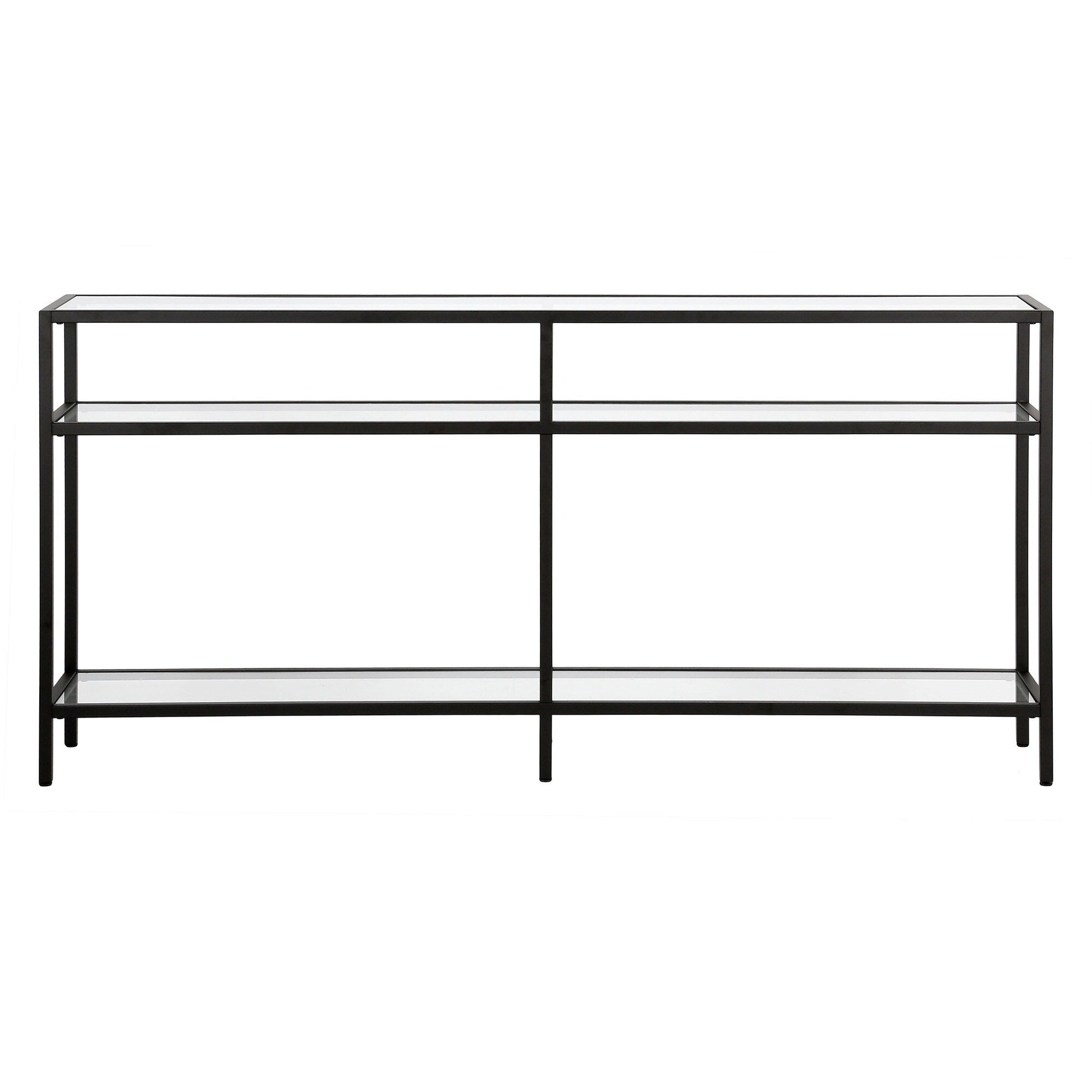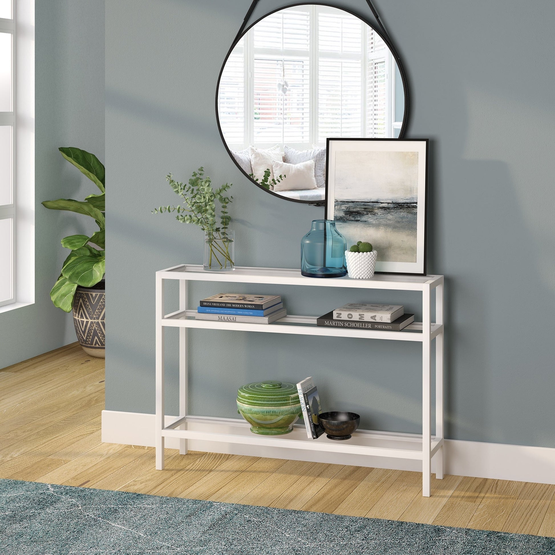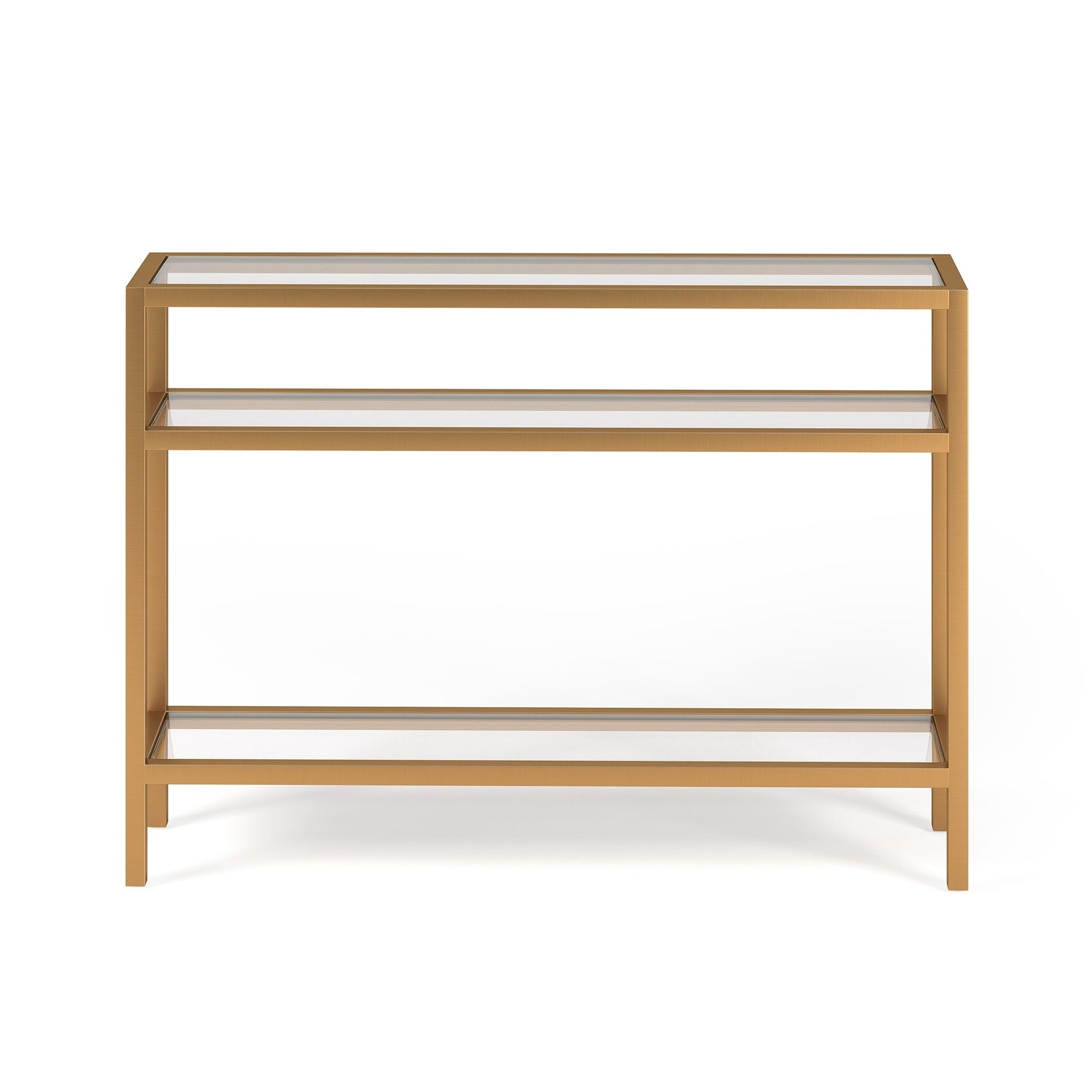 Add a touch of elegance to your home with the Sivil Console Table. Its robust steel frame is available in blackened bronze, golden brass, satin nickel, or white finish, making it a perfect fit for any decor. The clear glass tops and shelves add a contemporary touch to your home decor.