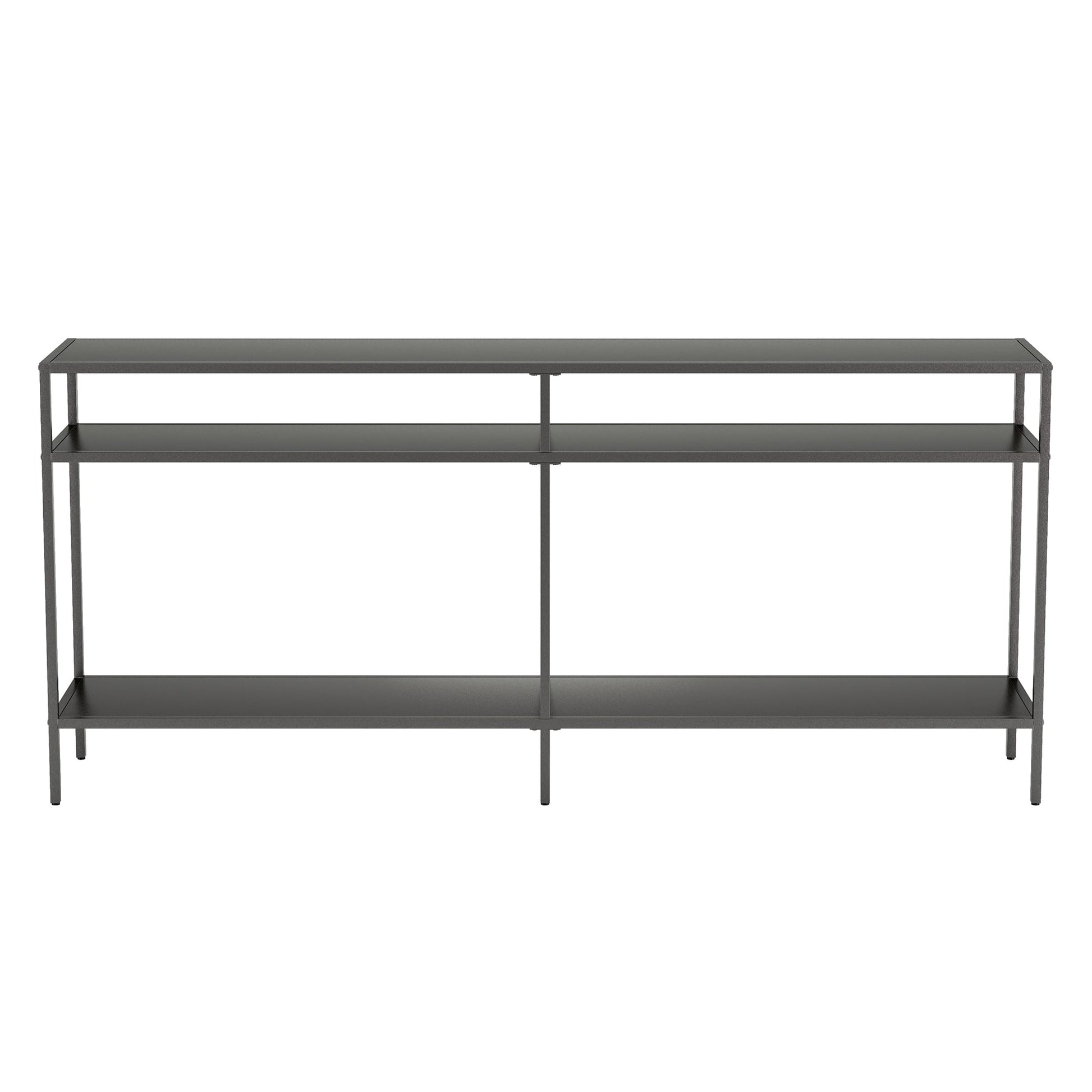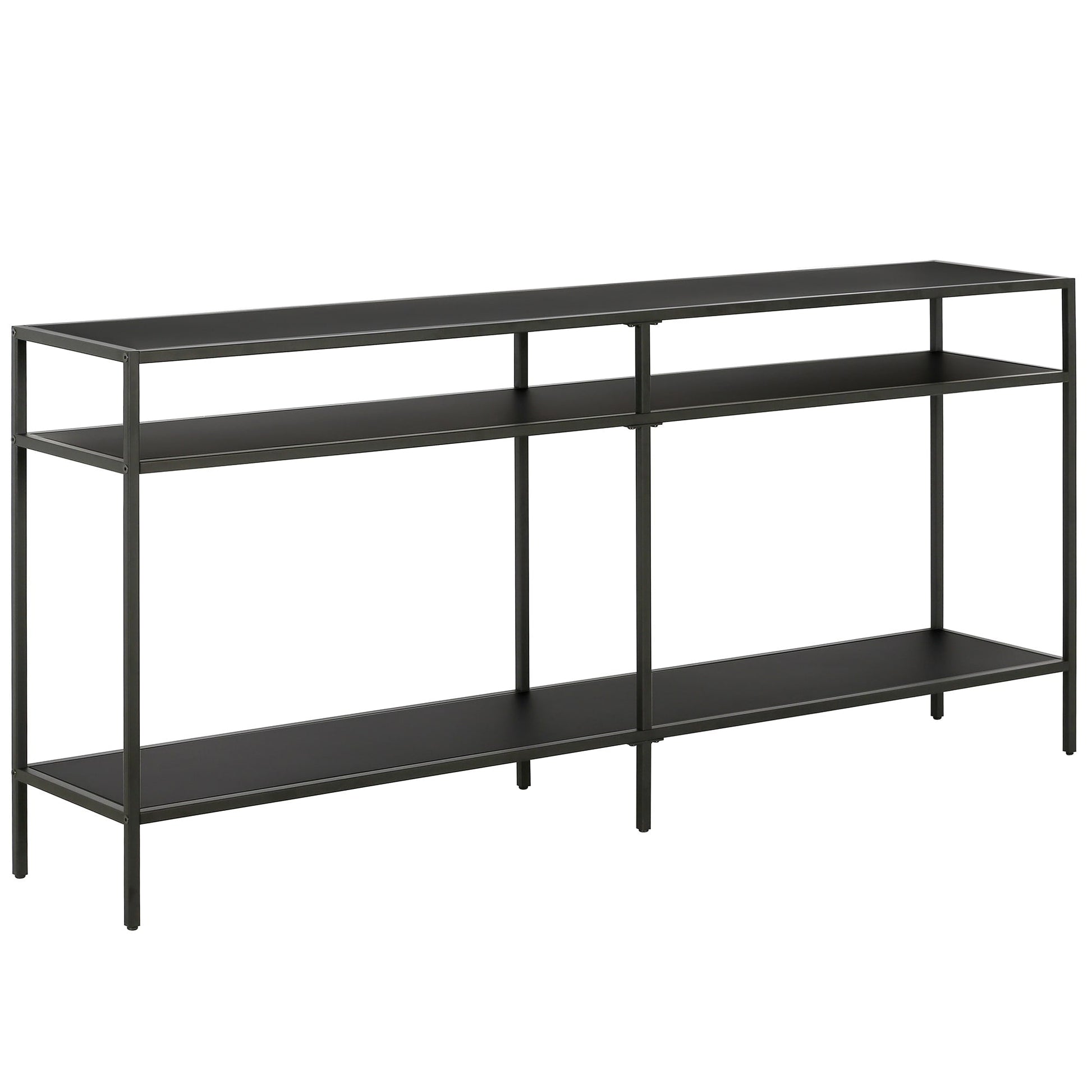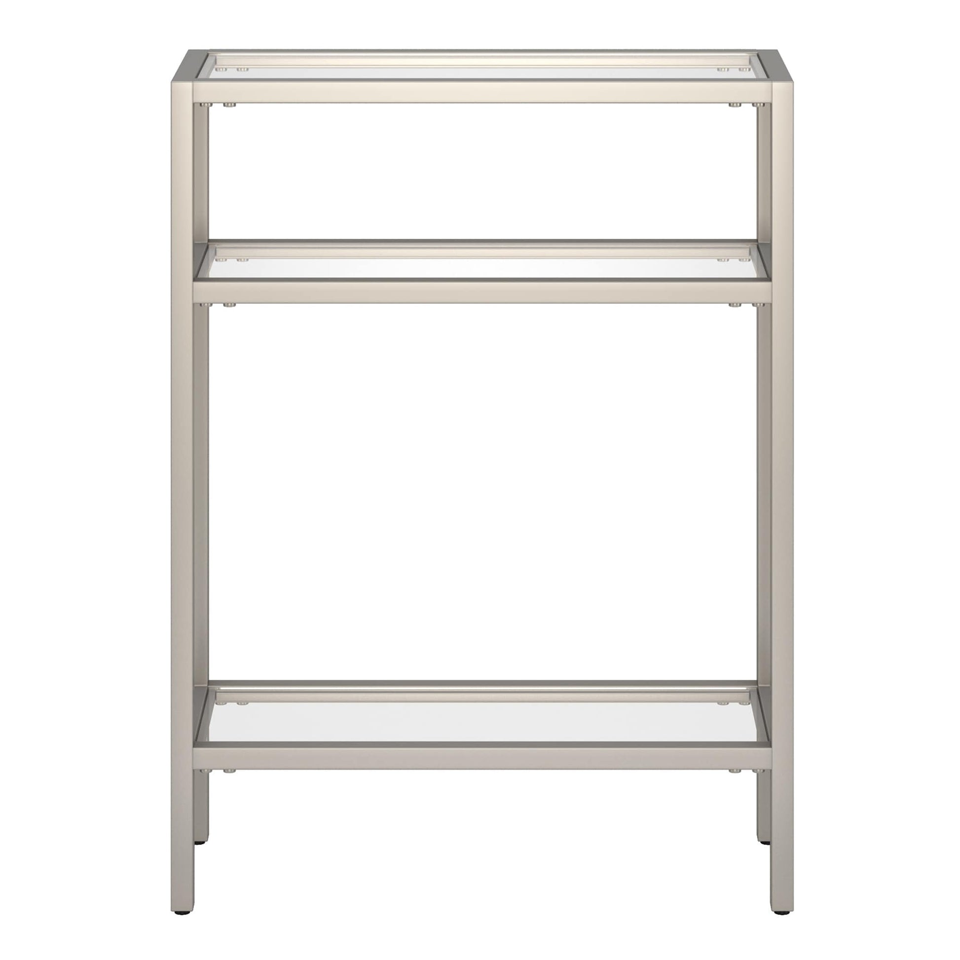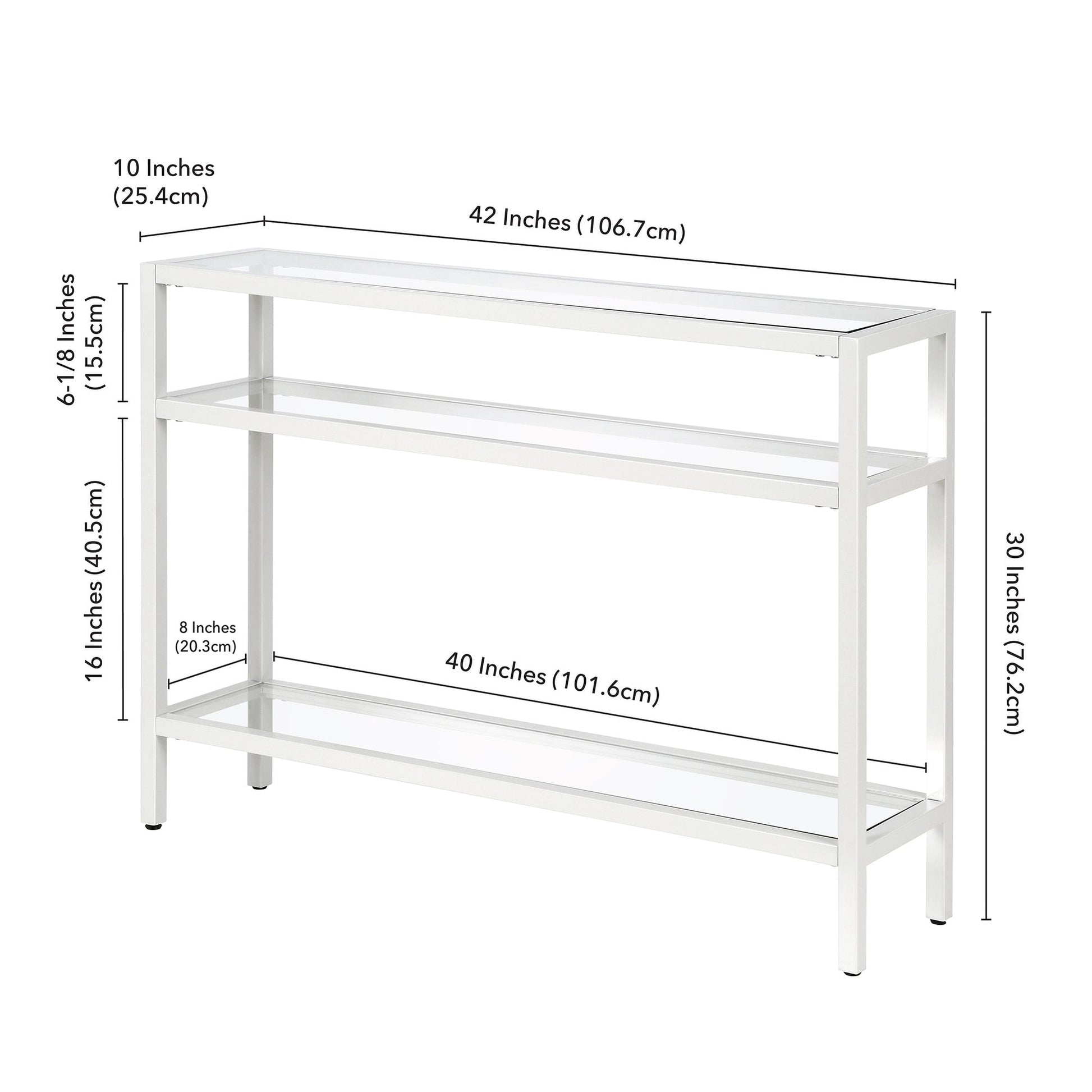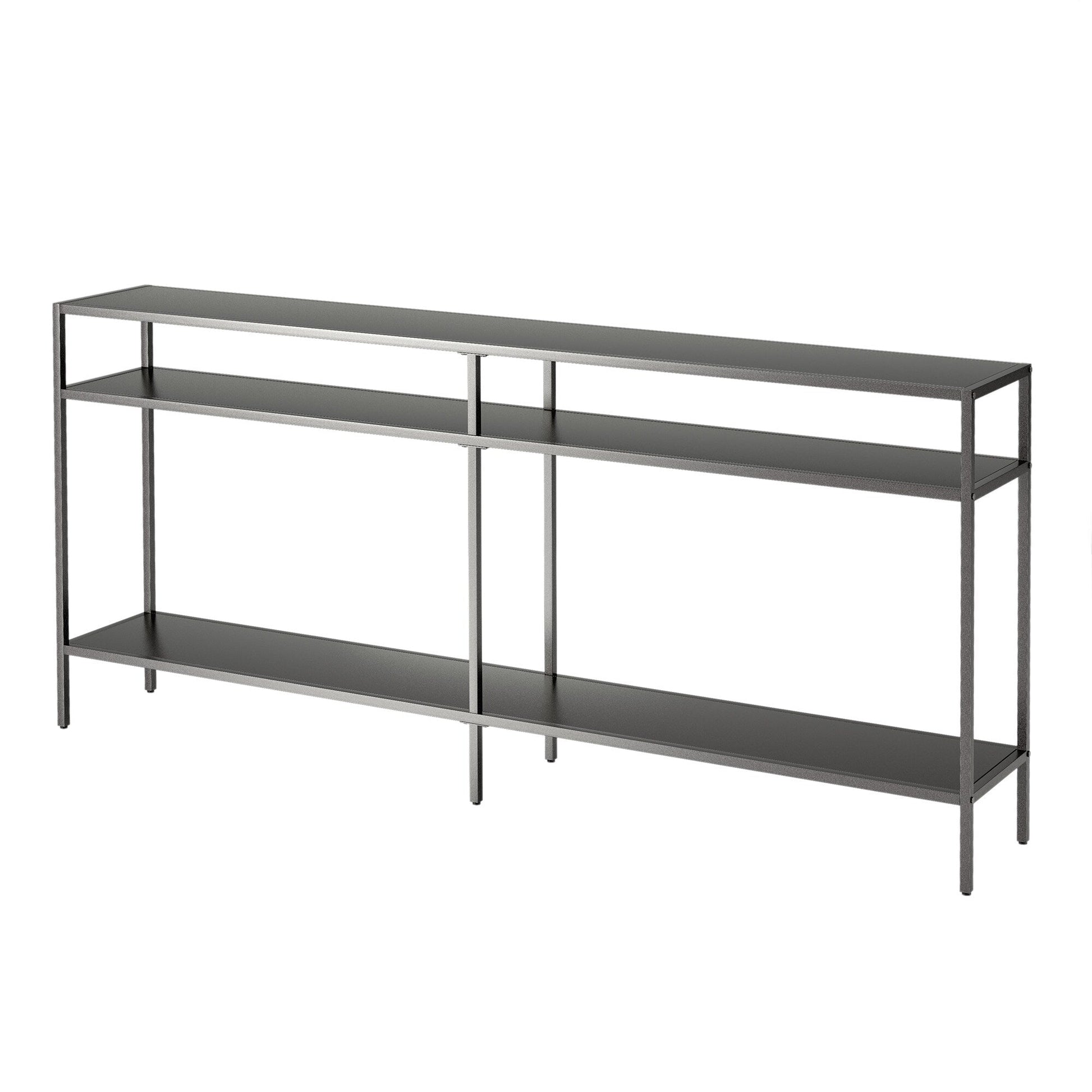 Add a touch of elegance to your home with the Sivil Console Table. Its robust steel frame is available in blackened bronze, golden brass, satin nickel, or white finish, making it a perfect fit for any decor. The clear glass tops and shelves add a contemporary touch to your home decor.