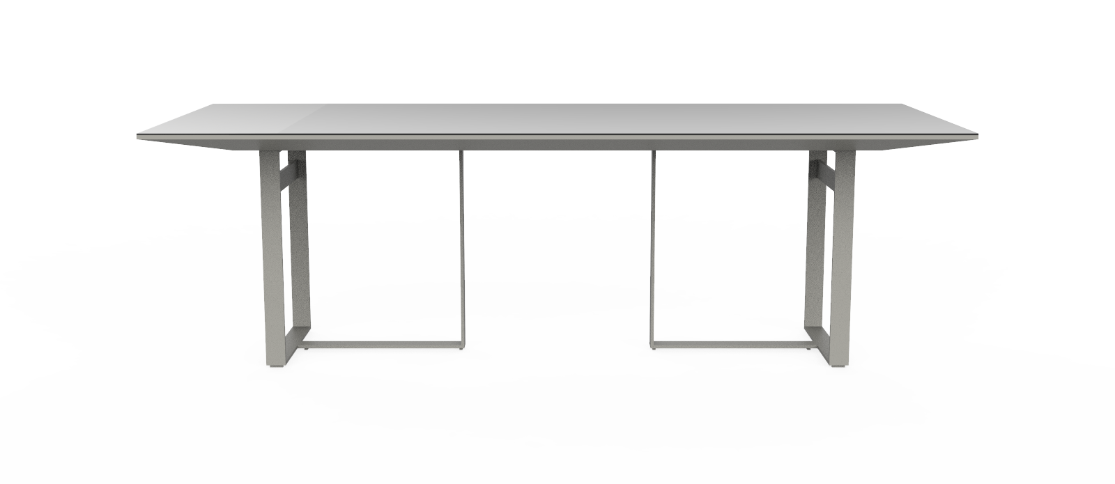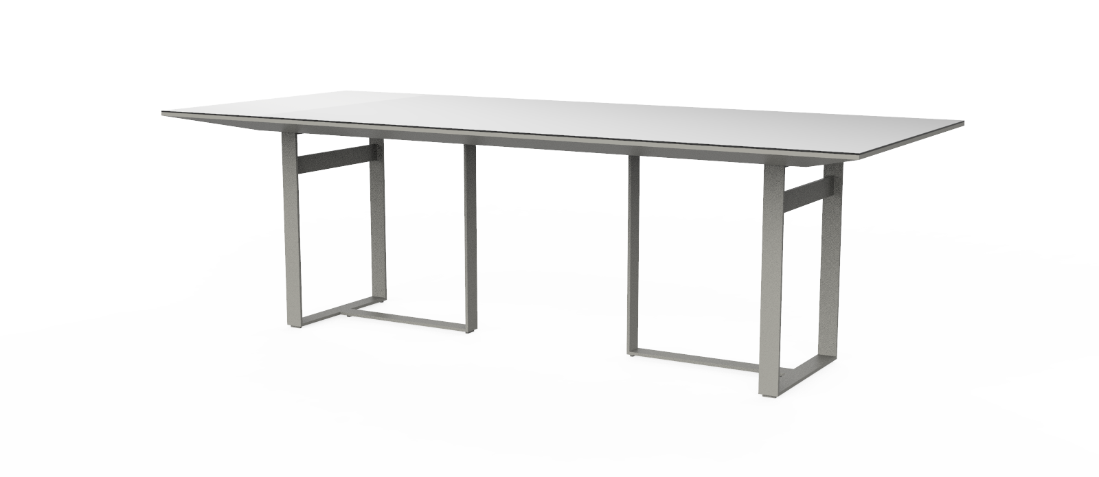 moderne et élégant verre de couleur gris clair sur un plateau gris clair mat chanfreiné forme géométrique base en métal gris clair avec revêtement en poudre peut accueillir jusqu'à 10 personnes |