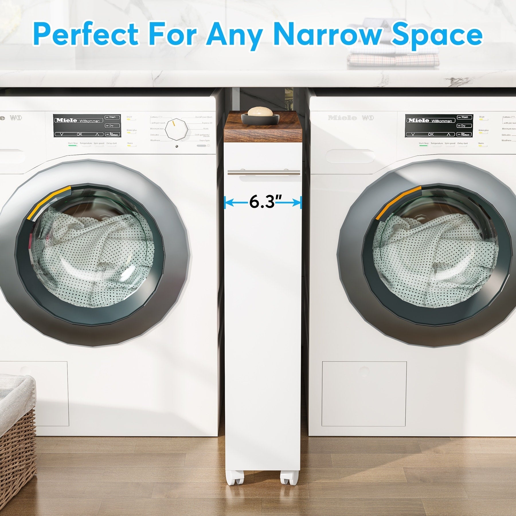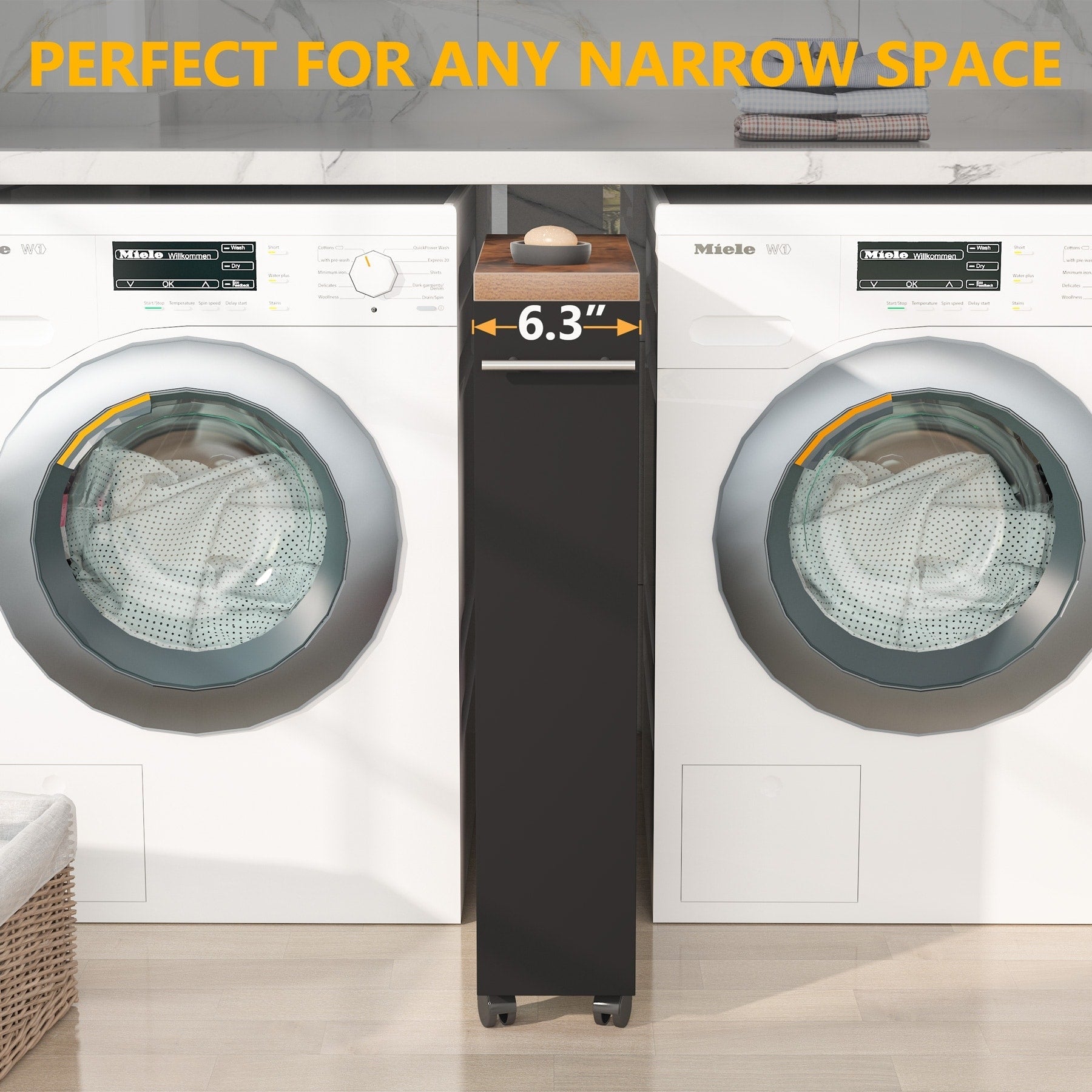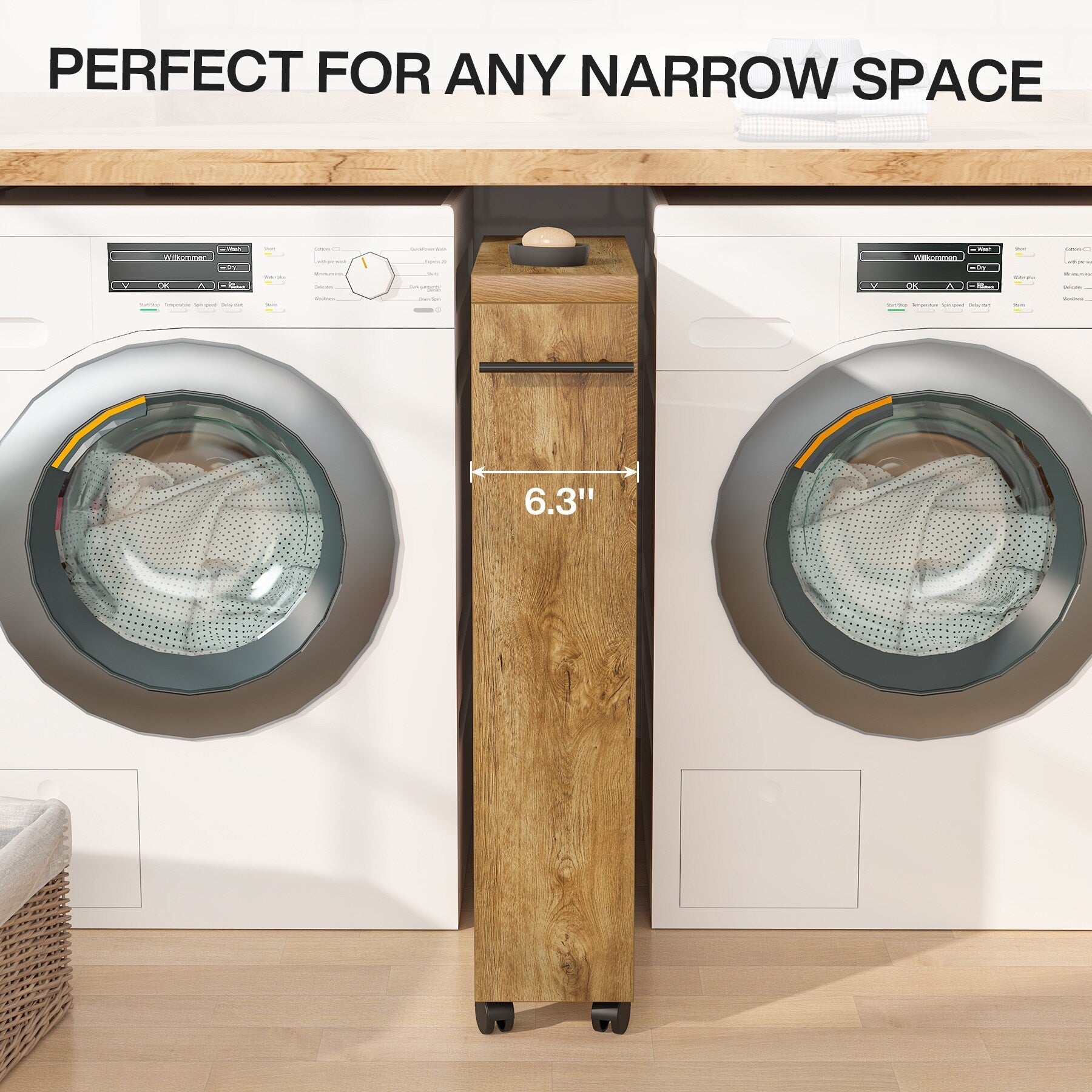 - perfect for the tiny space or any corner of the home, such us between washer and dryer, or between bathroom sink cabinet and the wall, etc.
