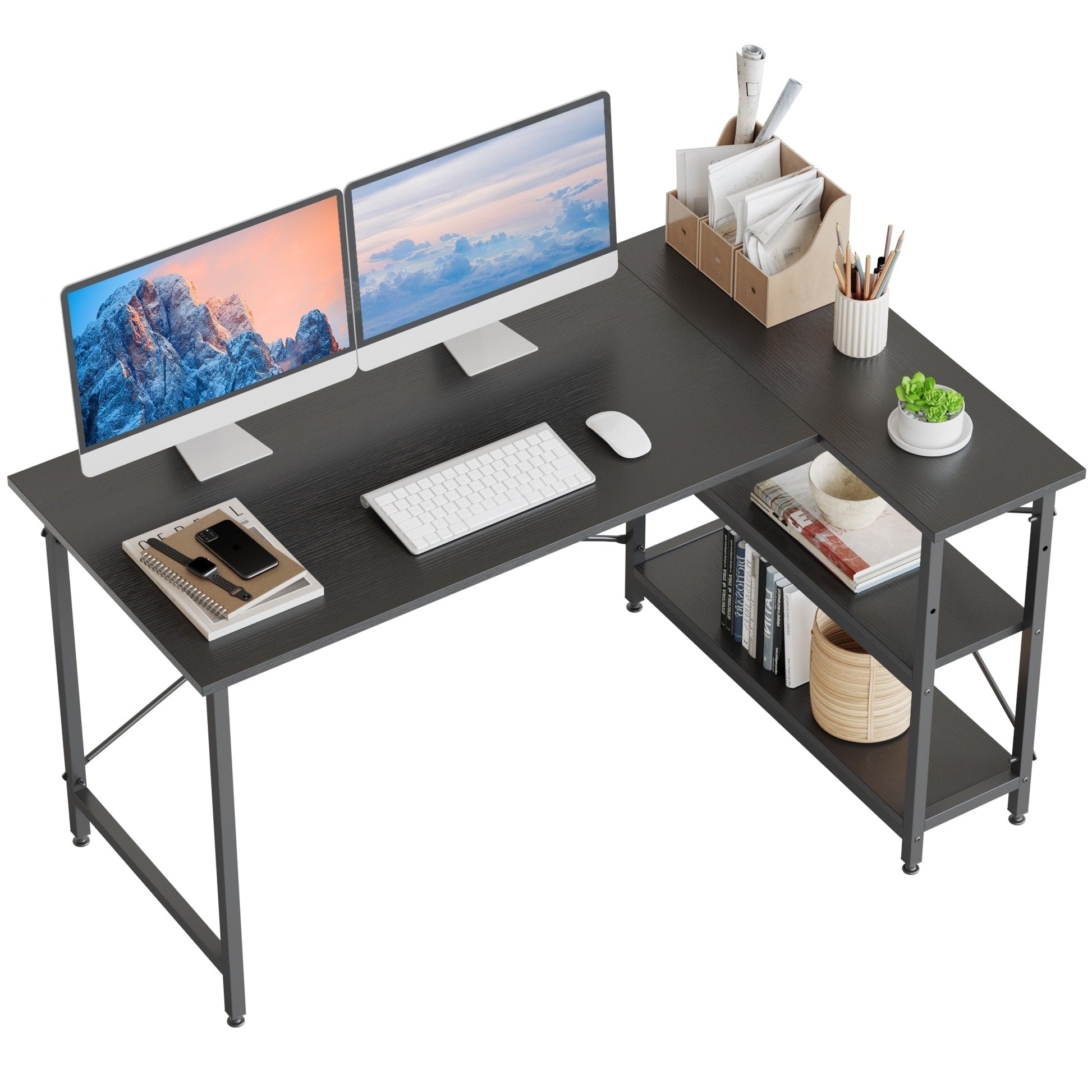 Small L Shaped Desk with Storage Shelves Corner Computer Desk