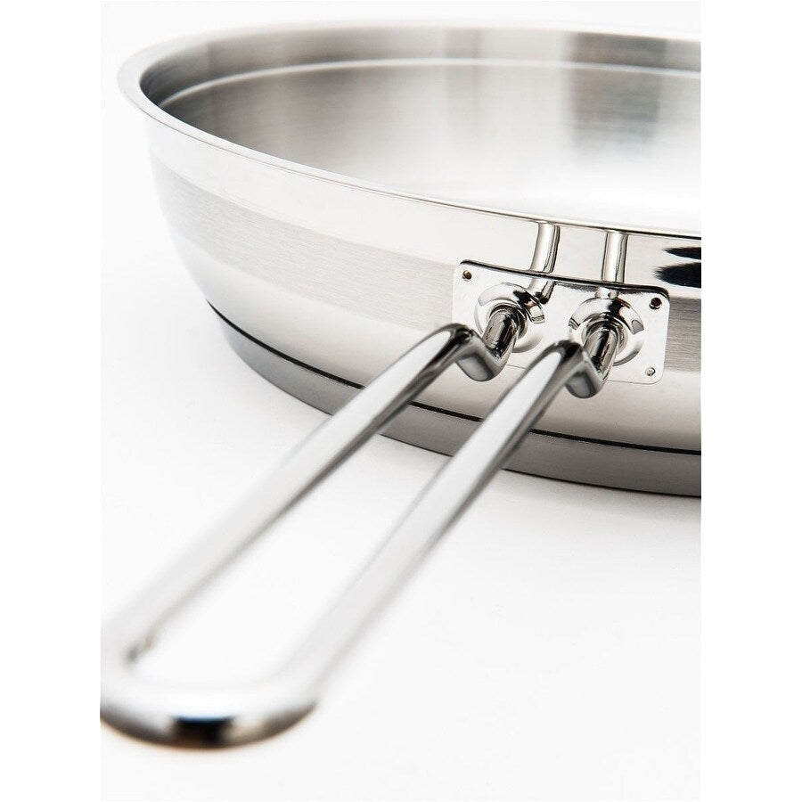 The pan is made of 18/10 stainless steel and has a robust 3-layer capsule base. The capsule base provides fast heating and even heat distribution. Products do not burn and retain their taste. Another essential advantage of the cookware with the multi–layered capsule base is that it has improved heat retention.