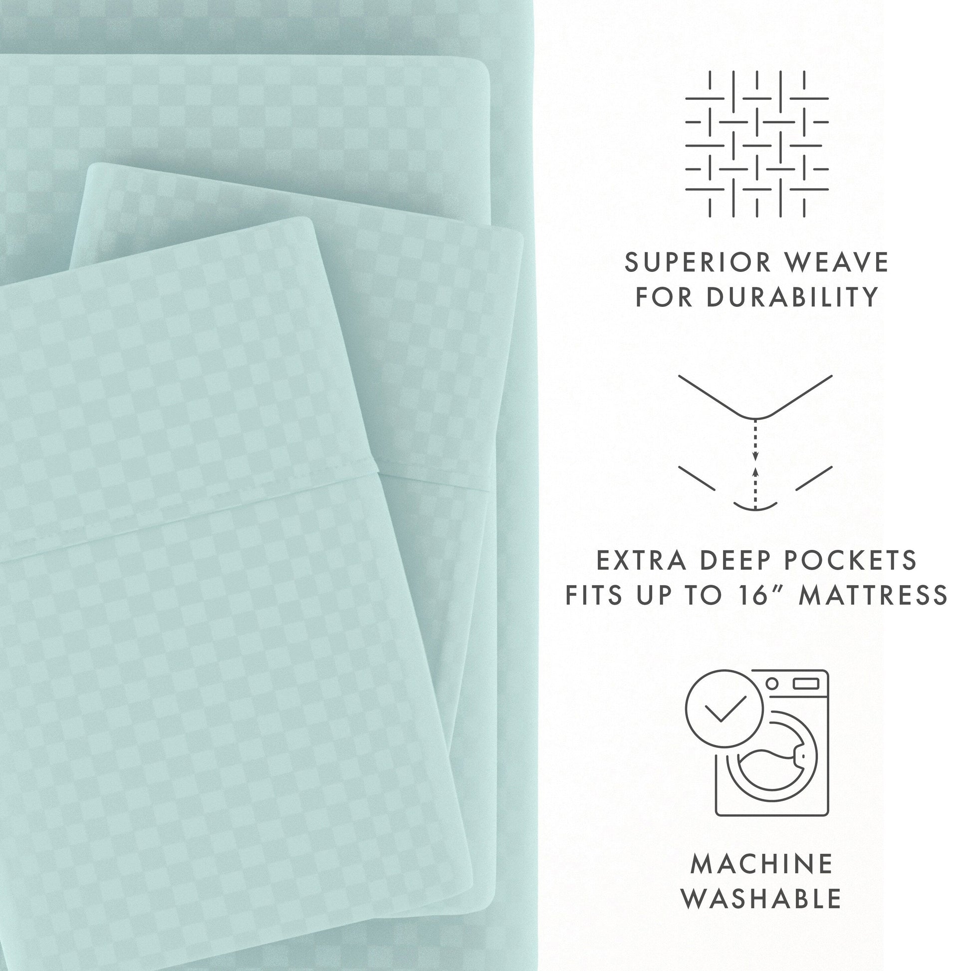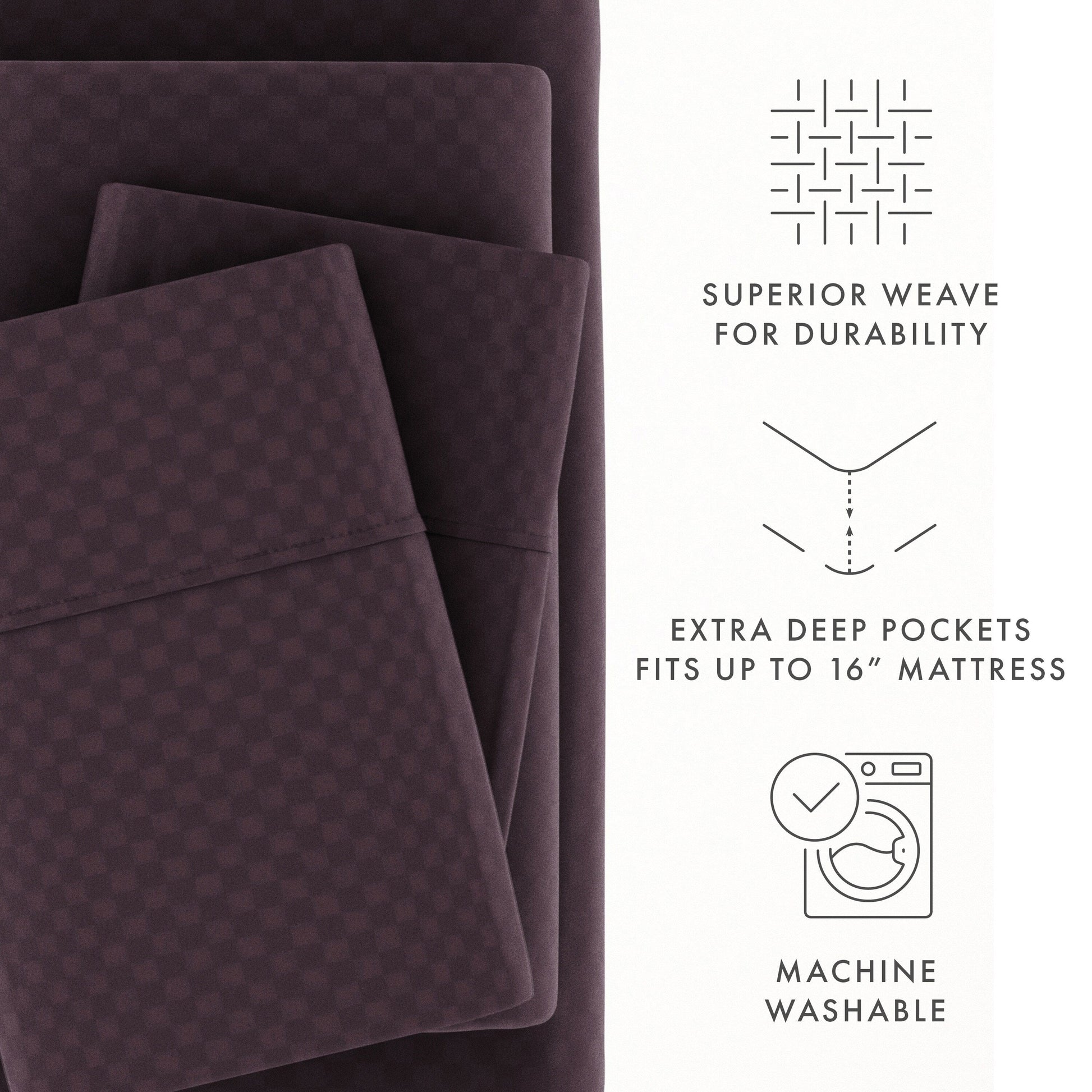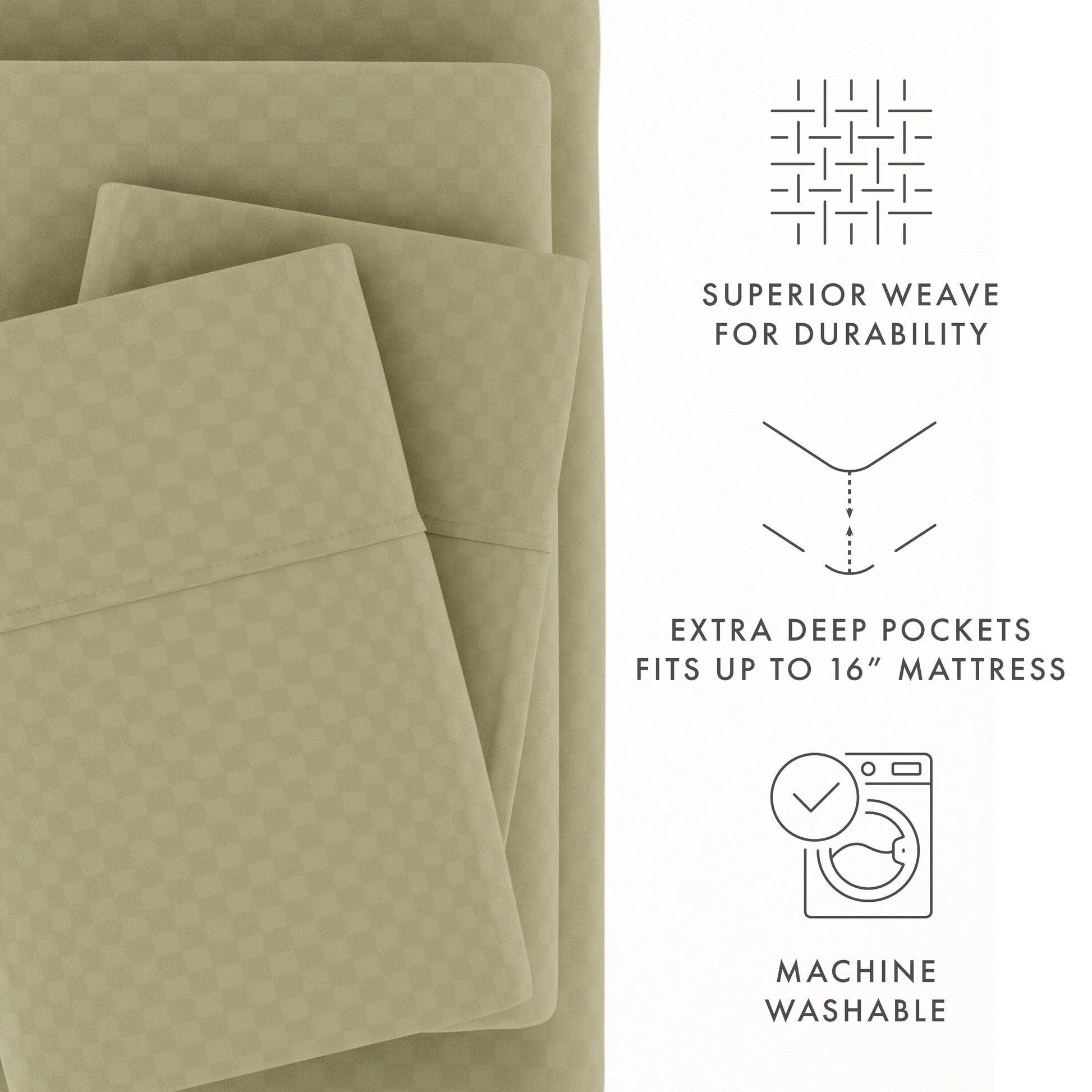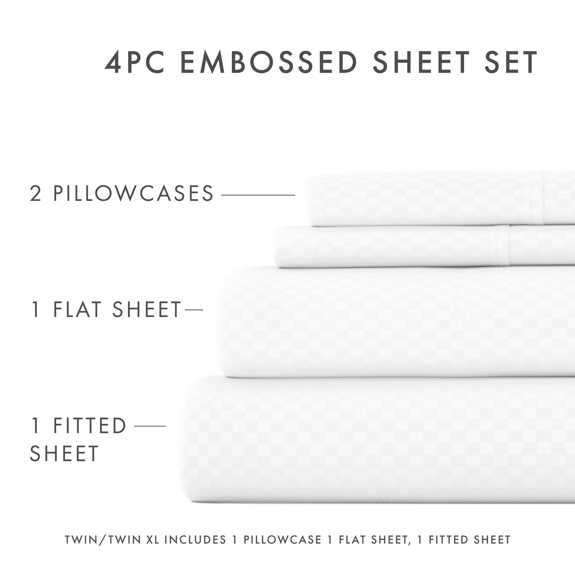 Soft Essentials Double Brushed Embossed Checkered 4PC Deep Pocket Bed Sheet Set