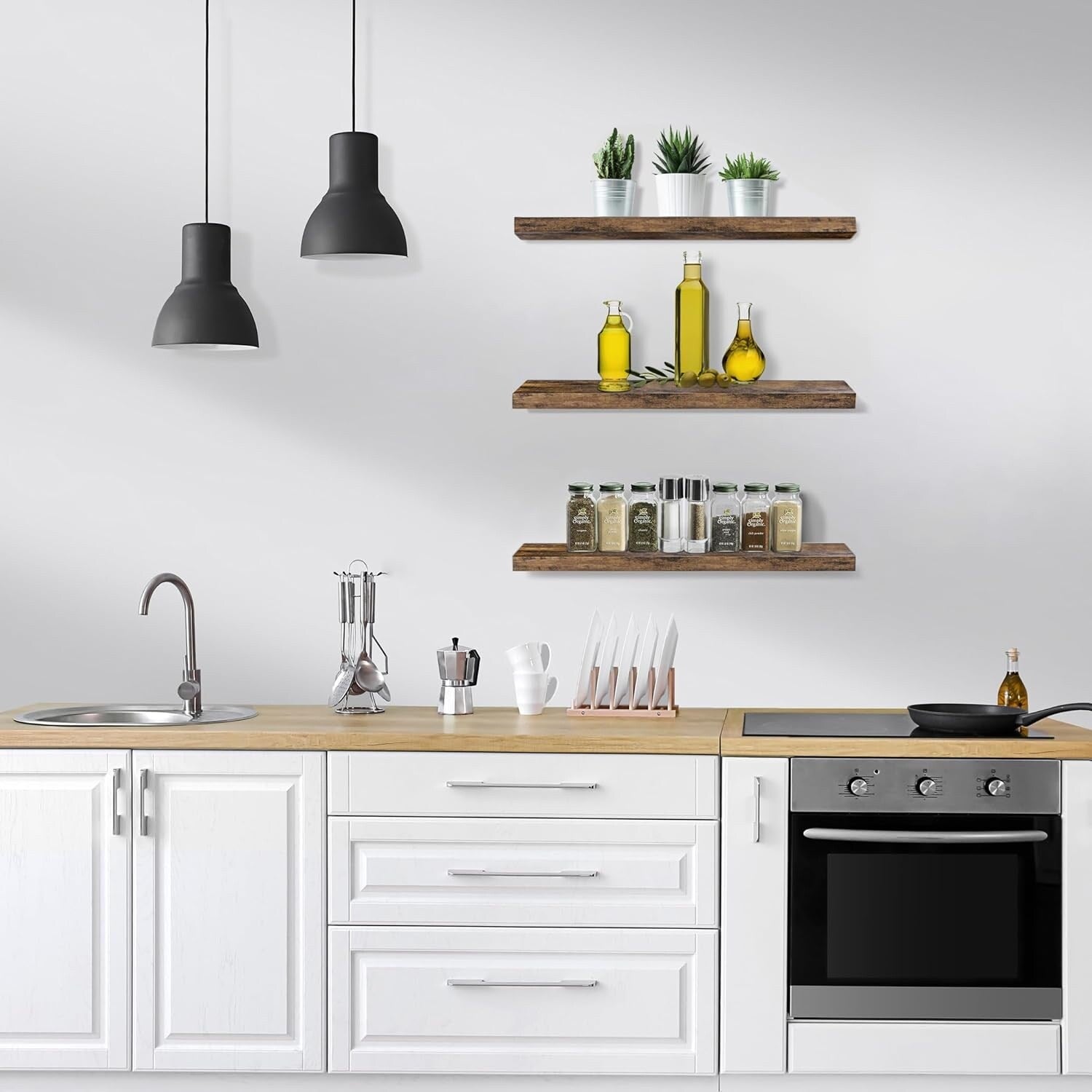 24 Inch Floating Shelves for Wall (Set of 3): Display charming showpieces, trophies, photo frames, decorative items, and other prized possessions while offering functional storage with the wooden floating shelves by Sorbus - Enhance home decor, bathroom decor, living room decor - Fill in empty wall space above a desk, fireplace, entryway, vanity, between windows - Each floating shelf measures approximately 23.75' L X 9.25' W