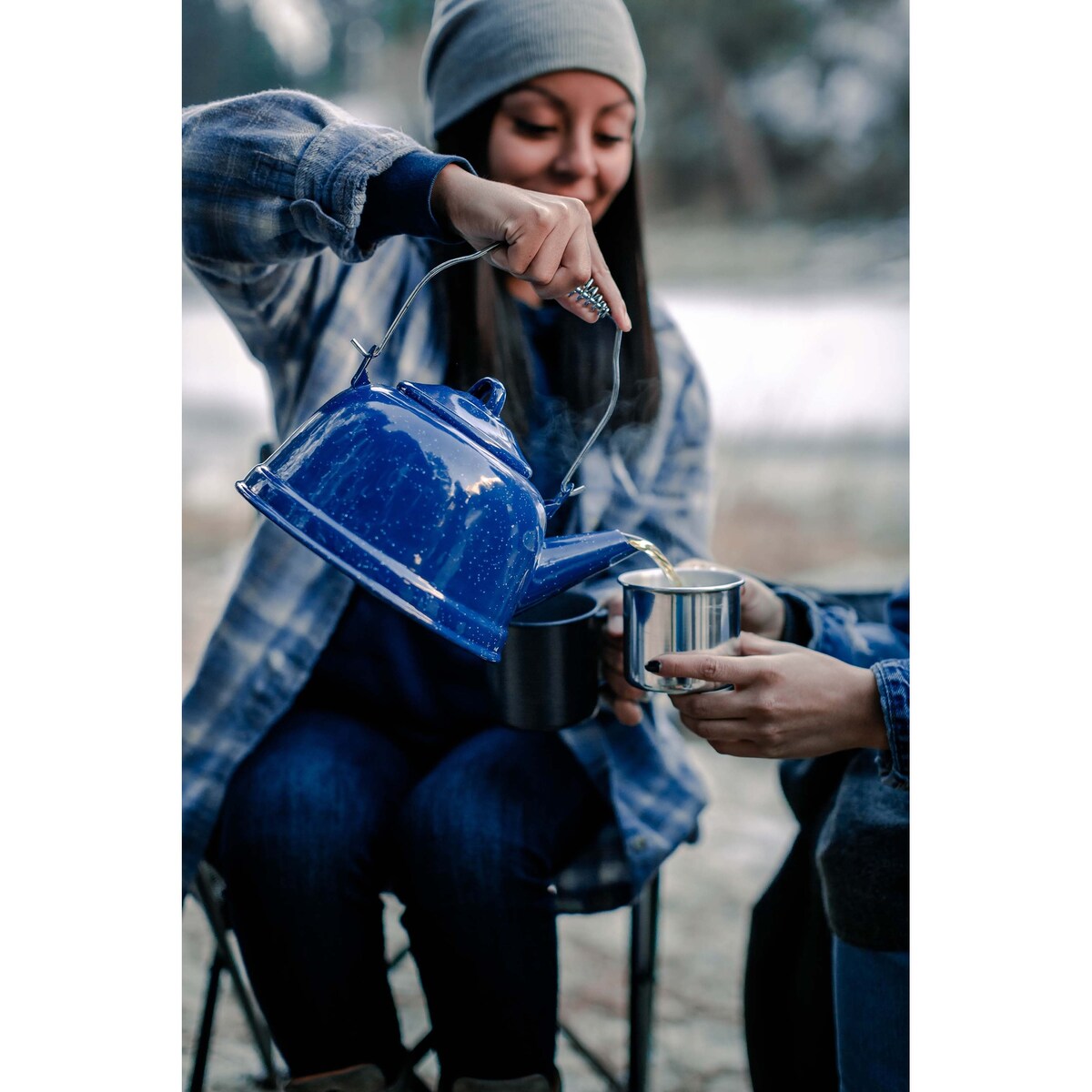 Fancy a spot of tea, or just a few quarts of hot water for cocoa or coffee? Our enamel tea kettle is happy to oblige! With a capacity of 2.6 quarts, our kettle features a wire bail handle with a coil grip for easy, cool pouring. The enamel is kiln-hardened to prevent chips and scratches, allowing you to enjoy hot beverages wherever you are.