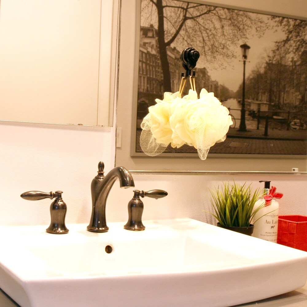 - ADEQUATE STORAGE : this set of 2 hooks are perfect for hanging your bath or shower accessories such as loofah, bath brushes or mesh sponges, or kitchen ustensils such as spoons or hand towels..Perfect for your shower wall, kitchen, bathroom and more, can be sticked even in the damp environment of the bathroom. The maximum load capacity is 2.2 lbs (1kg)