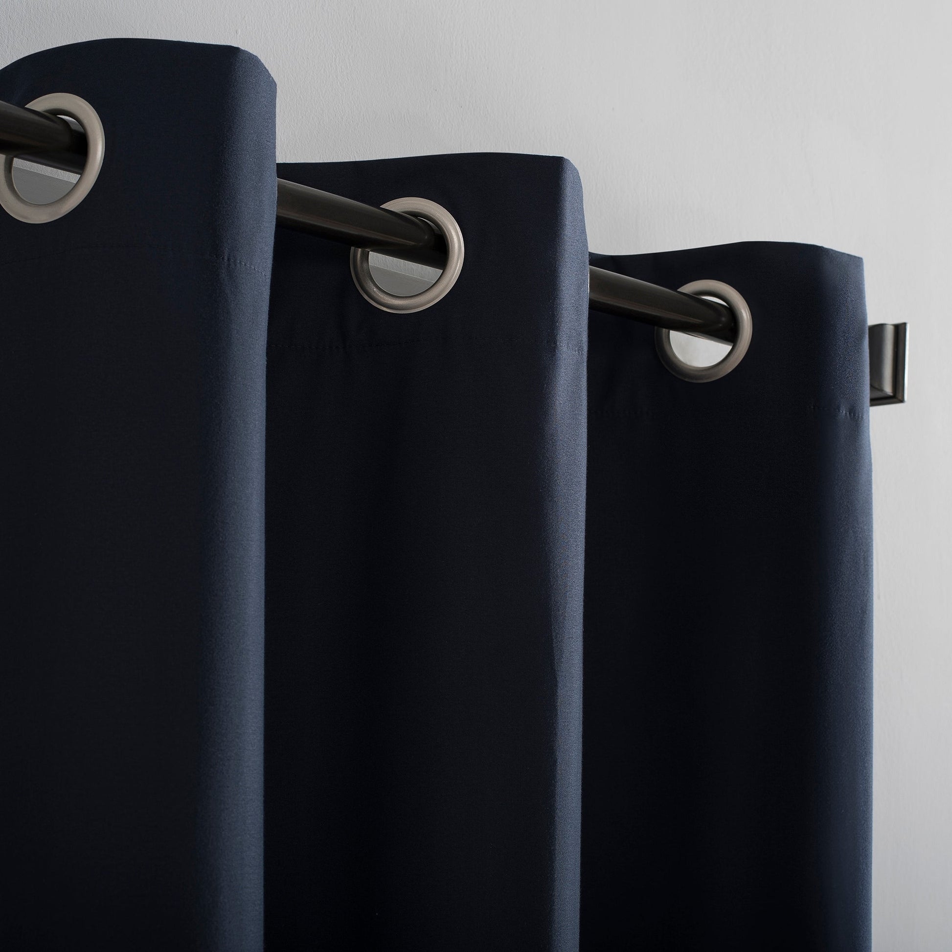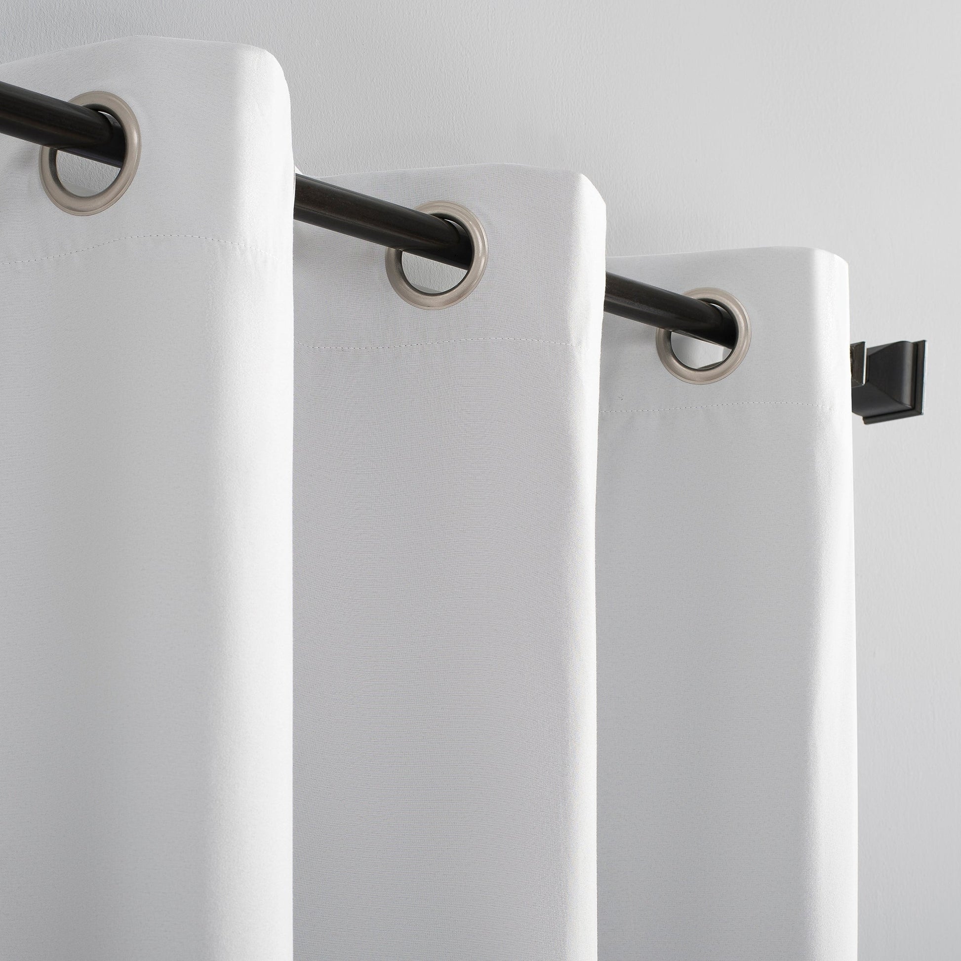 Experience the ultimate in light blocking technology with Sun Zero's Cyrus Thermal Total Blackout Grommet Curtain Panel. This single panel is designed to keep out even the harshest of light while adding energy efficiency to any room of your home. With Sun Zero's Total Blackout technology, this panel is laboratory tested to block out 100% of outside light, reduce noise by up to 35%, and decrease energy lost through your windows by up to 35%. Additionally, thermal insulation helps keep summer heat and winter chill out of your home, optimizing comfort. The built-in metal grommets fit curtain rods up to 1.5' in diameter, making for easy installation. Perfect for entertainment rooms, bedrooms, or any room in need of light control and privacy.
