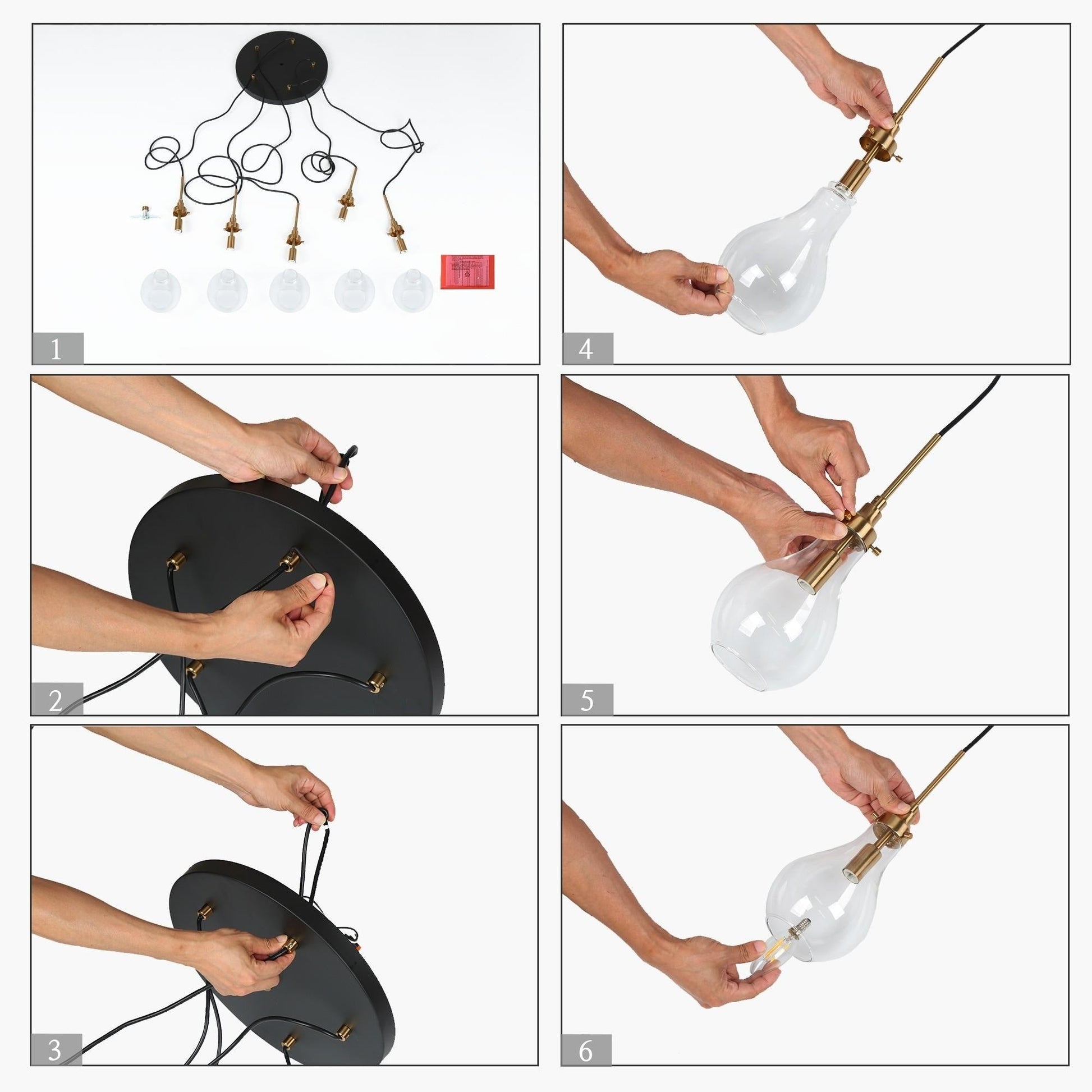 - Suspended by adjustable black wire cable