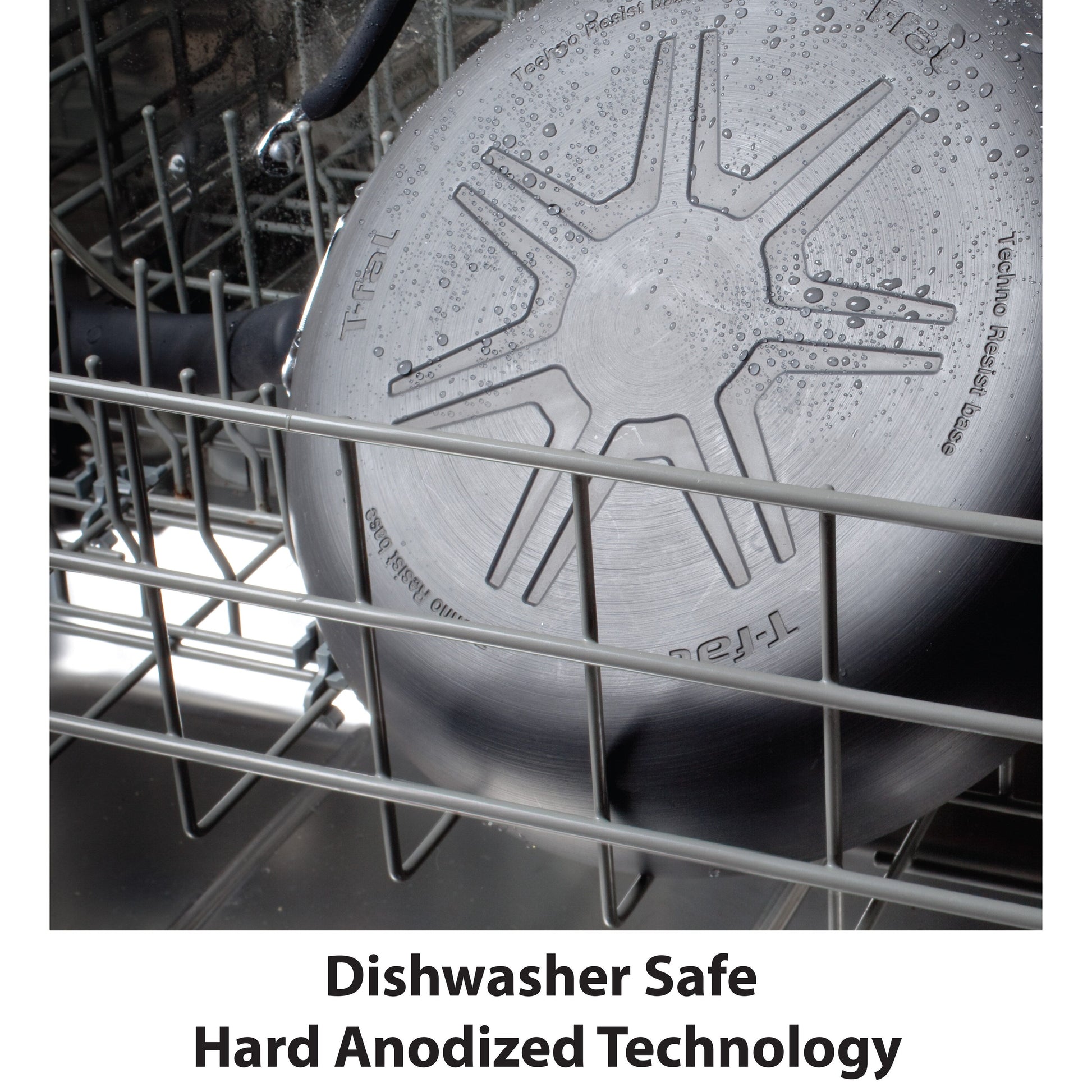 Now with Titanium reinforced nonstick, T-fal Ultimate Hard Anodized range is even stronger and lasts even longer. The unique T-fal Thermo-Spot heat indicator shows when T-fal pan is perfectly preheated to seal in the flavor of your food. The revolutionary exterior coating allows daily dishwasher use while maintaining T-fal Ultimate's hard anodized satin grey appearance.Hard anodized aluminum construction for durabilityUnique Thermo-Spot heat indicator for proper preheatingHard Titanium nonstick interior for the ultimate and longest lasting performanceRiveted silicone handles for safety and comfortTechnoResist Anti-warp Base; Oven safe to 400F; Lifetime Limited WarrantyDishwasher safe for more convenienceT-fal's Heat mastery system combines our superior non-stick coating, with an even heat base and Thermo-Spot technology, providing perfect cooking results every time!