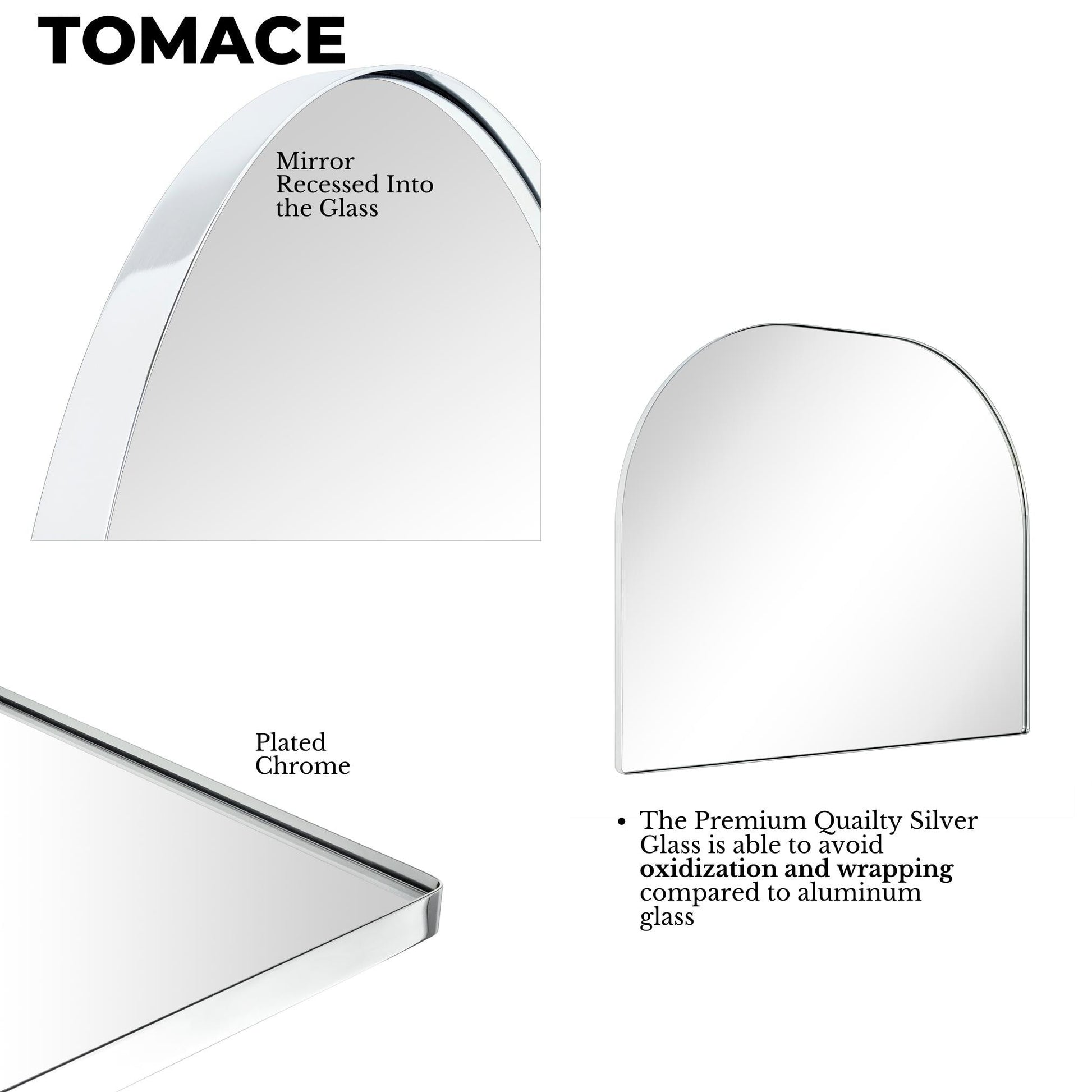 - Seamless Stainless Steel Frame: This arched bathroom mirror uses preminum quality stainless steel material and 9mm TSCA certified MDF backing to avoid both rust and corrosion when wall mounted, making it safe for bathroom use as well.