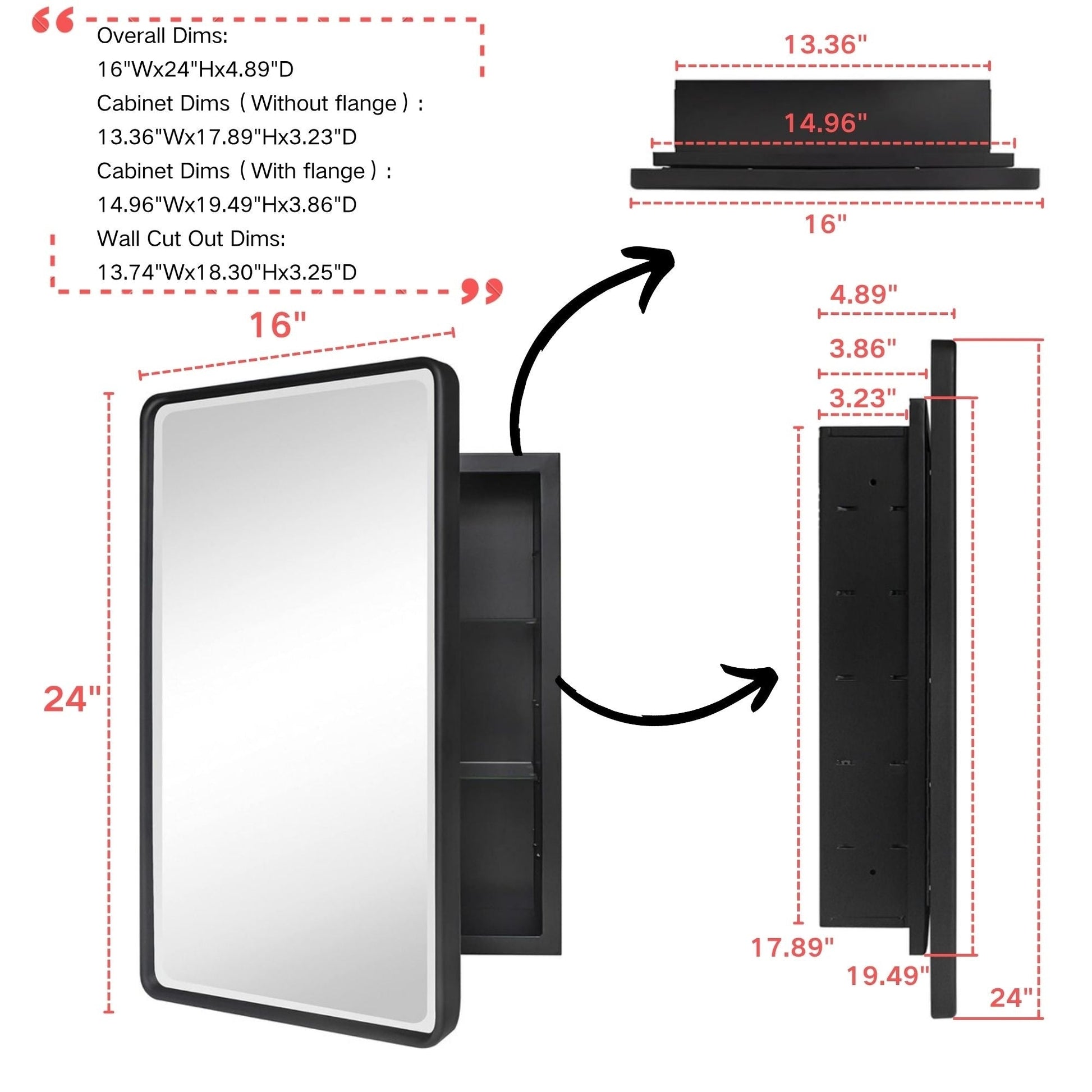 TEHOME Farmhouse Recessed Metal Bathroom Medicine Cabinets with Mirror