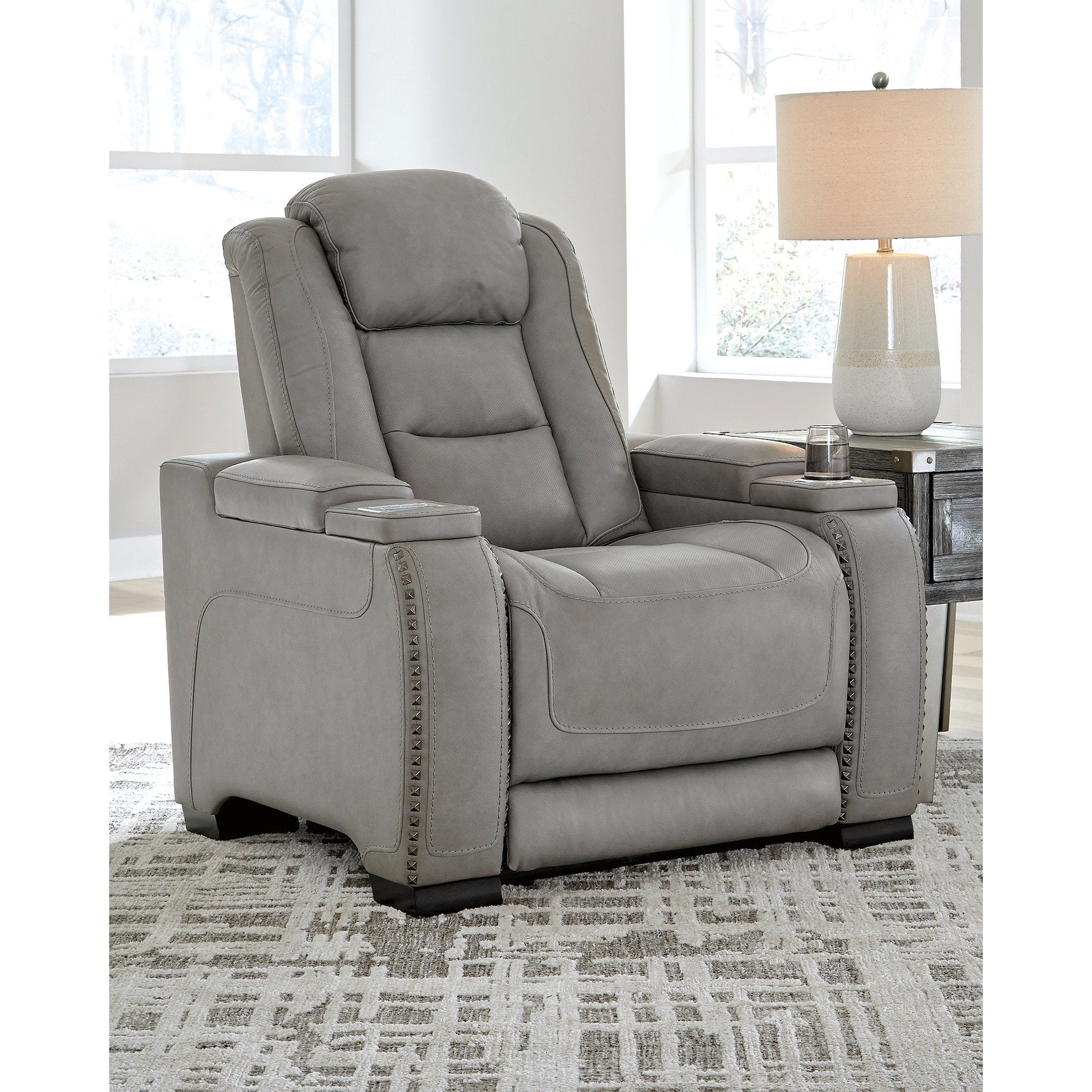 The Man-Den Contemporary Power Recliner with Adjustable Headrest, Dove Gray