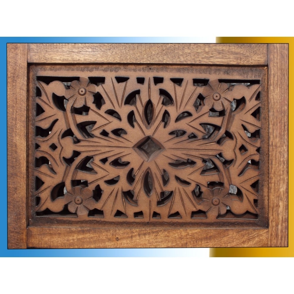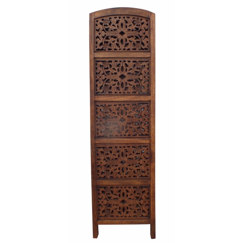 This Dark Brown 4 Panel Wooden Partition Screen Room Divider Made From Quality Mango Wood With Beautiful Carvings Cutouts That Gives An Elegant And Traditional Look To Your Living Room. The Unit Consists Of 4 Panels And Each Panel Comes In A Standard Size. Intricately Carved On Both Sides Making It Fully Reversible And Highly Versatile In Use. It Can Be Used To Create A Private Area, Or Divide In A Room.
