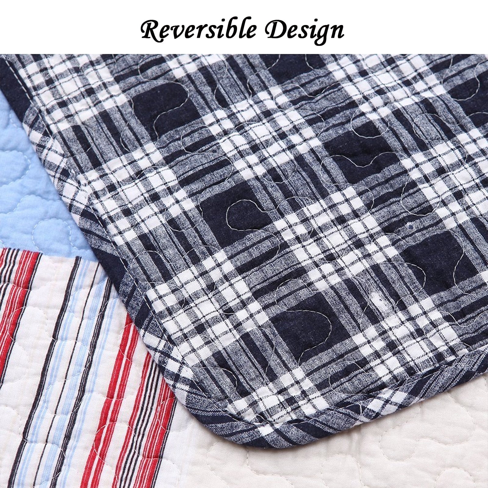 Thomas Firetruck Blue Red Plaid Patchwork Queen Quilt Bedding Set