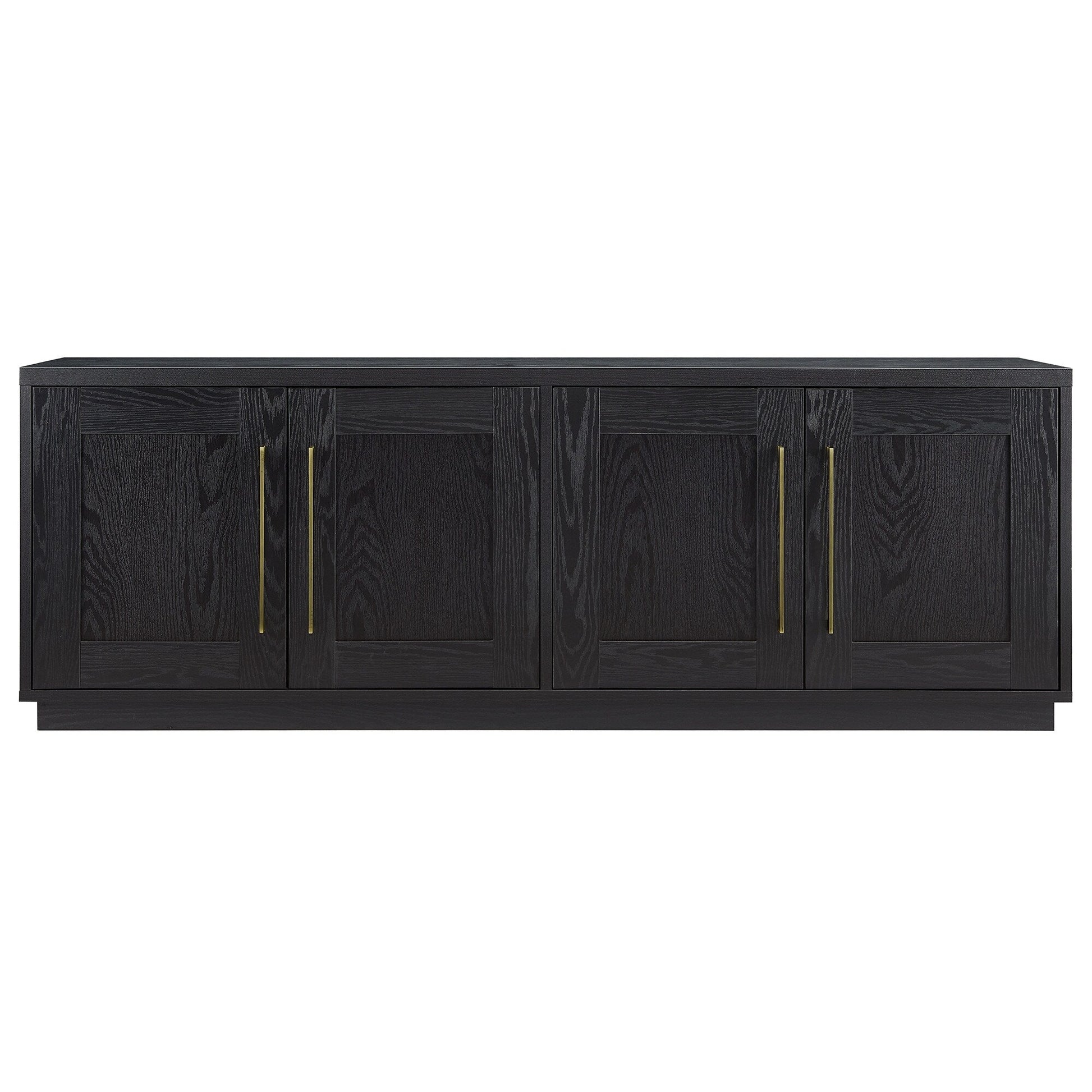 - Features four doors with enclosed cabinets and 4 shelves for ample storage.