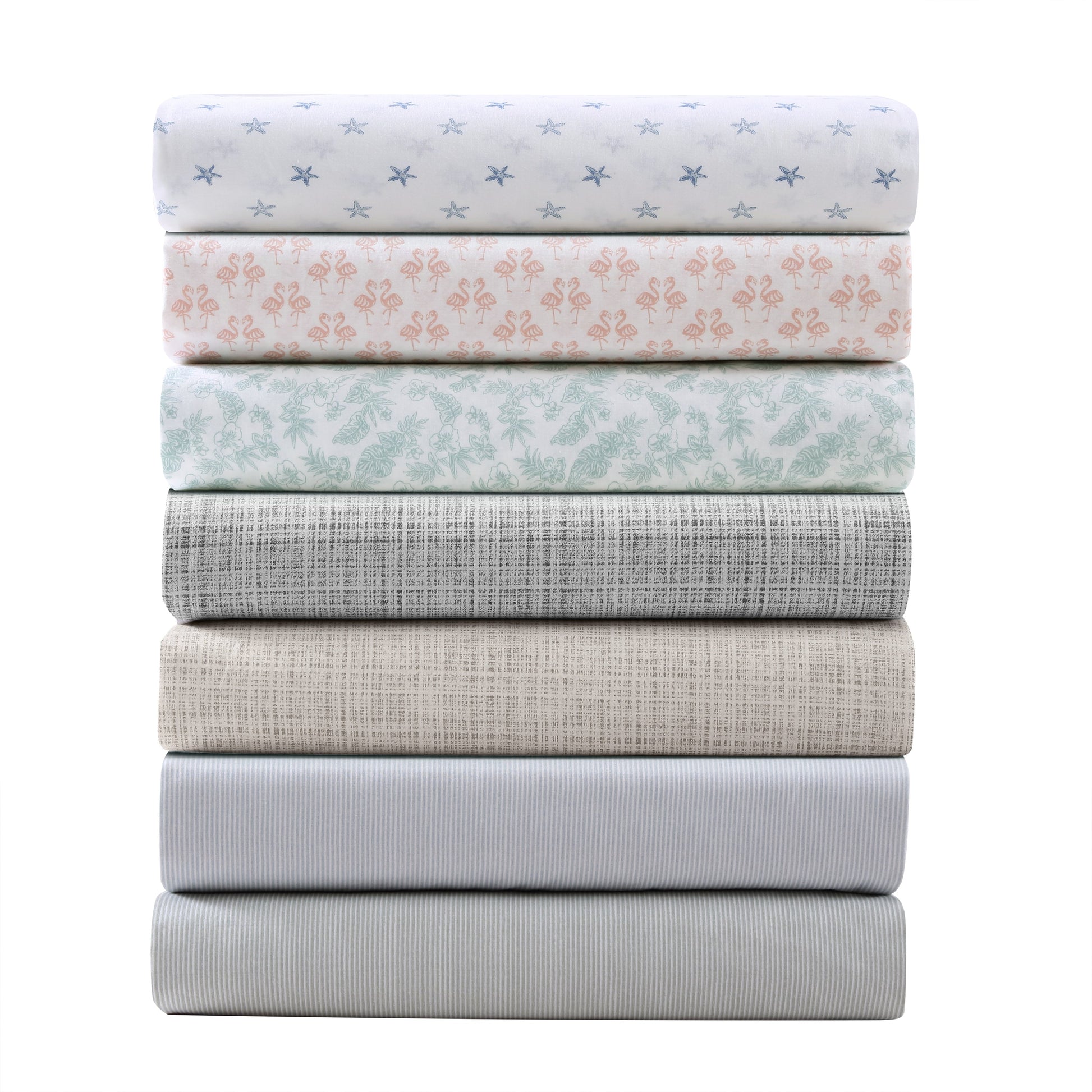 Add beautiful coastal inspired print to your bedroom with a new washed cotton sheet set from Tommy Bahama. Available in several designs and colorways, these sheet sets are great for easy layering with your favorite bedding. Providing quality cotton construction, these sheets are soft and breathable, perfect for a great night's sleep. Pair these amazing sheets with a new Tommy Bahama comforter set or assorted Tommy Bahama decorative pillows to create a unique coastal getaway right in your home. The included fitted sheet features a deep pocket and fits mattresses up to 18' deep. Set includes one flat sheet, one fitted and two pillowcases. Sheets and pillowcases are machine washable for easy and convenient care.