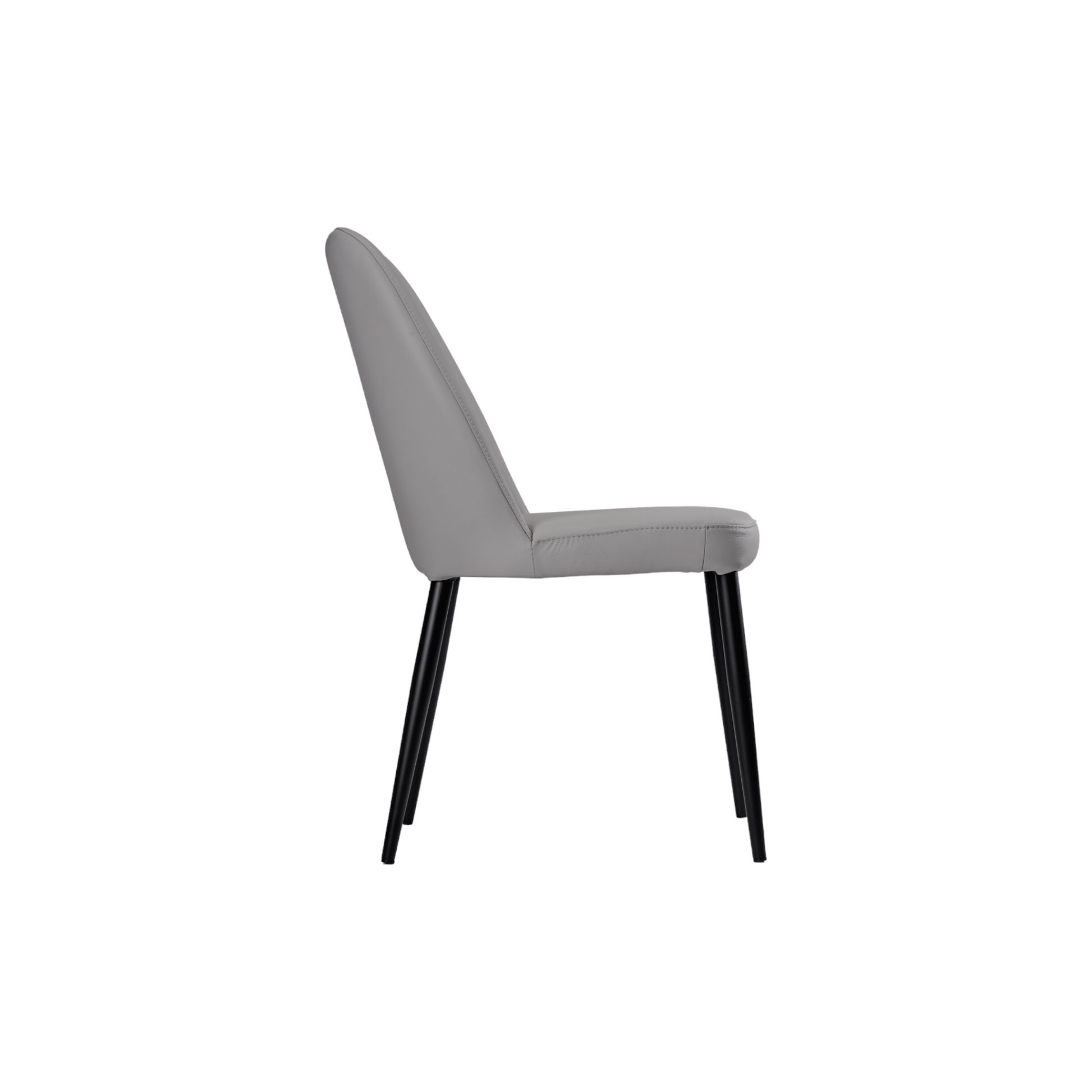 [description] La chaise de salle à manger Toulon en cuir gris foncé allie à la perfection le style moderne de l'assise en métal et rembourrée au design scandinave. Son assise confortable souligne la douceur de ses lignes et est entièrement revêtue d'un cuir souple, élégant et facile d'entretien. Son piètement à quatre pieds coniques est doté d'une finition en métal noir thermolaqué.