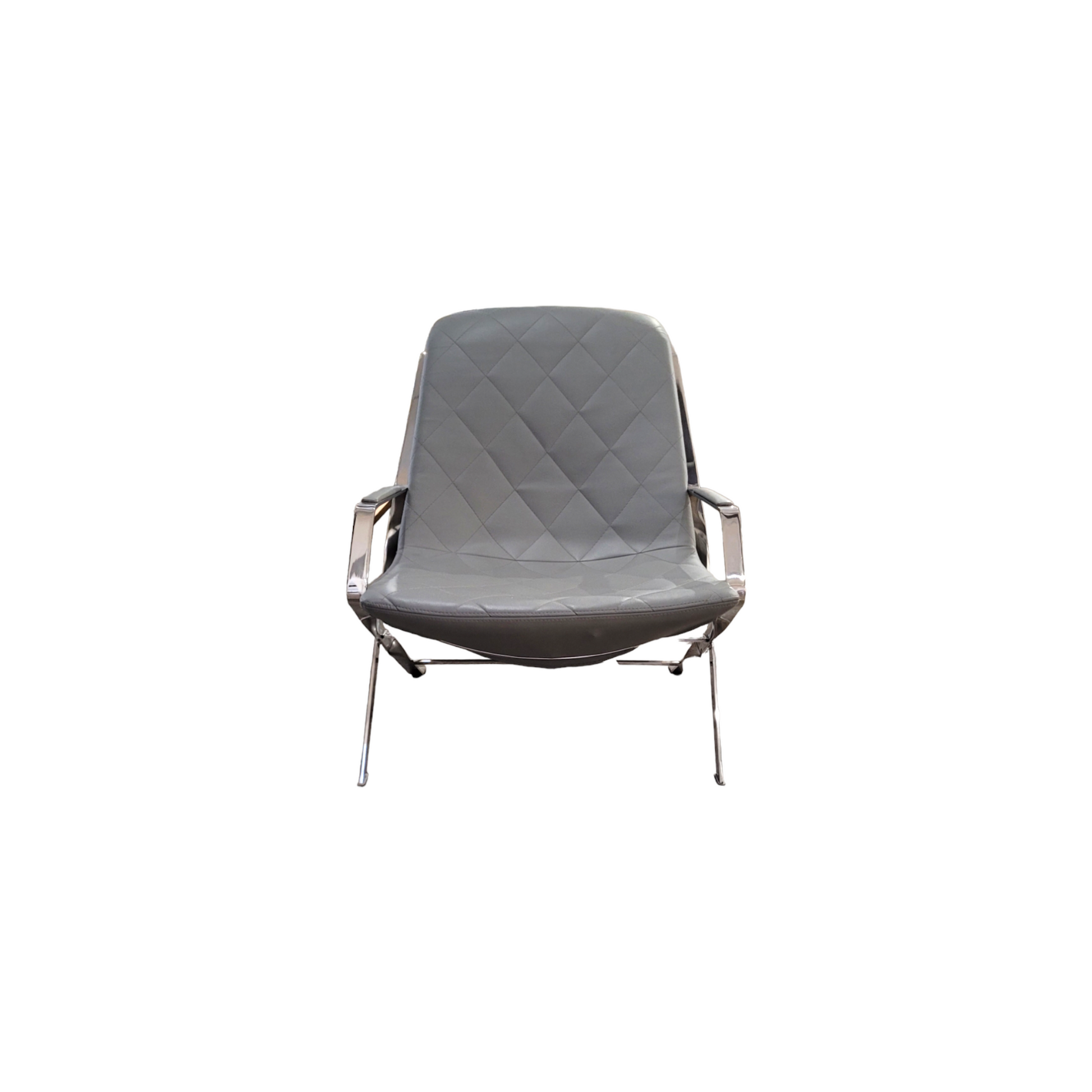 Le fauteuil Tous gris présente une assise ergonomique et une forme moderne unique. Sa coque entièrement revêtue de similicuir gris de première qualité repose sur une structure en acier inoxydable poli.