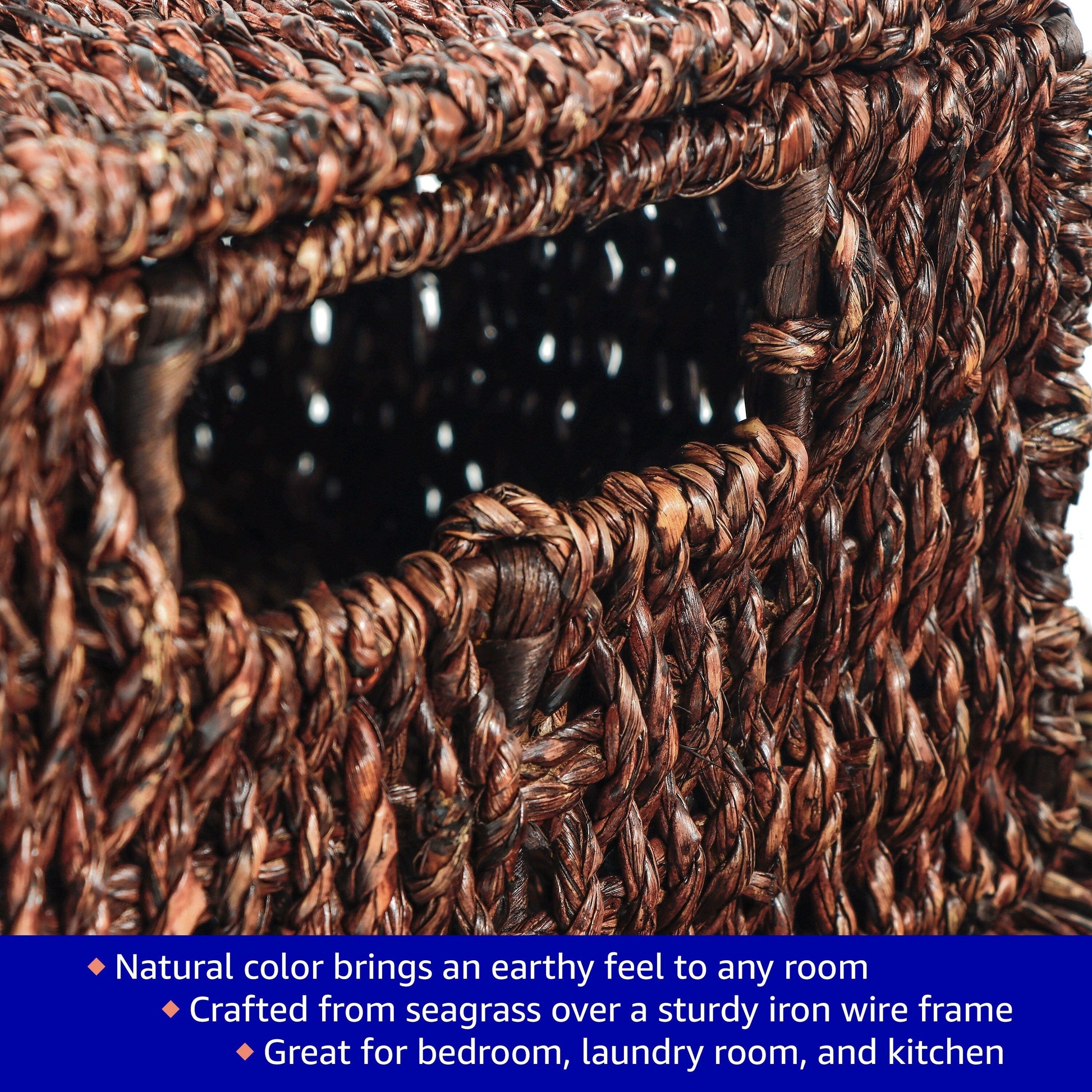Trademark Innovations Set of 3 Rectangular Seagrass Baskets with Lids (Small)