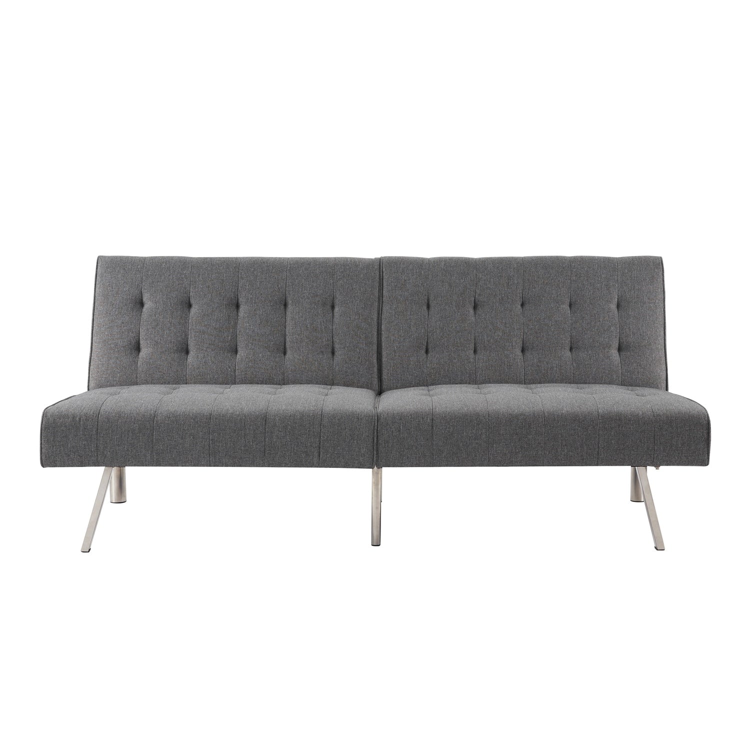 Are you looking to save space? With tufted split back futon you can turn any small living area into a great multi used one. Thanks to its click-clack multi-function features from siting to lounging. This Mid-Century modern look squared tufted design with linen fabric and sturdy chrome legs. With futon sofa bed, you can have a versatile and practical piece. This is a Twin size bed.