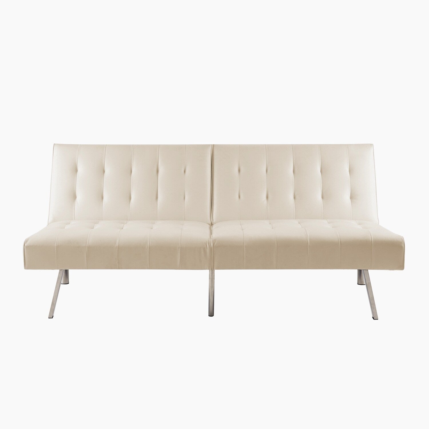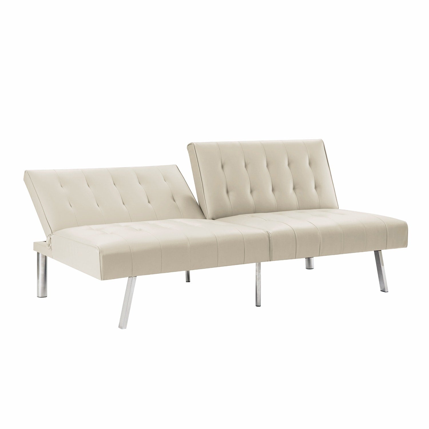 Tufted Mid-Century Modern Split Back Futon Sofa Couch Bed with Chrome Legs
