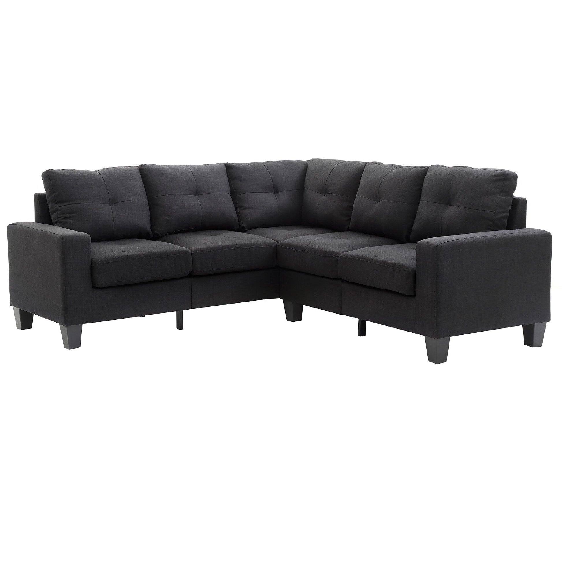 Tufted Twill L Shape Sectional Sofa - 82 - Black