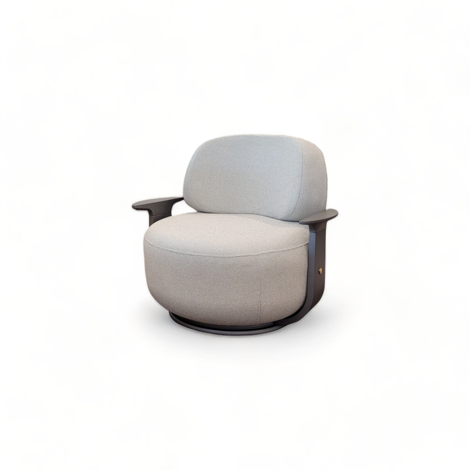 [description] Le fauteuil Uba gris se distingue par son design moderne et son savoir-faire exceptionnel. Sa forme incurvée, son revêtement en tissu gris profond et ses accoudoirs et dossier en bois laqué métallisé mat graphite lui confèrent une allure unique. Son piètement rond en bois lui confère une esthétique contemporaine et une esthétique raffinée, idéale pour le salon comme pour la chambre.